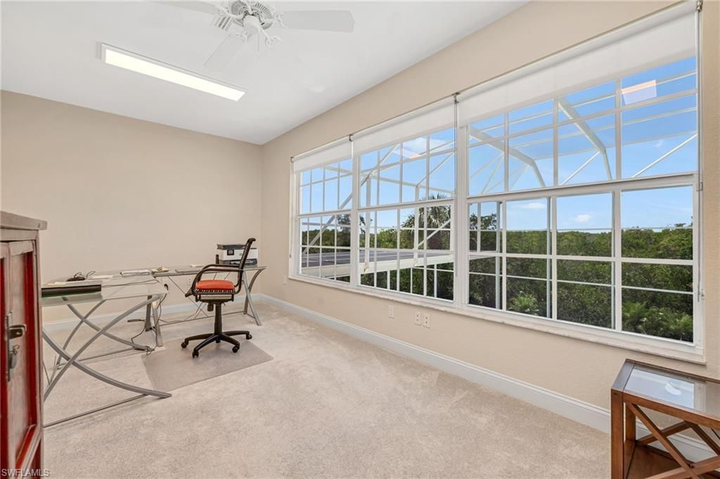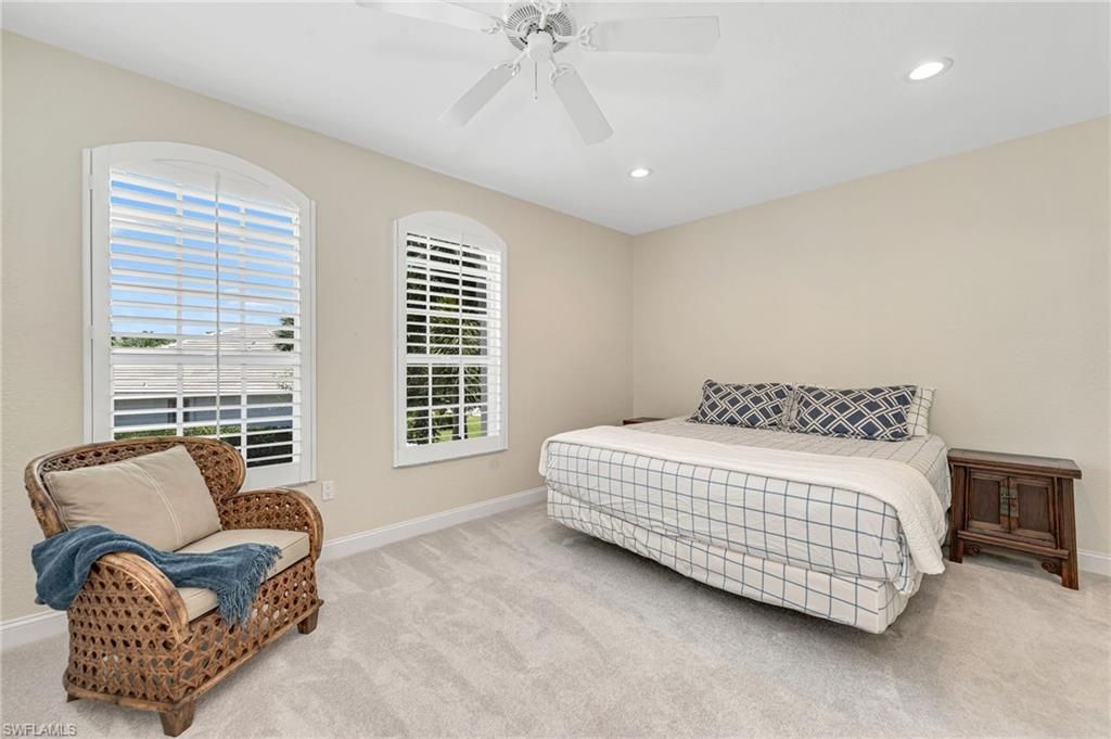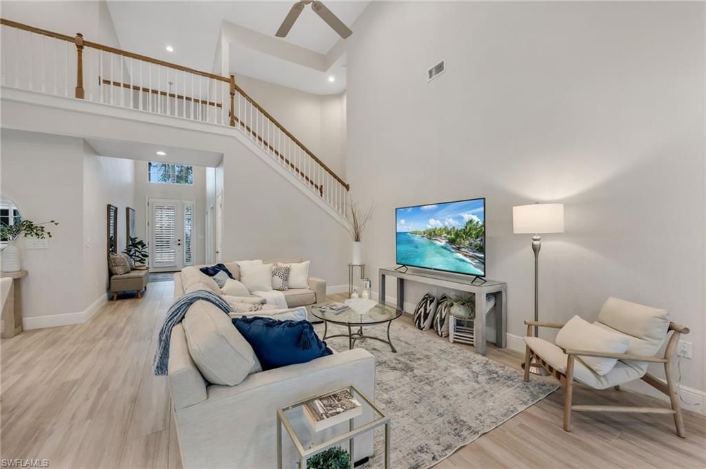 Luxury melds with nature in this rarely-available villa boasting all the modern comforts you desire in Bay Harbor at Bonita Bay. Essential updates include a newer roof, impact glass, kitchen/baths, pool heat pump and Saltwater generator. Soaring ceilings in the foyer, great room, and family room create a sense of grandeur and openness, while the wall of sliders in the rear invites natural light to filter through, bathing every corner in warmth and brightness. The expansive windows enhance the sense of space and provide breathtaking views of the lushpreserve beyond, bringing the outdoors in and creating a harmonious connection with nature. A standout feature of this home is its multiple living areas, thoughtfully designed to cater to various lifestyles. Enjoy the great room for gatherings, a cozy family room for relaxation, and a versatile study/den for work or hobbies. Upstairs, a sprawling bonus room offers endless possibilities, whether as a media/recreation area/flex space to suit your needs. The first-floor primary bedroom offers a custom walk-in closet and a lavishly updated ensuite bath. Indulge in the luxurious walk-in shower with multiple shower heads, offering a spa-like experience daily. Upstairs, two generously sized guest rooms rival the primary suite in size and comfort. Each guest room features its own bath, one guest room with en-suite bath, offering unparalleled comfort and privacy for family and guests alike. The expansive screened lanai with a saltwater pool and ample seating was designed to maximize the enjoyment of Bay Harbor’s natural surroundings. Retractable awning for extra cover enhances the outdoor experience. Residents also enjoy access to a sparkling community pool and the world-class amenities of Bonita Bay. Don’t miss the opportunity to own this villa in Bay Harbor, where elegant design and natural beauty create the perfect place to call home. Home is professionally staged. Staged furniture and accessories are not for sale. Upstairs is Virtually Staged.