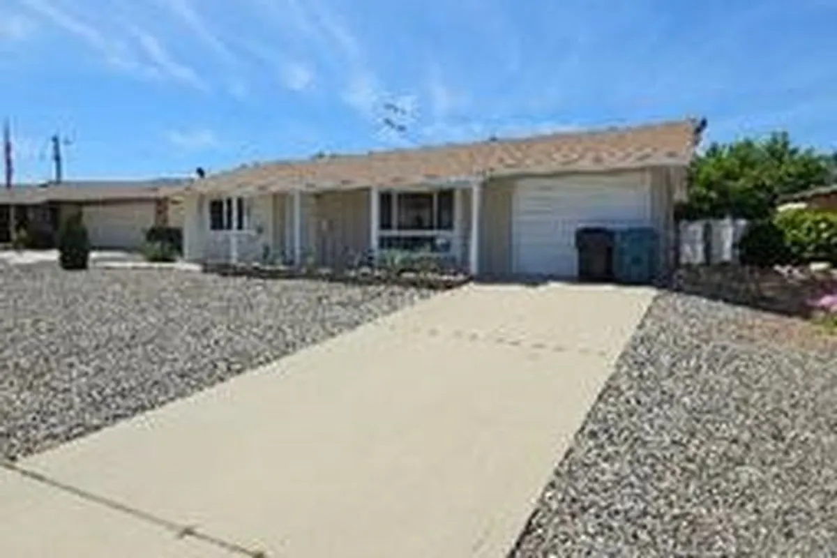 55+ Senior living. INVESTOR SPECIAL!! **Tenant in place** This beautifully maintained 2-bedroom, 1-bathroom home located in the desirable Senior Community of Sun City. The home features a delightful kitchen with upgraded appliances and ample cabinet space, ideal for all your culinary and storage needs. A spacious living room provides the perfect setting for entertaining guests or enjoying quiet evenings at home. Both bedrooms are generously sized and offer large closets, while the bathroom includes a convenient shower/tub combination. The low-maintenance front and back yards are fully landscaped with decorative rock, making upkeep easy and hassle-free. Enjoy outdoor living on the covered, cemented patio in the backyard, which also includes a small storage shed for additional space. With attached garage. separate laundry room equipped with washer and dryer hookups for added convenience. Located close to the 215 freeway and several shopping centers, this home offers the perfect blend of comfort, accessibility, and community.