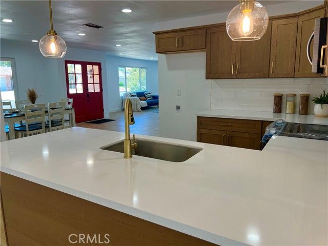 Welcome to your practically brand-new, fully remodeled home featuring one of the largest and rarest floor plans in the area, offering over 2,000 sq ft of open living space. Step inside to a bright and expansive layout with multiple living areas that flow seamlessly together, creating both comfort and convenience. The home has been completely updated with new interior and exterior paint, upgraded lighting throughout, new ceiling fans, and dual-pane windows and sliding doors. Enjoy beautifully remodeled bathrooms featuring new vanities, modern showers, sleek shower doors, and oversized mirrors. The all new kitchen is a true centerpiece, showcasing quartz countertops, oak cabinetry, and top of the line stainless steel appliances, including a flat-top stove, over the range microwave, and dishwasher. The kitchen opens directly into a spacious living and entertainment area, complete with a cozy fireplace. The oversized primary suite offers a private retreat with custom built-ins in the closets and ample storage. Step outside to a large backyard that feels like your own private oasis perfect for relaxing or entertaining. Additional upgrades include a new roof, upgraded garage door, and a recently replaced HVAC system, providing peace of mind for years to come. Located in the desirable Sun City Civic 55+ Community in Menifee, residents enjoy fantastic amenities including two pools, pickleball courts, lawn bowling, and more all with a low HOA of just $450 per year and low taxes. Opportunities to own this floor plan are rare experience refined living with the space and upgrades you’ve been looking for.