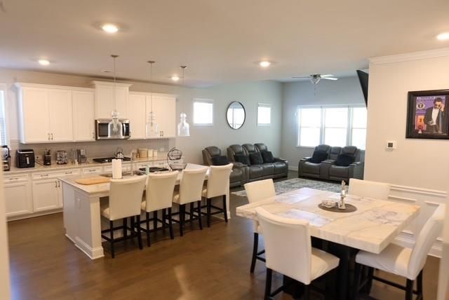 Welcome to 2716 Knob Creek Dr.! This home is 3 years new and boasts a beautiful eat-in kitchen with a view to the family room. The primary bedroom is on the main level, with two spacious secondary bedrooms also on the main. Upstairs you'll enjoy an extra spacious loft for lounging or entertaining, with another bedroom and full bath. Step outside to the covered patio and grill away or just relax. This community has a pickle ball court for the active senior and a scenic lake for those that want to try their luck at fishing or just take in the nature scape. There is also a horseshoe pit and a dog park. Lastly, but certianly not least, this home is minutes away from a variety of grocery stores, eateries and restaurants. The Shoppes at Webb Gin, Northside and Piedmont hospitals and many more ameneties are less than a 1-mile drive. Don't let this one get away!