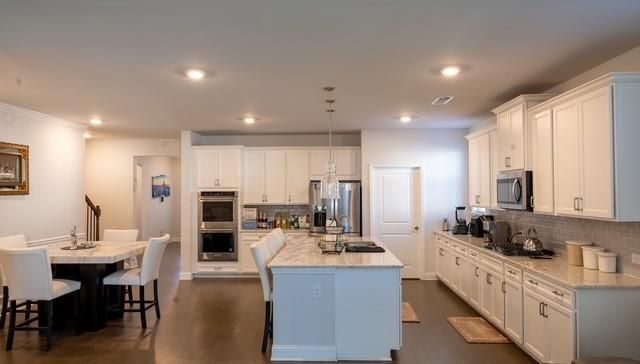 - Dishwasher, Disposal, Double Oven, Gas Cooktop, Microwave
