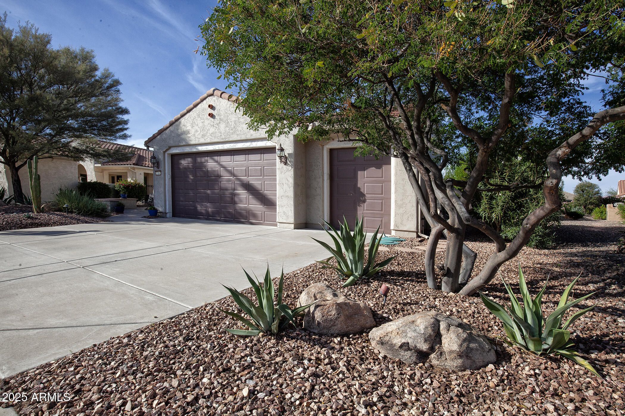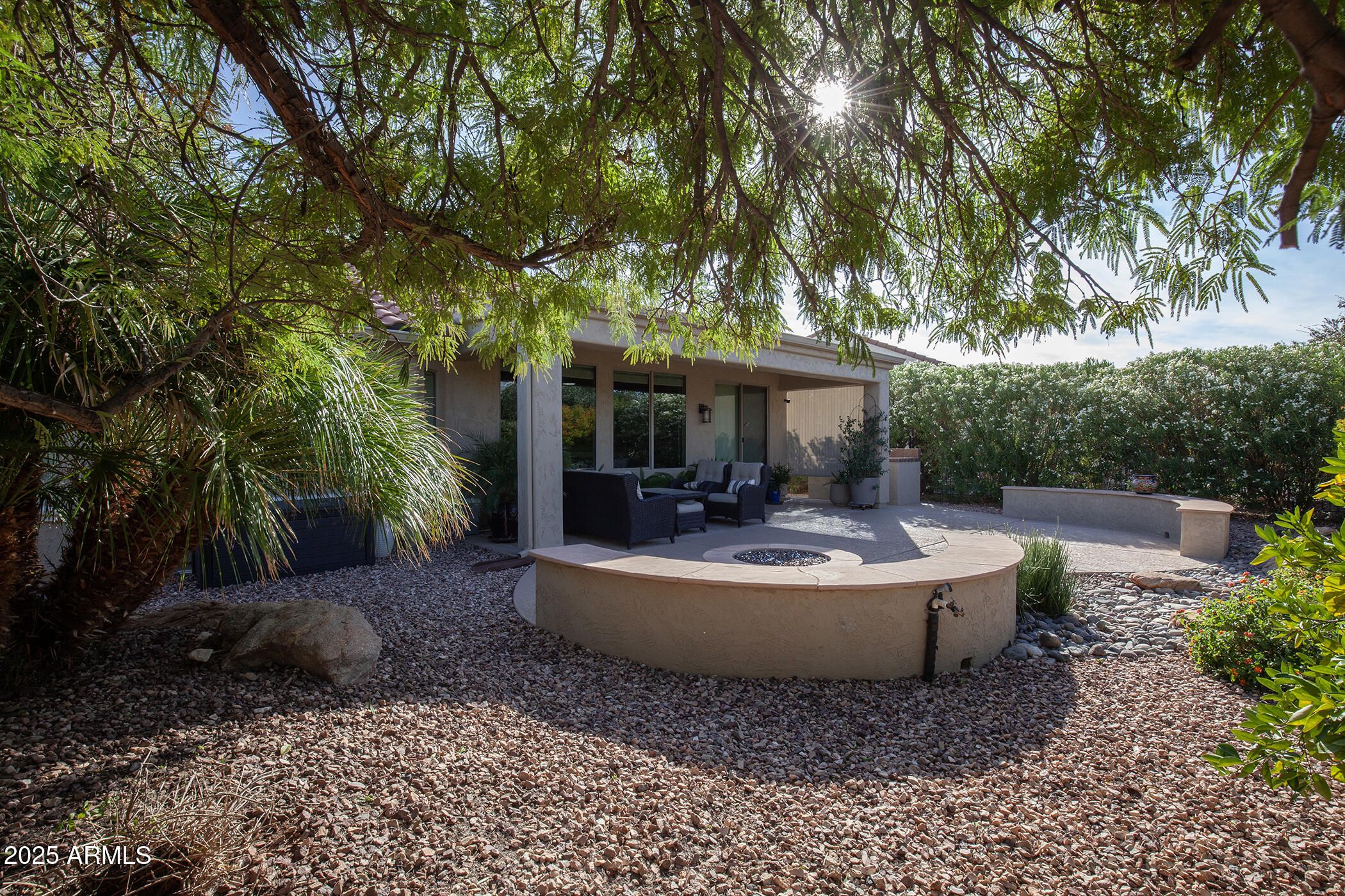 Looking for a SERENE Backyard? Welcome to an UPDATED Gala Model. Discover the RARE, 9,633 Sq/Ft Lot offering a PRIVATE Backyard Oasis w/Extended Patio & Water Feature. This 1,612 Sq/Ft home w/2 Bed/2 Bath + Den/Office is situated on a Premium, Oversized N/S facing lot. The Updated Kitchen is a Chef's delight & Split Bedrooms offer the perfect scenario for overnight guests. Entertain with a WELCOMING front courtyard, open living space, & BACKYARD Sanctuary with built-in BBQ & Fire Pit. Retire to your Owner's Quarters w/Bay Window, Remodeled En Suite & Large Walk-in Closet. This home is tastefully FURNISHED & MOVE-IN ready. The popular Gala Model offers a golf cart space as well as built-in & overhead storage, utility sink, & water softener in the 2.5 car garage. This MUST SEE, ''ONE OF A KIND" home is conveniently located near the Sage Rec Center, Golf Course, & Indigo Grill. Experience Arizona living at its finest in a WORLD CLASS 55+ Community.