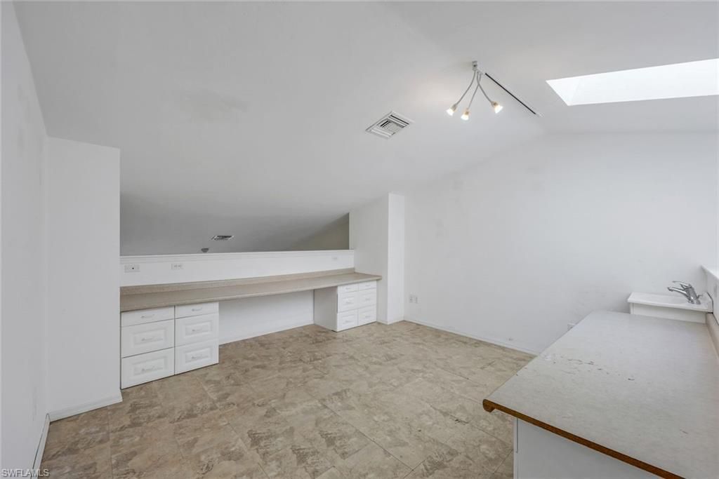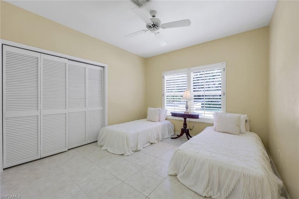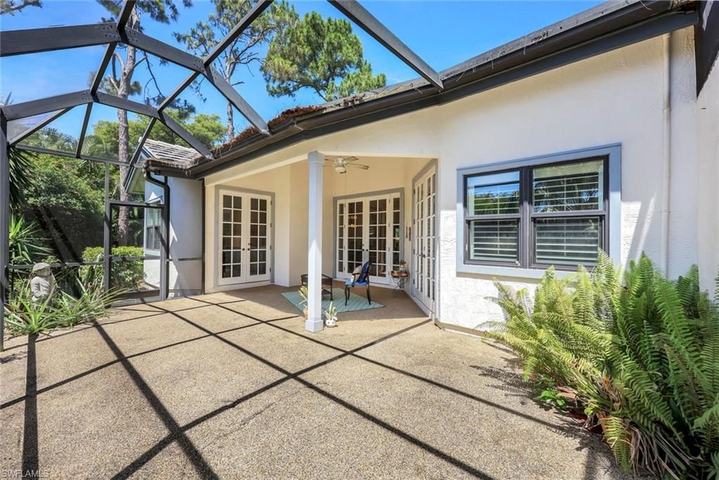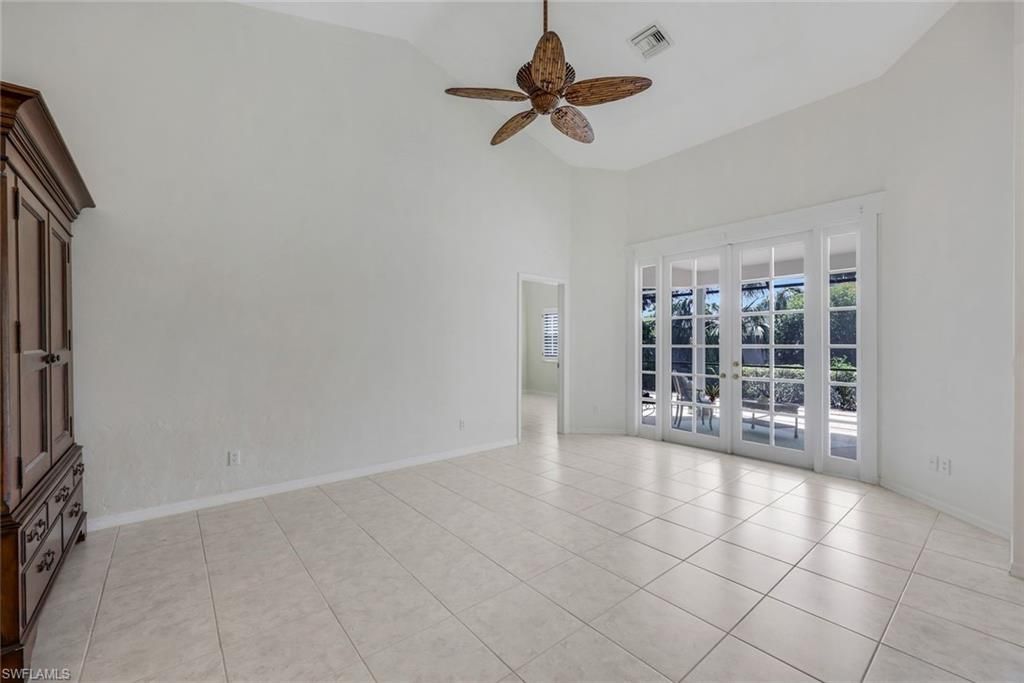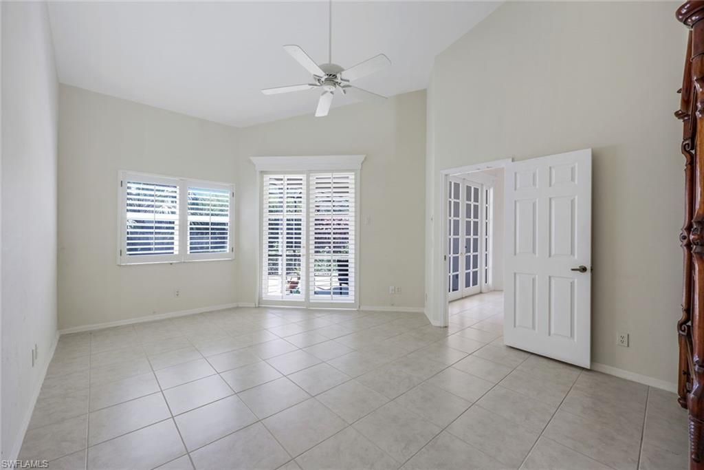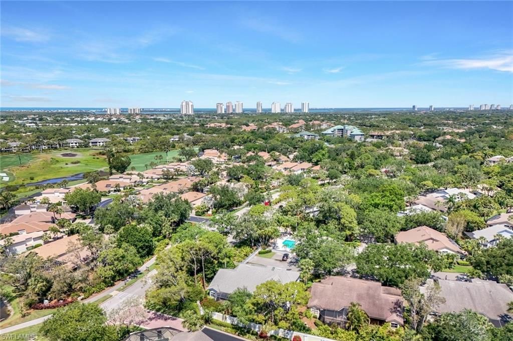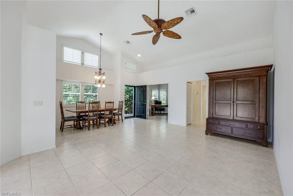 Burning Tree in Bonita Bay is an intimate neighborhood that captures the charm of old Florida. Quaintly nestled among mature oak trees, this home features two bedrooms, a den, a loft/bonus/art studio with skylight, and two bathrooms. The kitchen features wood cabinets, tile countertops, and all appliances, along with a sunlit breakfast nook. The volume ceilings contribute to the spacious feel of the casual dining room and great room, which opens onto an oversized lanai. The spacious main bedroom features access to the lanai through sliding glass doors and includes a main bathroom, as well as two walk-in closets. Adjacent to the great room is the den, while the guest bedroom is located down the hall with a full bathroom, providing privacy for your guests. The home has impact glass windows and plantation shutters.Additionally, there is a two-car garage for storing your toys and tools. The Burning Tree neighborhood provides a heated swimming pool with a pavilion. You can easily walk to nearby restaurants and attractions like the Promenade, Publix, and Bonita's famous Farmers Market. Bonita Bay boasts miles of hiking and biking trails, three waterfront parks offering canoe and kayak access, a private marina with an on-site restaurant, a private beach club, and numerous other activities. Optional membership to the Bonita Bay Club offers access to three championship golf courses, dining, a fitness center, a tennis and pickleball complex, a resort-style pool, and much more.