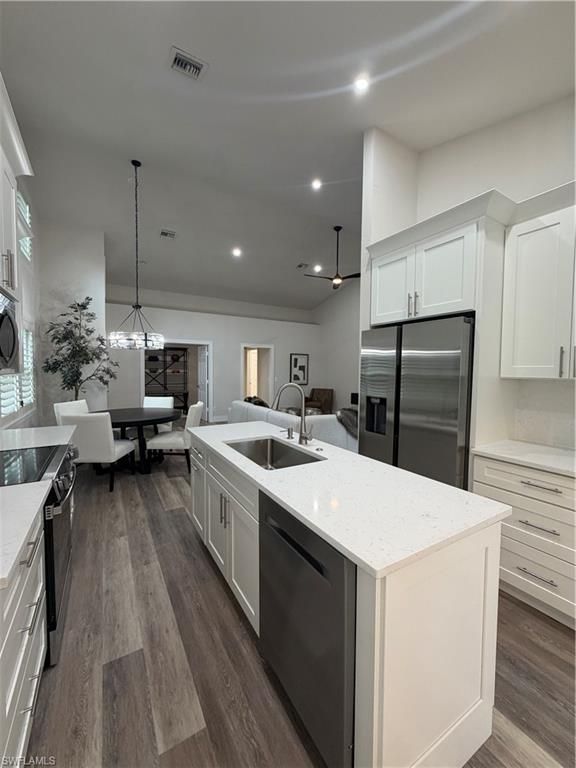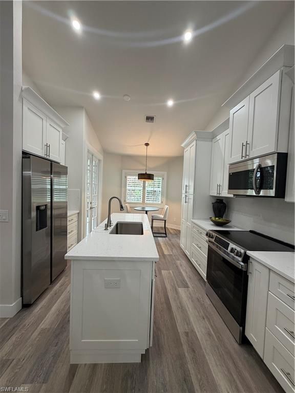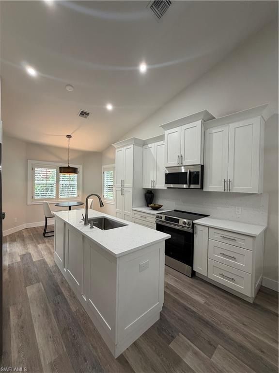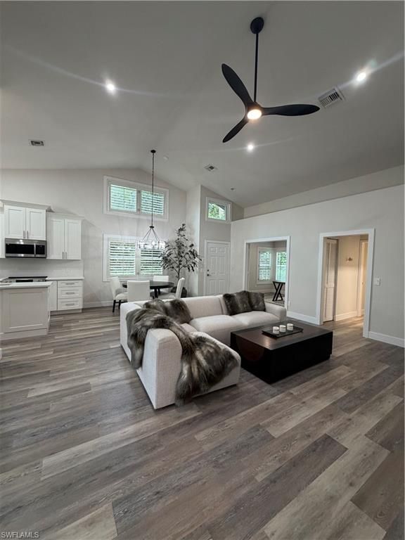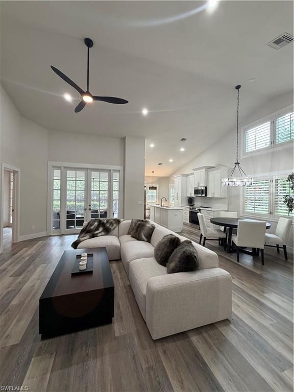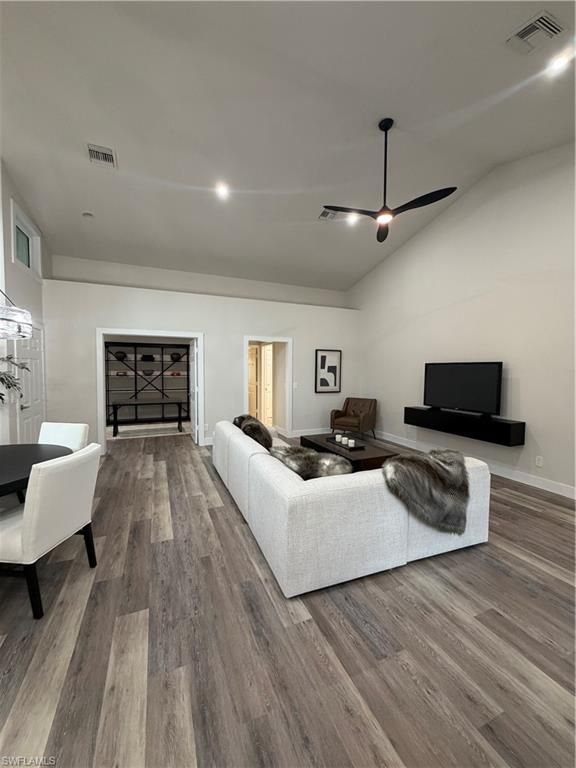 Completely renovated and move-in ready! This beautifully updated 3 bedroom + den, 2 bath attached villa offers a modern, open feel with stylish upgrades throughout. The home features new luxury plank vinyl flooring throughout the main living areas and bedrooms, complemented by large flat-stock baseboards and custom window trim for a clean, contemporary finish. The fully remodeled kitchen showcases new shaker cabinets with soft-close doors and drawers, quartz countertops, and new stainless steel appliances, creating the perfect space for cooking and entertaining. Both bathrooms have been updated with quartz counters and modern finishes, while vaulted ceilings enhance the spacious feel of the home. Additional improvements include new paint throughout, updated LED recessed lighting, new light fixtures and ceiling fans, and a 2024 air conditioning system for added peace of mind. The home is also equipped with impact windows for storm protection and energy efficiency. Step outside to enjoy the large screened rear lanai, featuring new pavers and updated cage screening, providing a perfect outdoor living space to relax or entertain while enjoying the Florida lifestyle. This beautifully upgraded villa combines style, comfort, and quality upgrades throughout — truly a must-see property! Bonita Bay amenities are incredible and offer something for everyone! Residents of Bonita Bay enjoy one of Southwest Florida’s most prestigious lifestyle communities, offering an exceptional blend of nature and resort-style amenities. The community features over 12 miles of scenic walking and biking trails, multiple waterfront parks, kayak and canoe launches, and a private beach park on the Gulf of America with convenient shuttle service. Optional membership to Bonita Bay Club provides access to five championship golf courses, an expansive fitness and wellness center, resort-style pools, multiple dining venues, and a premier racquet complex with tennis, pickleball, and bocce courts. Residents also enjoy a full-service marina on the Imperial River, offering boat slips and Gulf access, along with a vibrant calendar of social and recreational activities year-round.