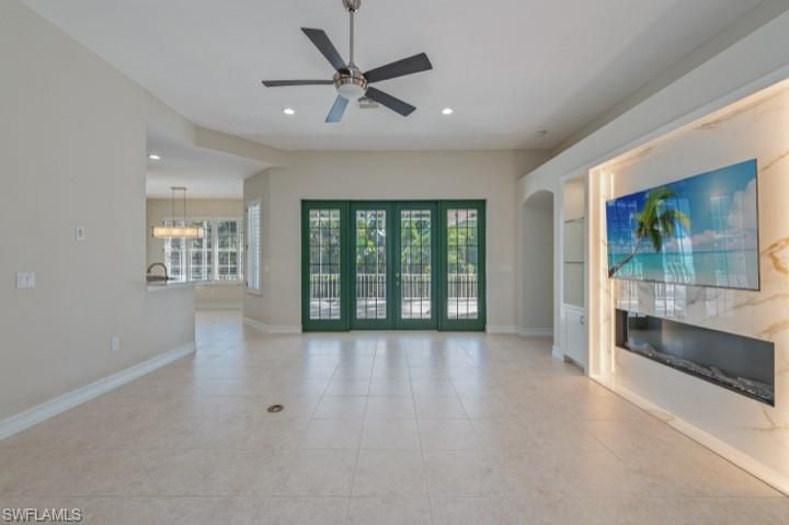 Set on a desirable corner lot with serene water and lush landscape views, this beautiful 3-bed, 2.5-bath home offers the perfect blend of comfort and effortless Florida living. Step inside and be greeted by bright natural light, volume ceilings, and a stunning stone accent wall with a built-in electric fireplace. The remodeled kitchen boasts quartz countertops, stainless-steel appliances, a pantry, and both a breakfast nook and breakfast bar, ideal for casual mornings or hosting friends and family. French doors lead to the screened lanai with a covered seating area, where southeastern exposure provides warm sunlight and lakefront views throughout the day. The primary suite offers a walk-in closet with custom cabinetry, dual vanities, and a sleek walk-in shower. With easy-maintenance tile flooring in the main living areas and the home being unfurnished and move-in ready, you have a fresh canvas to create your ideal Florida retreat. Upgrades include a new roof (2025) and A/C (2024). As a resident of Bonita Bay, you’ll enjoy private access to a pristine beach park, the waterfront Backwater Jack’s Restaurant, and multiple community parks. Riverwalk Park offers kayaking, canoeing, pickleball, tennis, and a boat launch. Golf enthusiasts will appreciate the opportunity to join the Bonita Bay Club, featuring five championship golf courses, a sports and racquet center, resort-style pool, state-of-the-art fitness center, and a luxury spa and salon. Don’t miss the opportunity to enjoy lakefront tranquility within one of Bonita Bay’s most charming neighborhoods!