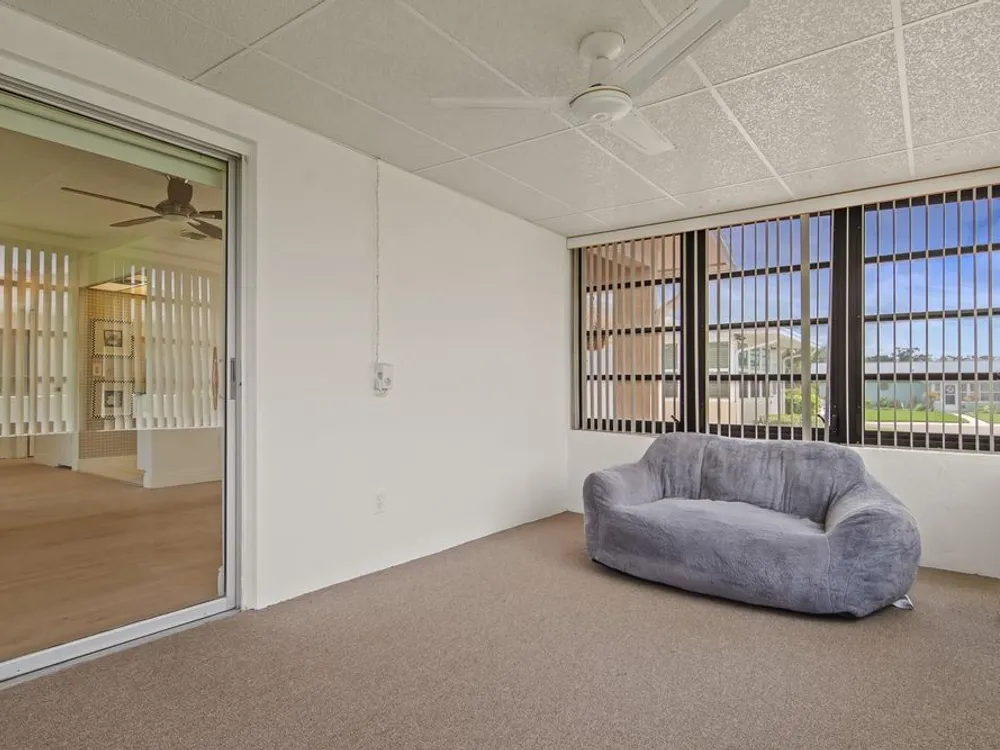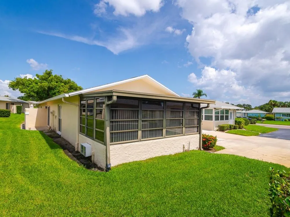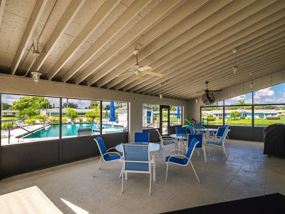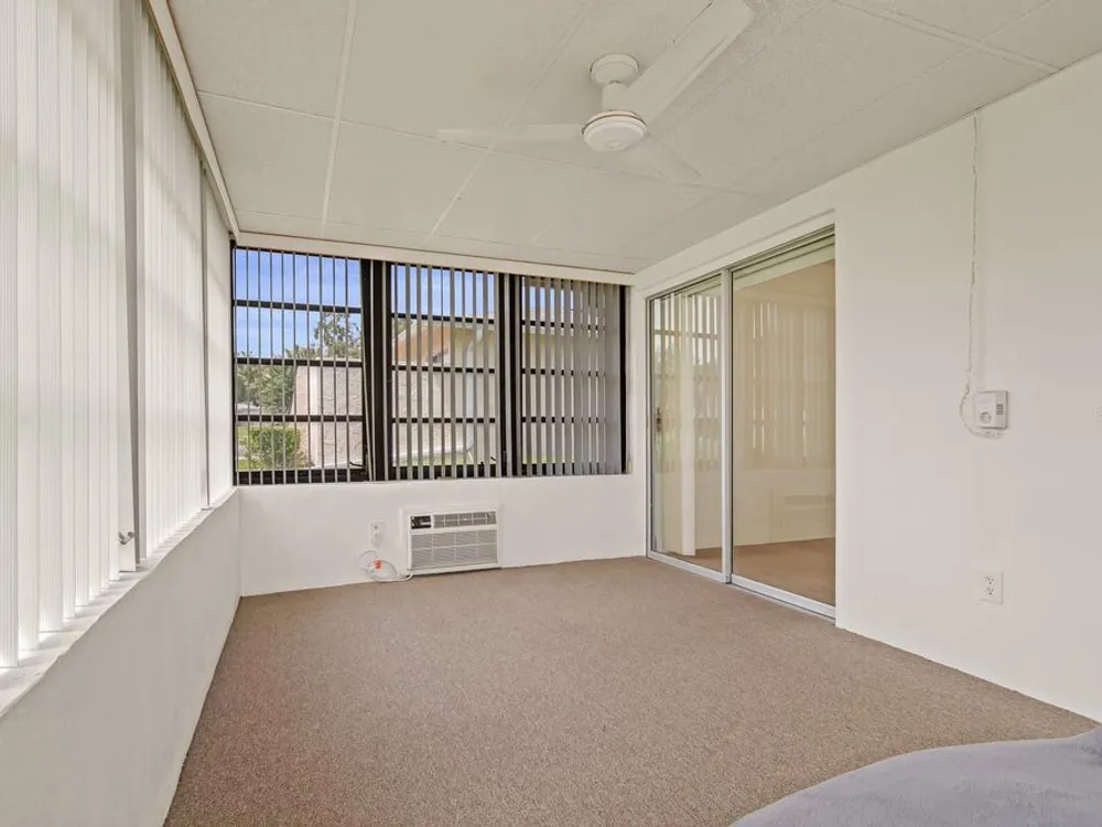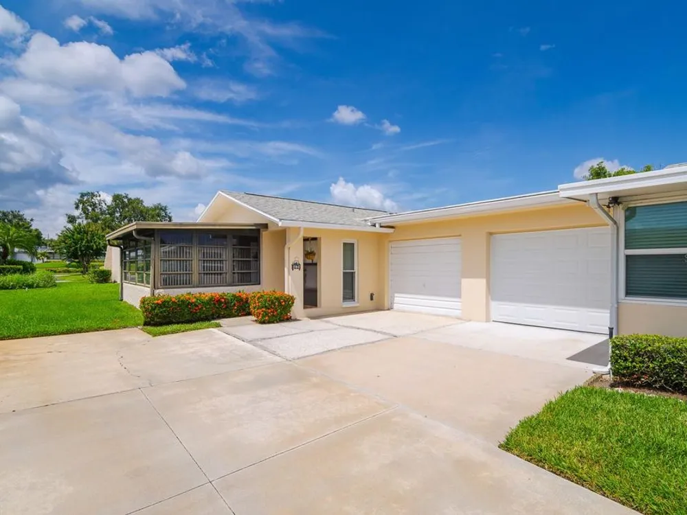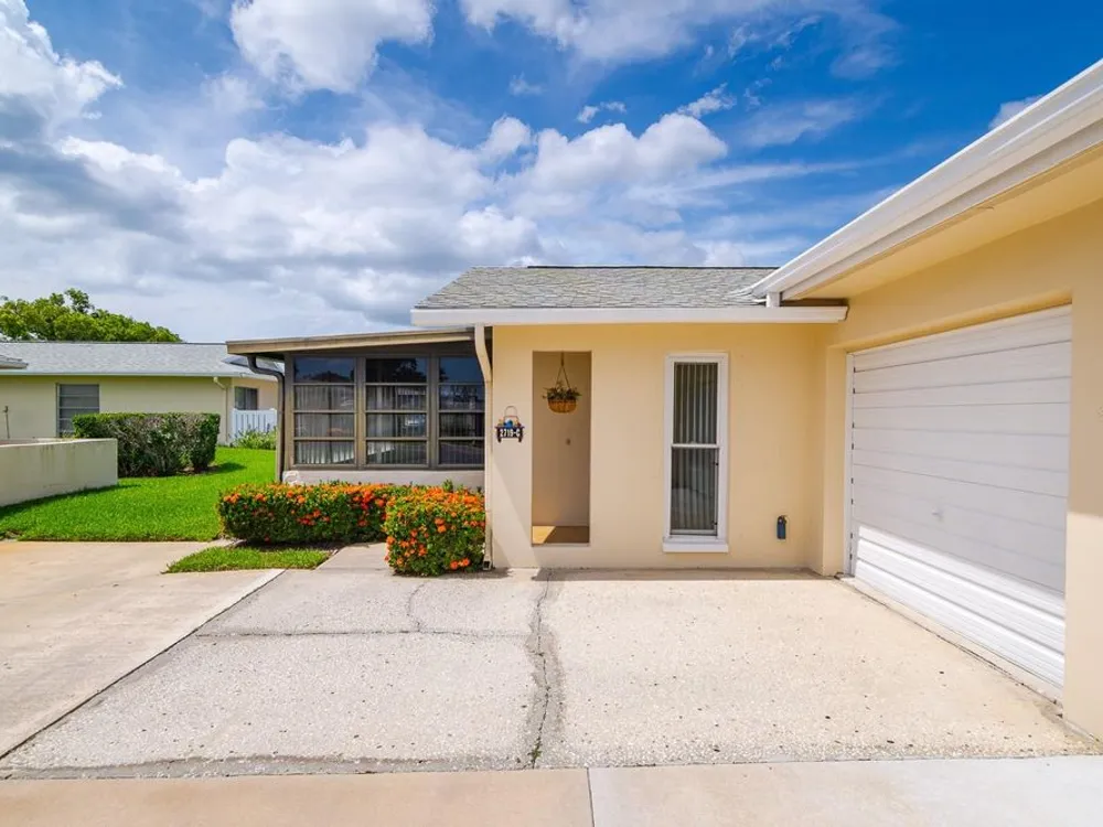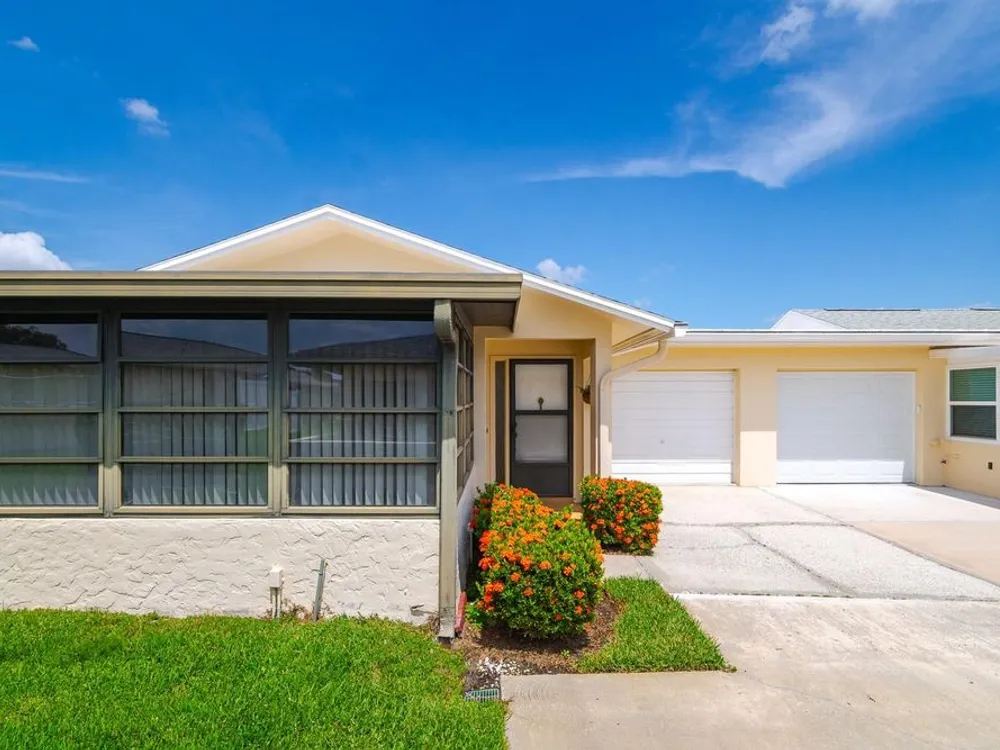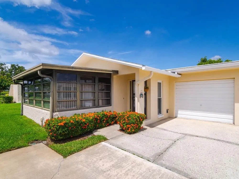 Welcome to this charming and beautifully maintained 1-bedroom, 1-bath villa with a 1-car garage, ideally situated in the highly sought-after 55+ Highland Lakes community. Whether you're looking for a full-time residence or a seasonal retreat, this home offers a perfect blend of comfort, convenience, and vibrant community living. As you step inside, you'll be greeted by a bright and airy atmosphere, highlighted by large floor-to-ceiling windows and fresh neutral paint throughout. The spacious main living area features brand-new vinyl plank flooring and an open-concept layout that connects seamlessly to the dining space. A large utility and coat closet provides added storage. Relax with your morning coffee or unwind in the evening in the enclosed sunroom, measuring 15 by 9.5 feet, featuring brand-new indoor/outdoor carpeting, a dedicated A/C unit, and sliding glass doors that let in Florida’s fresh breeze. The kitchen includes updated cabinet doors, a built-in microwave, a dishwasher, and a convenient pantry closet. The generously sized bedroom offers two walk-in closets, brand-new flooring, a vanity counter with a sink, and private access to a secluded patio through sliding glass doors. The bathroom provides dual access from both the bedroom and hallway and includes a tub/shower combination. In the attached 1-car garage, you'll find the washer, dryer, utility sink, and additional shelving for storage. This home also boasts a new A/C system installed in 2024 and updated windows and a sliding glass door (2012) with fabric hurricane protection. The villa is condo-owned—no land lease required. The all-inclusive HOA covers water, sewer, garbage, cable (with two boxes and internet), exterior maintenance such as roof, painting, and concrete/asphalt repair, as well as landscaping, irrigation, pest service, and building insurance. As part of the Highland Lakes master association, you’ll have access to exceptional amenities including three executive golf courses, a resort-style pool, two clubhouses, tennis, pickleball, bocce, shuffleboard, a woodshop, pottery and arts & crafts studios, an auditorium with shows and concerts, and private lake access with two pontoon boats on Tarpon Lake. All of this is conveniently located just minutes from top-rated beaches, shopping, dining, medical facilities, and beautiful parks. Don’t miss your chance to make this delightful villa in Highland Lakes your own—schedule your private showing today.
