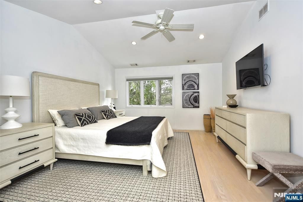Welcome to luxury living at its finest in the highly sought-after Apple Ridge community of Mahwah. This beautifully updated home offers an exceptional blend of elegance, comfort, and lifestyle amenities. The warm and spacious updated kitchen features modern appliances, granite countertops, and ample cabinetry, making it ideal for both everyday living and entertaining. A formal dining room flows seamlessly into the bright living area, highlighted by a striking quartz brick wall fireplace that creates a sophisticated focal point and a bonus wet bar. Bleached and stained hardwood floors throughout add to the home’s refined aesthetic. The second level features an expansive primary suite offering a private retreat with generous closet space and a large primary bath. Two additional bedrooms, an updated full bathroom, and a convenient laundry area complete this floor. The third-floor loft with the same hardwood floors provides flexible space for a home office, den, or studio. A fully finished walk-out basement offers endless possibilities for a recreation room, gym, or media space. Outdoor living is enhanced by a charming gated front courtyard garden and a rear deck overlooking tranquil natural surroundings. Additional features include a one-car garage and extra driveway parking. Residents enjoy the Apple Ridge lifestyle with amenities including tennis, pickleball, swimming pool, clubhouse, and fitness room. Move-in ready and ideally located—this is not just a home, it’s a lif