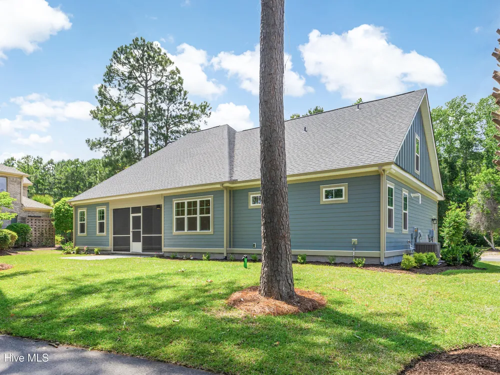 This brand new Riptide home with stunning setting and finishes is move-in ready! This home site offers serene pond and golf views, with a mature canopy of trees at the perimeter of the backyard. Both the exterior and interior boast an attractive, modern, coastal craftsman style. Trim detail in the main area of the home includes wainscoting in the foyer and dining area, a vaulted ceiling in the living room with faux beams, 36'' ventless gas fireplace surround with shiplap. The telescoping sliding glass doors to the porch add to the open and airy feel of this home. High-end laminate flooring adorns the living, dining and kitchen areas, with tile in laundry and bathrooms and carpet in bedrooms. The gourmet kitchen includes soft-close cabinetry, a large island, quartz counters, stainless steel apron sink, and under-cabinet lighting. You will love the LG appliance suite, consisting of a wall/microwave oven combo, 5 burner gas cooktop, dishwasher, and vented hood. The primary suite is your retreat at the end of the day, with its luxurious spa-like feel. Features include a tray ceiling with rope lighting, walk-in closet with melamine shelving, dual sink vanity with additional make-up vanity, zero-entry tiled shower with LED lit wall niche, and a freestanding soaking tub. Imagine yourself enjoying mornings and evenings on your graciously sized, tiled, screened porch with enlarged patio, watching the wildlife and the golfers pass by. Visiting guests? No problem! They can have the bonus room with its own bathroom as their private quarters, which contains a closet and additional walk-in storage. Exterior features of this home include James Hardie siding with stone accents, lush landscaping, and zoned irrigation with drip lines. Other desirable features of this home include a zoned HVAC system, tankless propane water heater, termite bond, and comprehensive warranty plan.What are you waiting for? Schedule your showing today! Sea Trail is an amenity-rich, active community