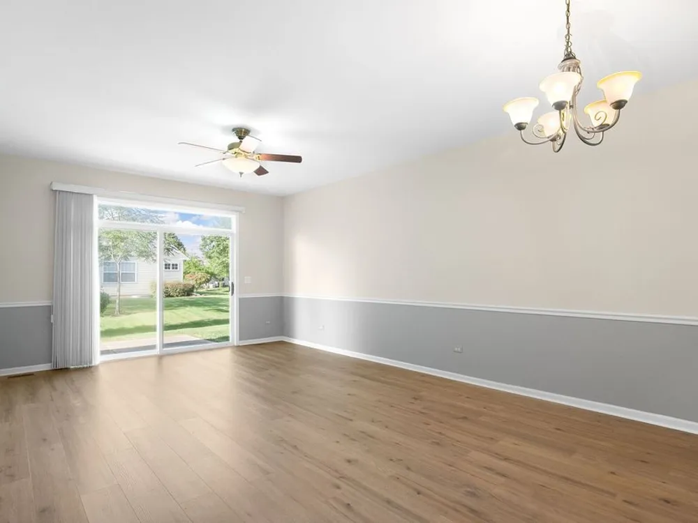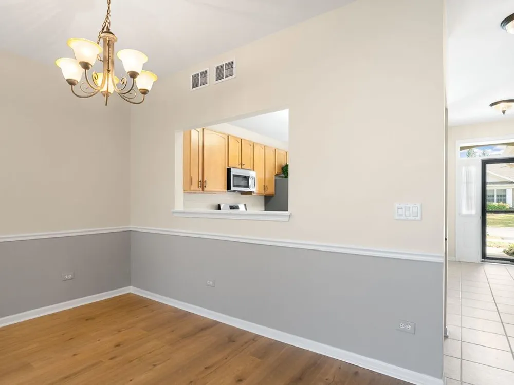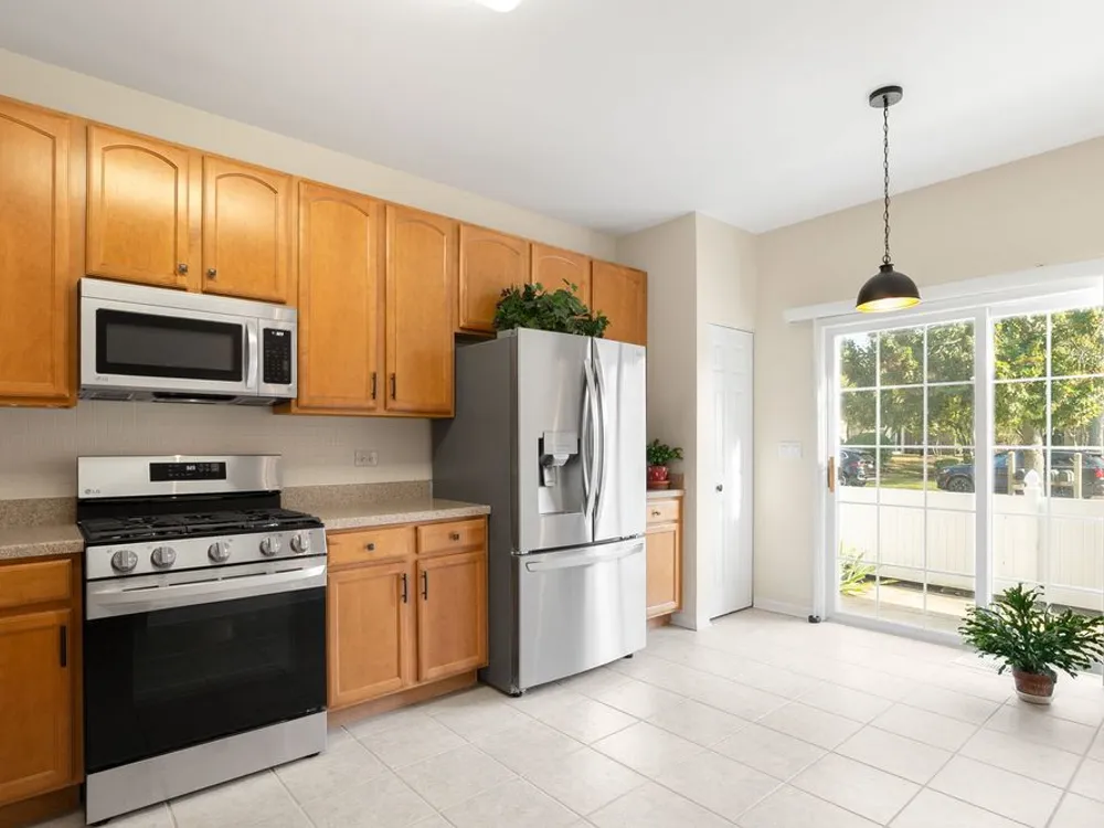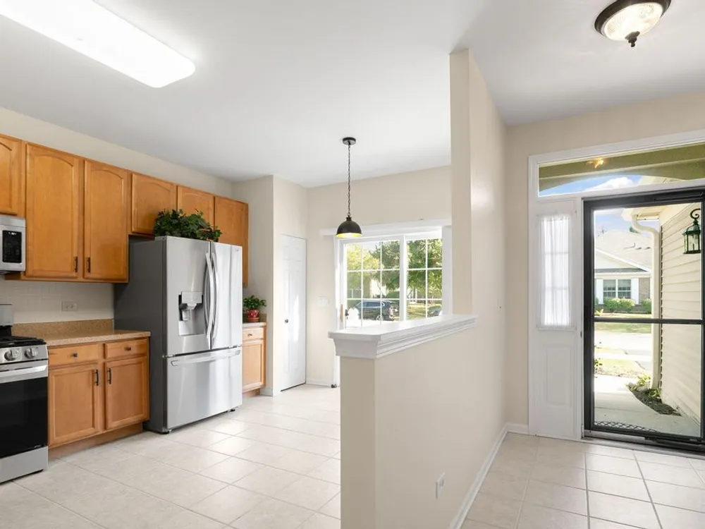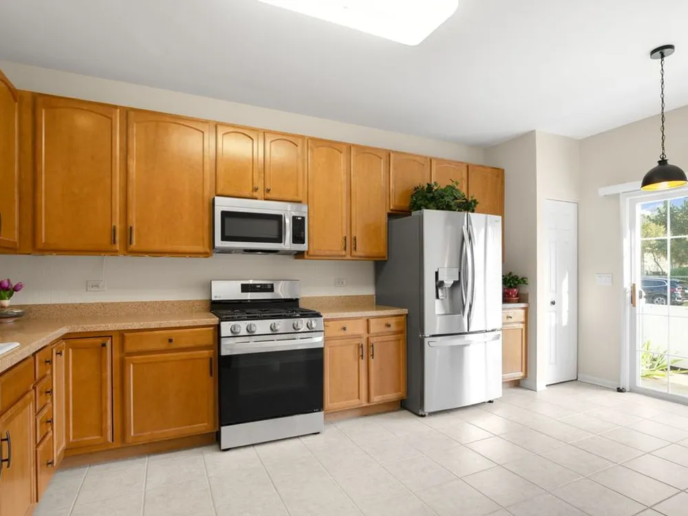 Impeccably maintained 2 Bed 2 Bath ranch in the highly desirable Adult 55+ Community of Carillon North. Spacious sun-drenched kitchen features 42" maple cabinets, pass through window to living space, plenty of countertops and large table space with slider leading to front patio. All NEW stainless steel kitchen appliances in 2024. Gorgeous new wood laminate floors flow throughout living room/dining room and guest bedroom. Enjoy the crisp fall weather in the rear patio with serene nature views. Large primary suite with 2 large closets and accessible walk in tub. Convenient in unit laundry w/ newer washer and dryer. Furnace and A/C less than 3 years old. Enjoy everything that Carillon North community offers including clubhouse, which features two large meeting/gathering rooms, a library room, an exercise/workout room, an indoor pool and indoor hot tub. Plenty of planned community events to enjoy year round in addition to pickle ball/tennis courts, walking trails and the Grayslake golf course. All with the convenience of the HOA maintaining the exterior upkeep including snow removal and lawn care.