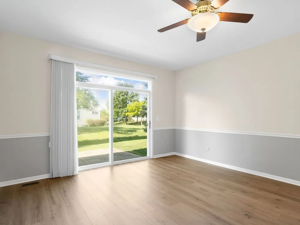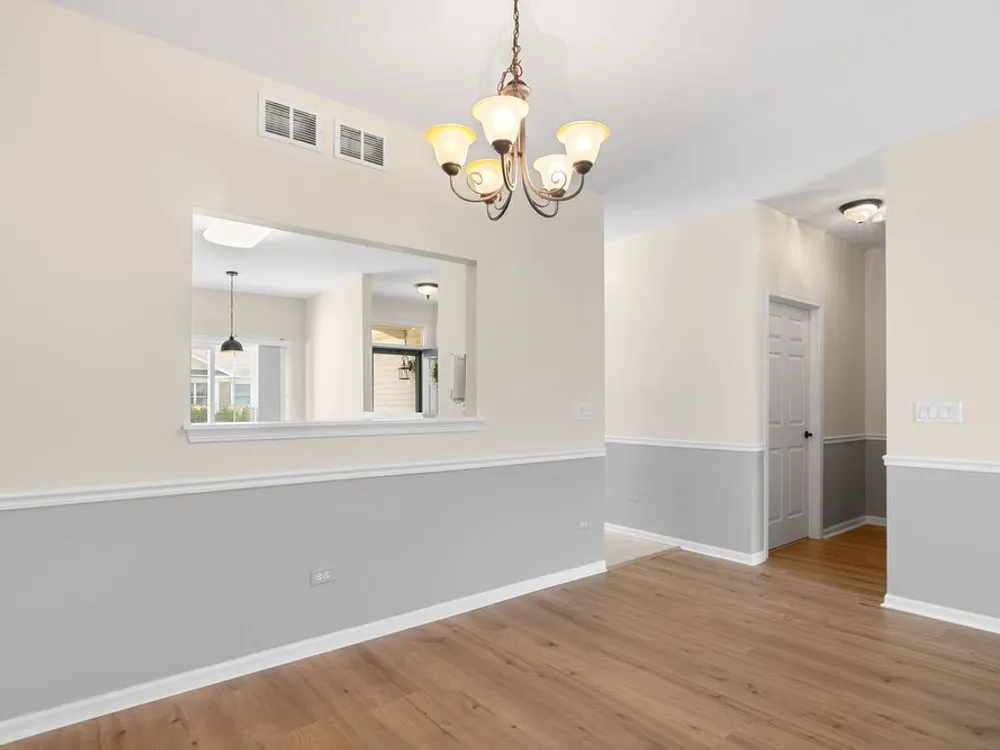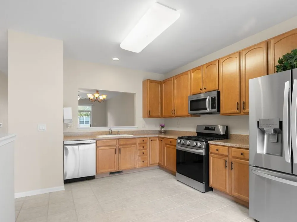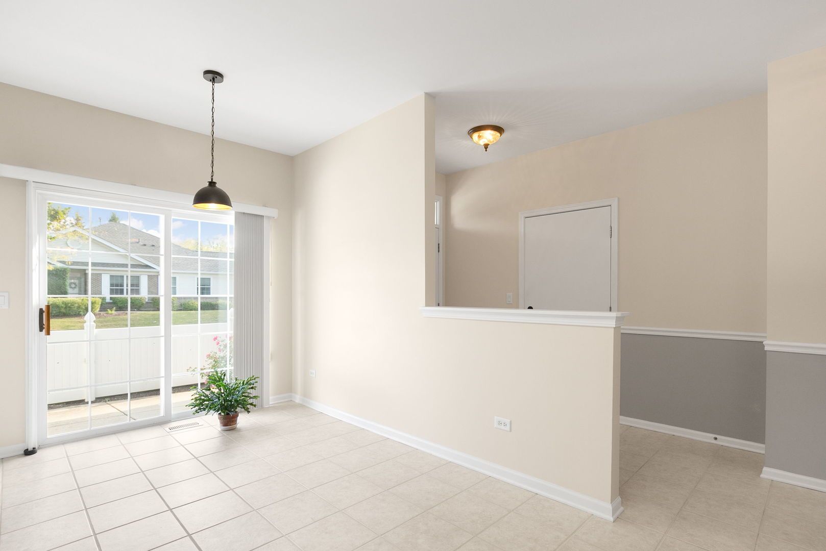 Impeccably maintained 2 Bed 2 Bath ranch in the highly desirable Adult 55+ Community of Carillon North. Spacious sun-drenched kitchen features 42" maple cabinets, pass through window to living space, plenty of countertops and large table space with slider leading to front patio. All NEW stainless steel kitchen appliances in 2024. Gorgeous new wood laminate floors flow throughout living room/dining room and guest bedroom. Enjoy the crisp fall weather in the rear patio with serene nature views. Large primary suite with 2 large closets and accessible walk in tub. Convenient in unit laundry w/ newer washer and dryer. Furnace and A/C less than 3 years old. Enjoy everything that Carillon North community offers including clubhouse, which features two large meeting/gathering rooms, a library room, an exercise/workout room, an indoor pool and indoor hot tub. Plenty of planned community events to enjoy year round in addition to pickle ball/tennis courts, walking trails and the Grayslake golf course. All with the convenience of the HOA maintaining the exterior upkeep including snow removal and lawn care.