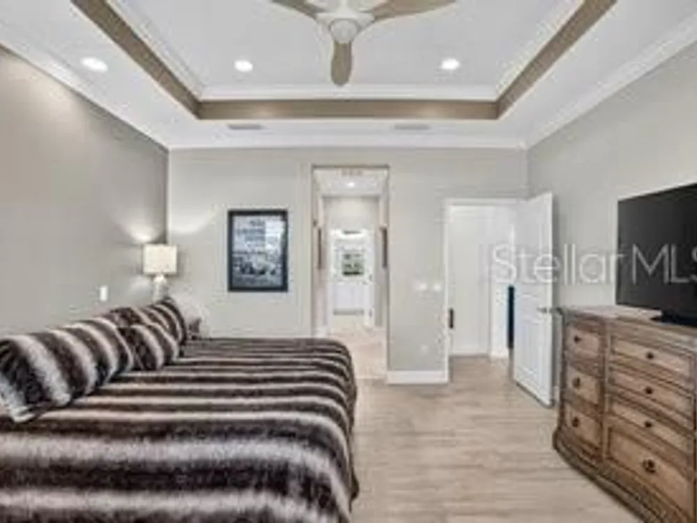 - Ceiling Fan(s), Crown Molding, Kitchen/Family Room Combo, Open Floorplan, Split Bedrooms, Tray Ceiling(s), Walk-In Closet(s)
