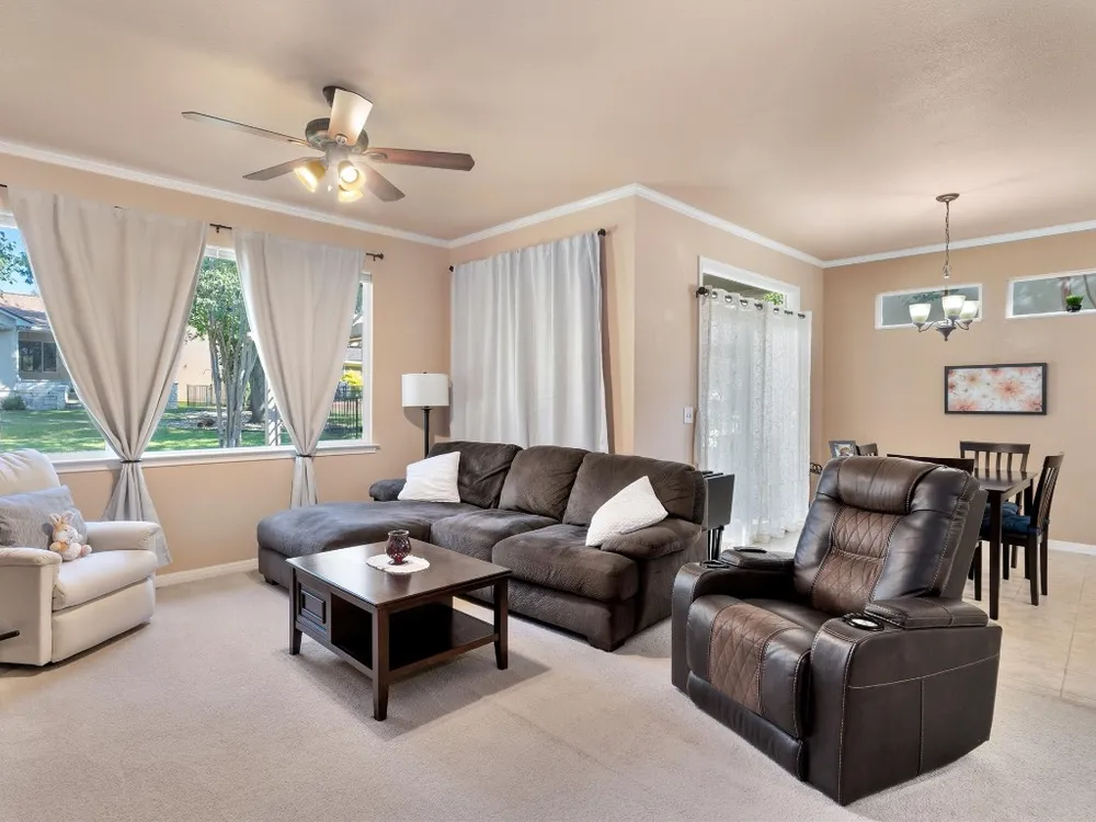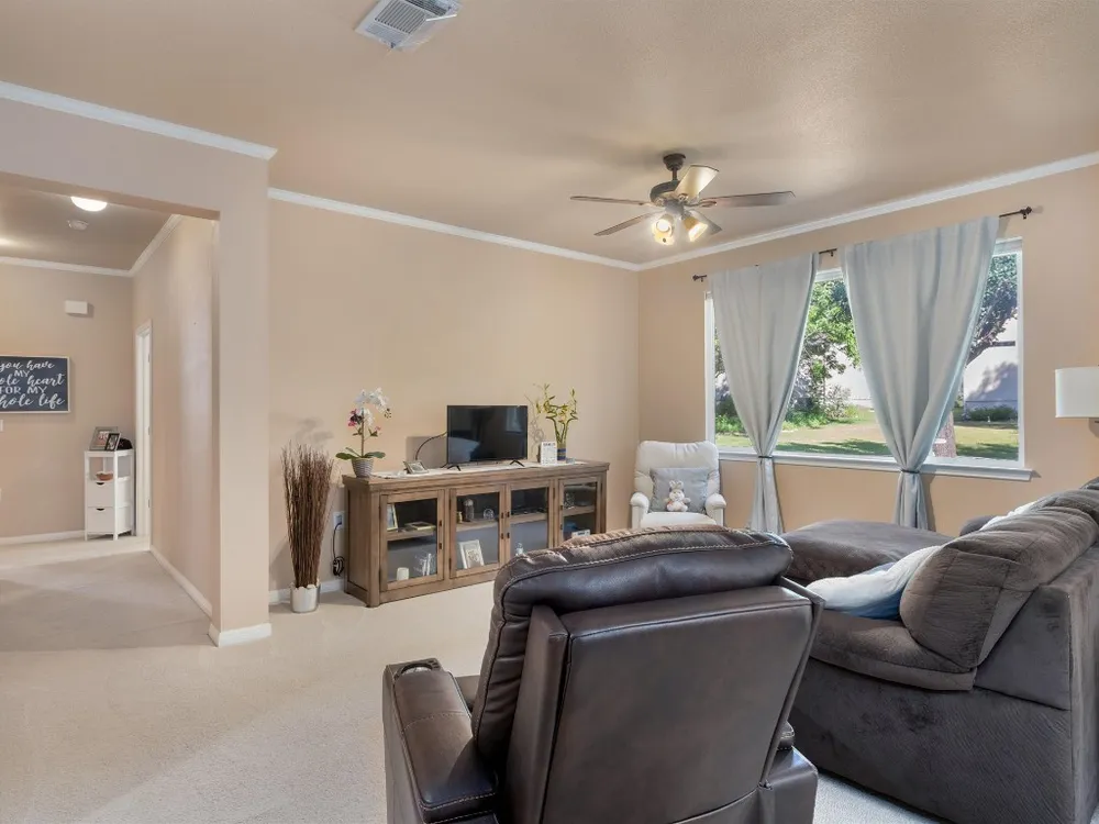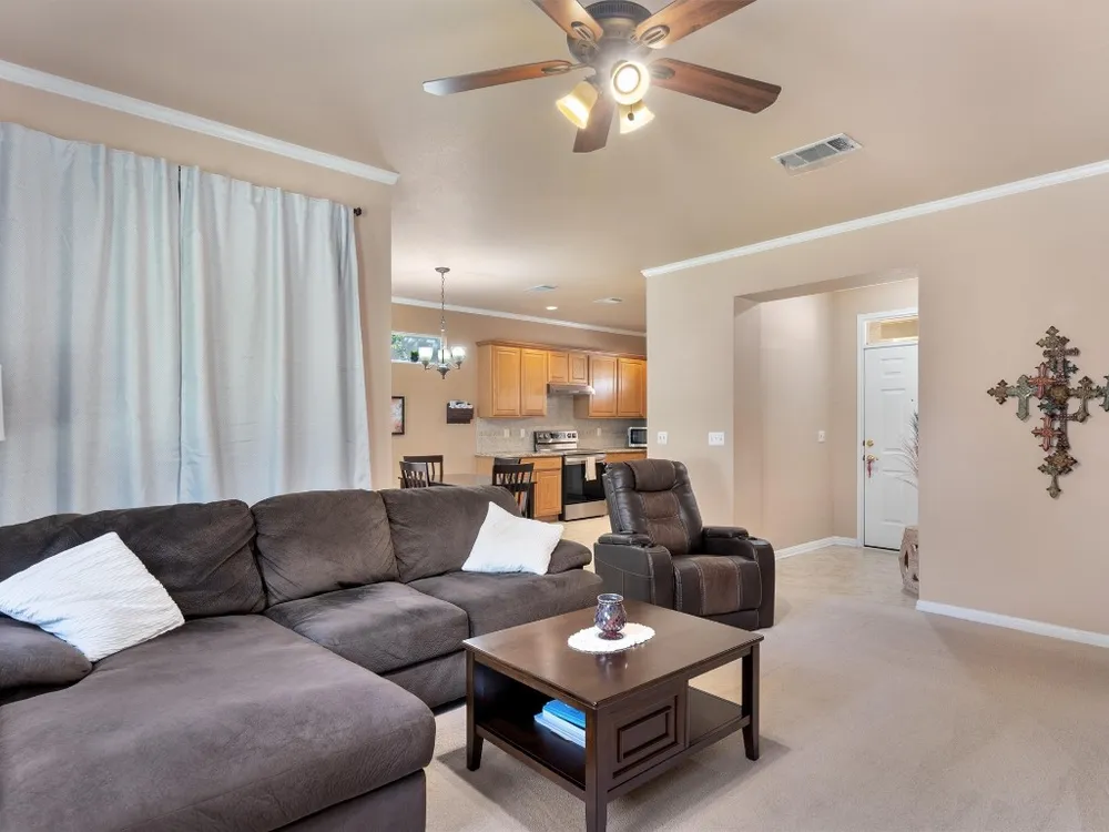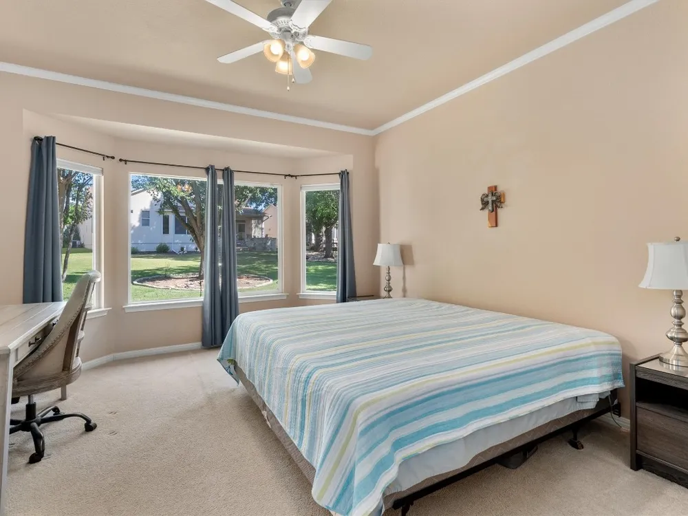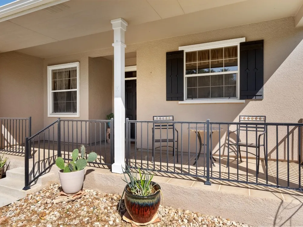 What a great find in Sun City! Littlefield with relaxing outdoor living areas. Front Porch invites you to enjoy the afternoon. Rear Covered patio is shady and great space for table and chairs with extension and arbor. Crown Molding throughout. Ceiling fans already installed so projects are not necessary. HVAC replaced in 2023. Water Heater 2020. Roof 2019. Electric SS Range is 2023. Granite Kitchen counters with neutral backsplash in kitchen. Shower in main bathroom. What a great value for neat and clean home in such a great neighborhood. Yard is well maintained and lush ready for you.