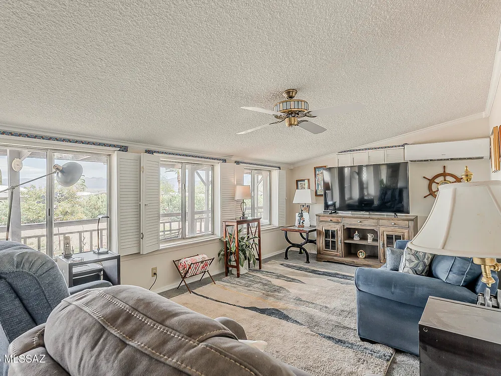 Introducing a truly unique home that offers breathtaking mountain views and an abundance of storage space. This exceptional property features a durable tile roof, is situated on two expansive lots, and is fully enclosed by a block wall for added privacy. Overlooking a serene park like common area, this home has been thoughtfully redone to provide modern comforts and an elegant style. Step inside to discover a large formal living room adorned with custom decorator touches and cabinets, a dedicated dining area, and a large kitchen complete with a walk-in pantry. The spacious master bedroom offers a full wall of closets, while the second bedroom is conveniently located off the hall bath. Additionally, there is a custom-built office and a family room with abundant light.