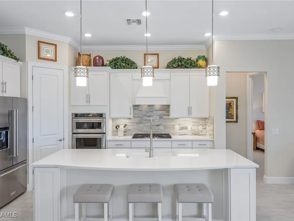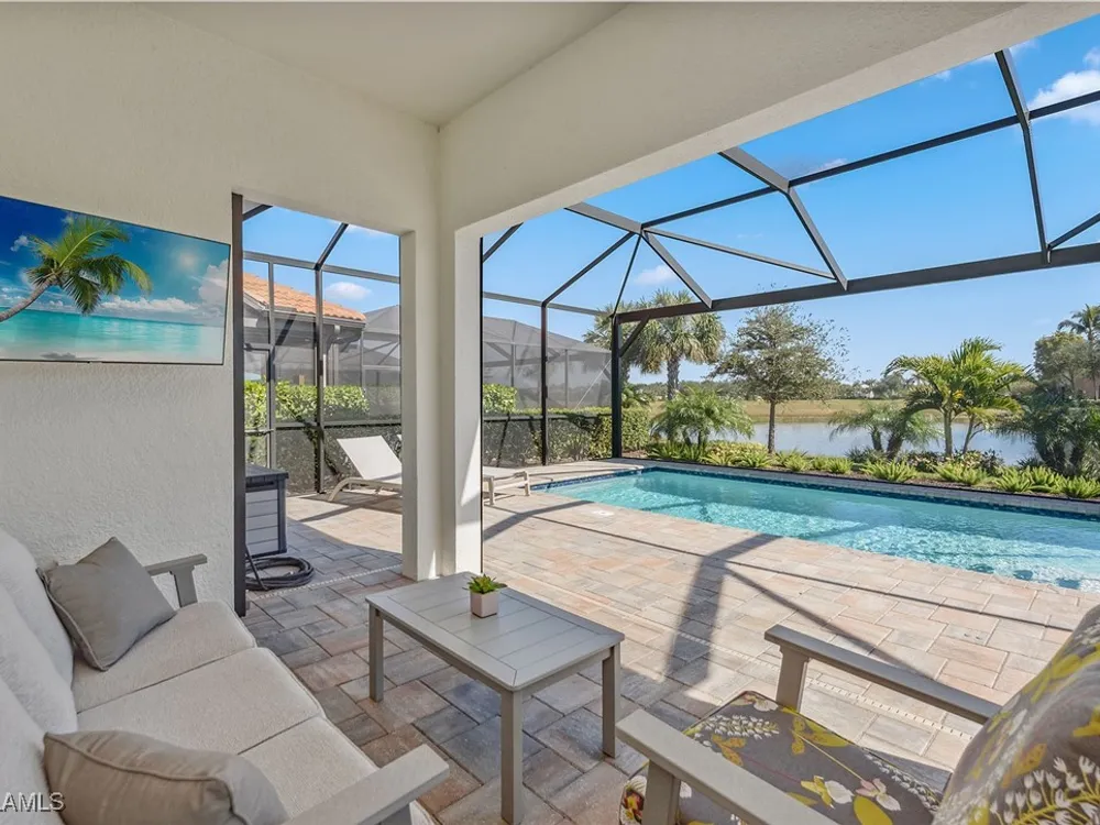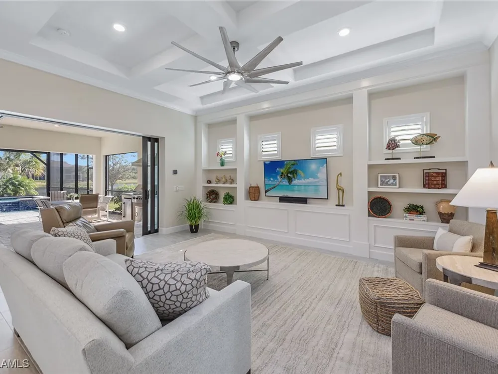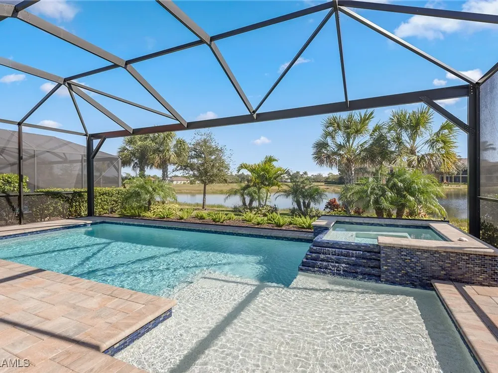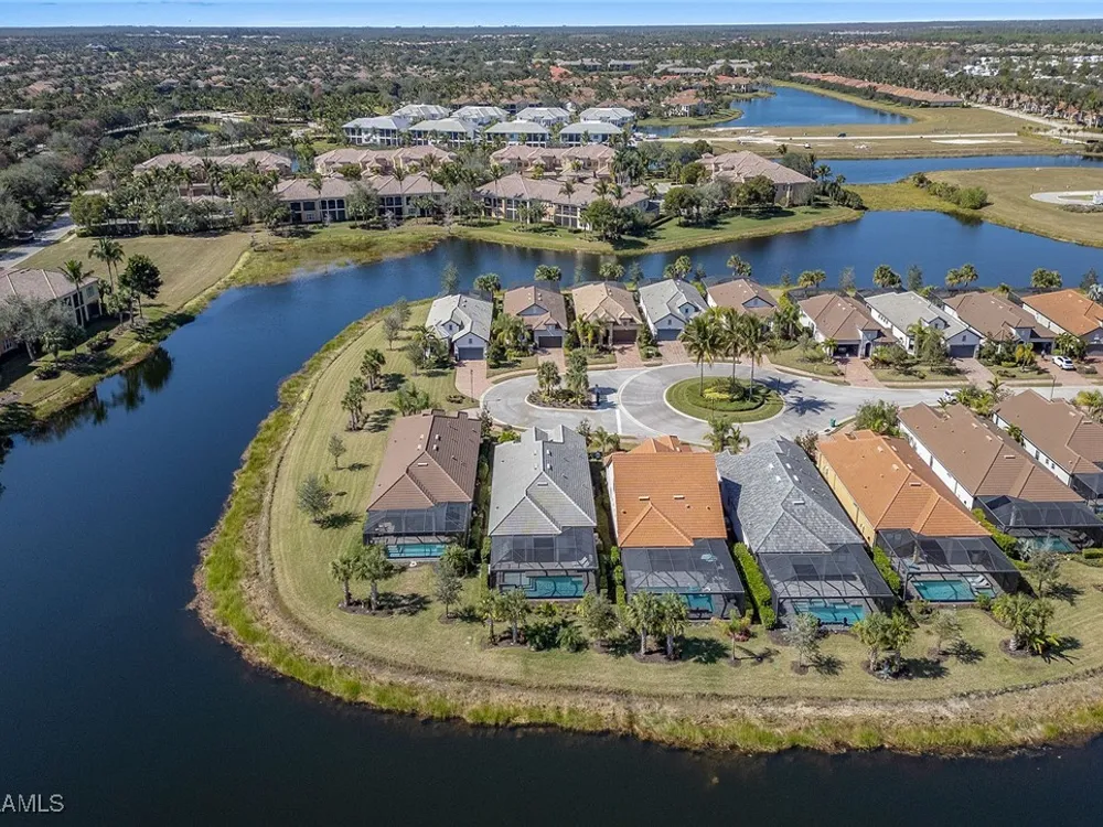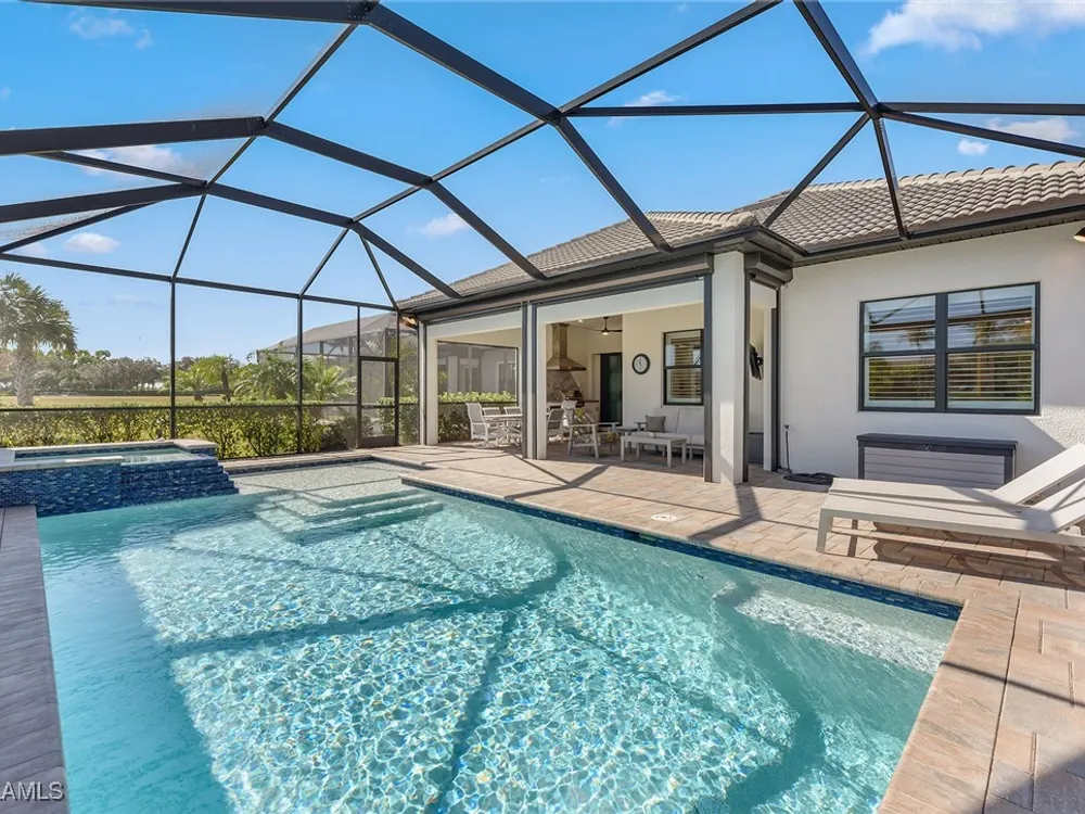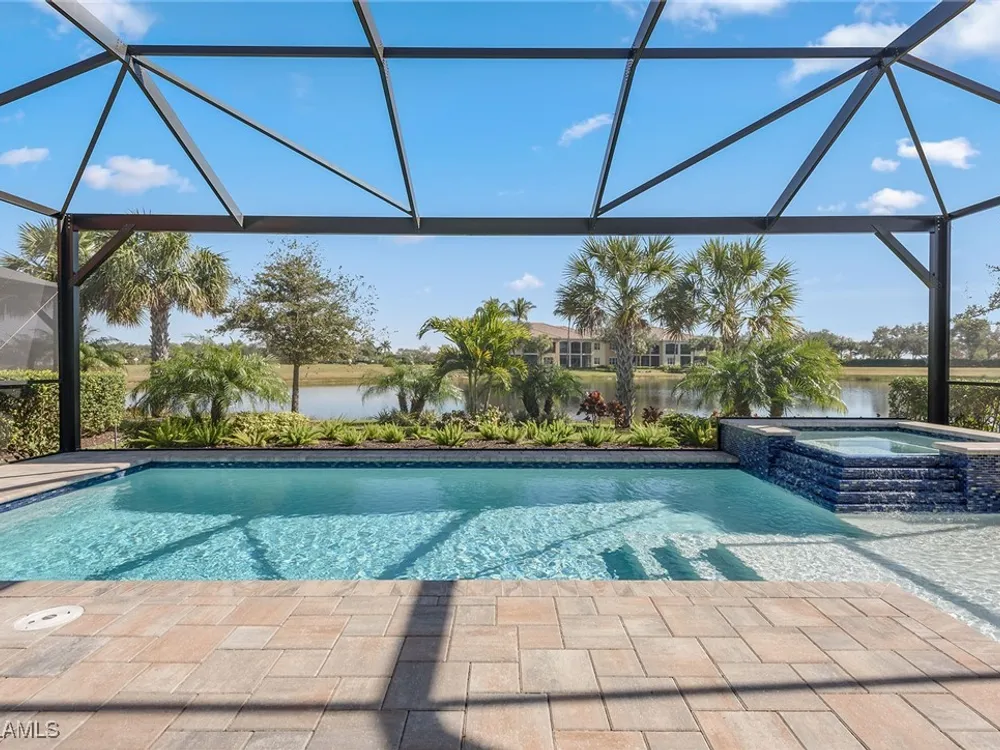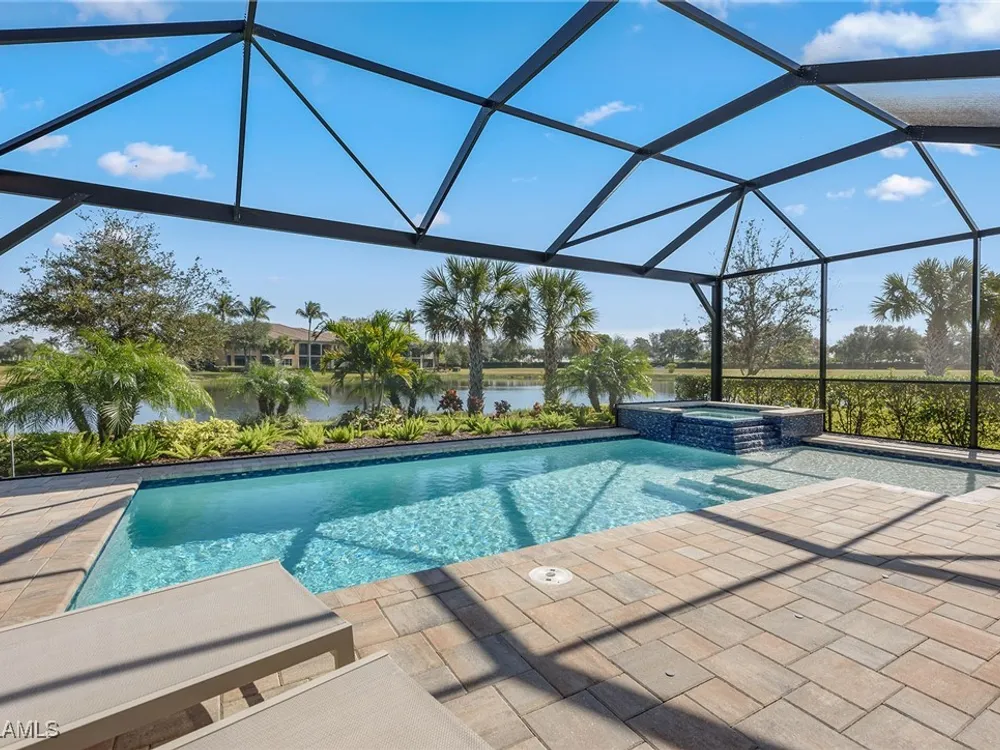 Searching for a home where serene lake views embrace your daily life? This impeccably maintained three-bedroom, three-full-bath lakeside residence in Amaranda in the distinguished community of Fiddler’s Creek offers a harmonious merging of comfort and splendor! From its vibrant landscaping and colorful blooms to its thoughtfully designed interior, every detail of this abode is crafted for elegance and ease. Go inside to discover an open-concept layout bathed in natural light, courtesy of abundant impact windows, sliders and doors. Coffered ceilings with crown molding, plantation shutters and wood-look ceramic floors add warmth and sophistication, while contemporary fans provide a modern touch. This incredible home offers plentiful natural light and is like a new home without the wait or stress of building. Entertain effortlessly in the living and dining areas, while the open kitchen creates an ideal focal point with its sleek white cabinetry, gleaming quartz countertops, natural gas cooktop, wall oven and premium stainless appliances. The pendant-lit island and generous pantry make it as functional as it is stylish. Your primary suite is an oasis, featuring a tray ceiling, walk-in closet, and spa-like en suite with a dual vanity and multi-head shower for ultimate relaxation. French doors lead to a bonus study, offering a versatile space for work or leisure. The expansive screened-in lanai is another area where this dwelling shines. Pocketing corner doors create a seamless transition between indoor and outdoor living, leading to a pristine saltwater pool and spa with breathtaking lake views. The patio’s outdoor kitchen with its stylish tile backsplash and built-in grill is ideal for weekend get-togethers, while electric shutters provide convenience and protection. Additional highlights include an attached two-car garage and a laundry room with built-in shelving and a sink. Venture beyond your tranquil street to uncover the many perks of residing in Fiddler’s Creek. This exclusive, gated community features miles of scenic promenades for biking and jogging, profuse greenery and world-class amenities. Stay active with a state-of-the-art fitness center, professional trainers and group classes, or unwind in the hot tub, sauna and steam room. Tennis and pickleball lovers will love the year-round programs, while golf enthusiasts can treat themselves to the new clubhouse and newly renovated championship course with immediate optional membership. An extensive social calendar fosters a sense of camaraderie. Ideally just minutes from downtown Naples and Marco Island, this home offers easy access to stunning beaches, excellent restaurants, boutique shops, yacht clubs and endless recreational sports. Memberships in golf, beach and marina clubs are optional and sure to enhance your experience. Grab this exceptional opportunity today!