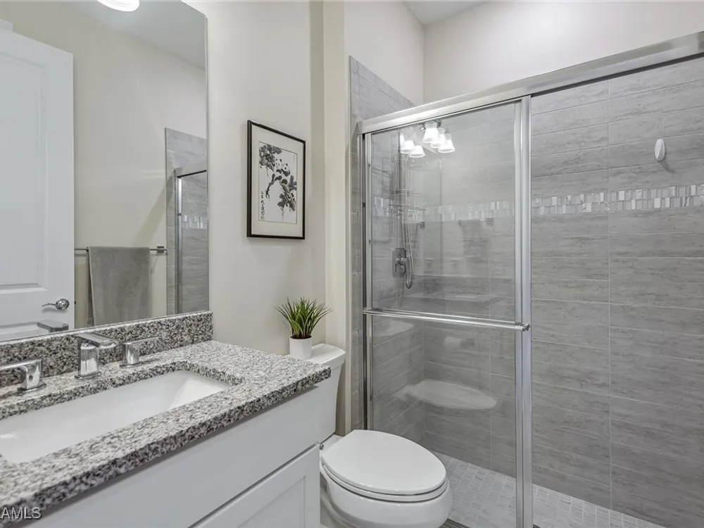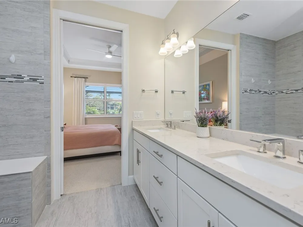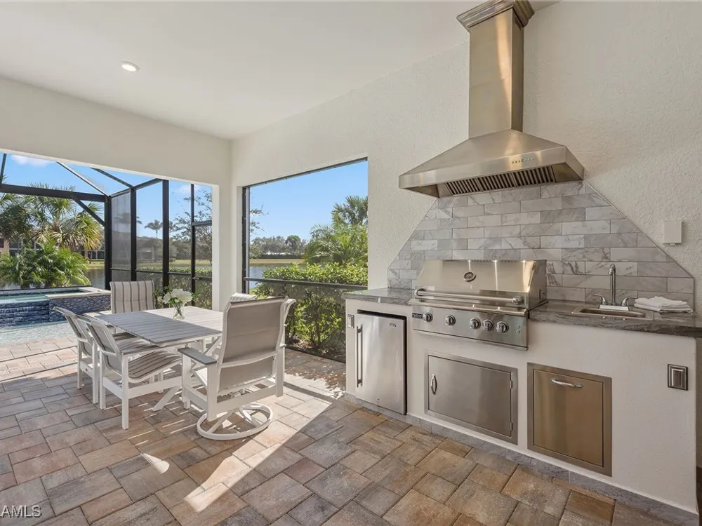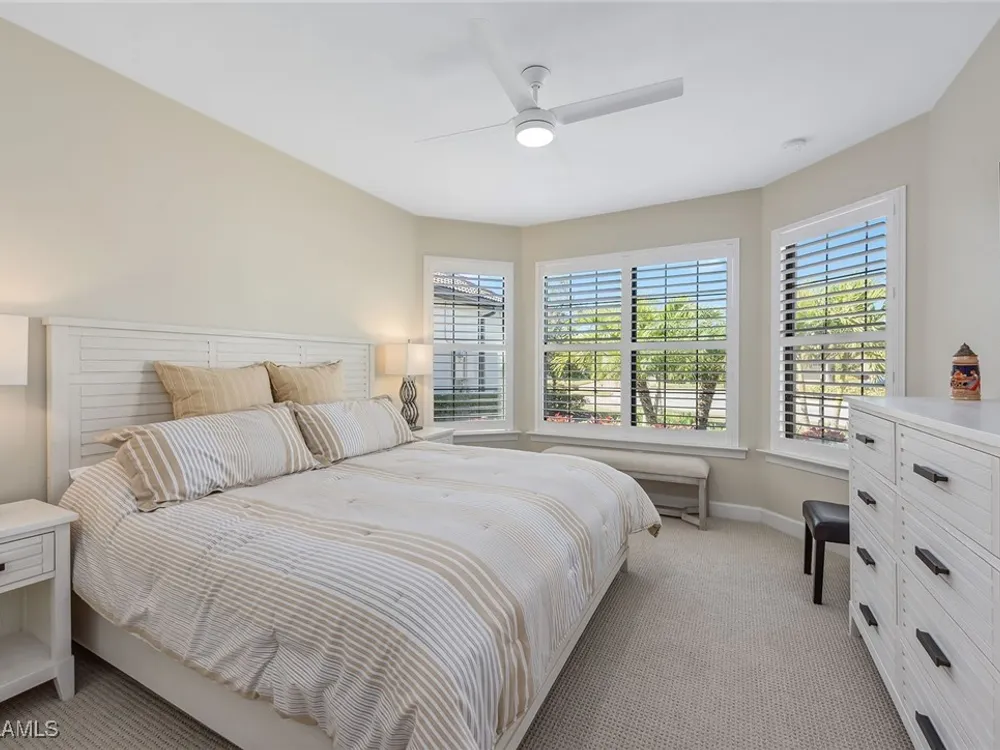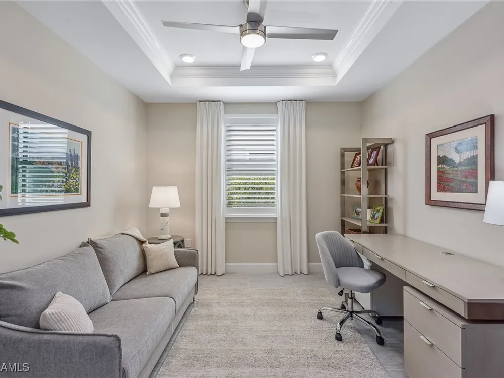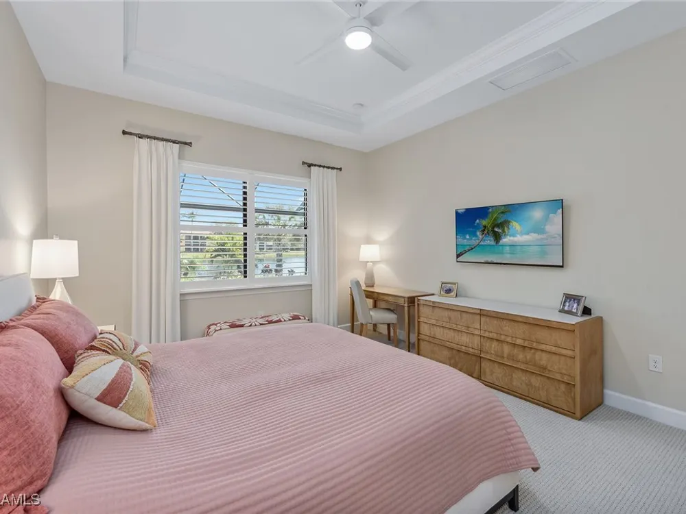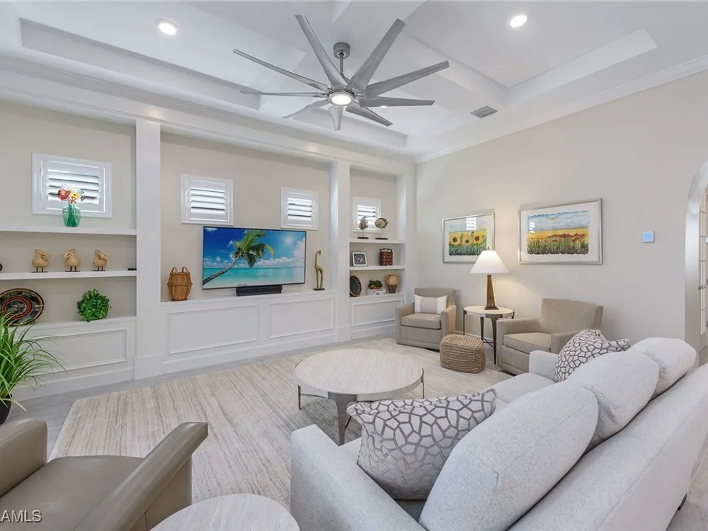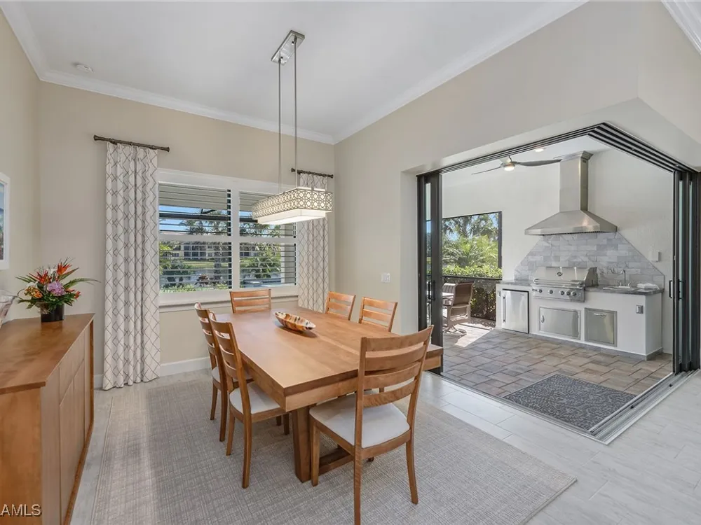 Searching for a home where serene lake views embrace your daily life? This impeccably maintained three-bedroom, three-full-bath lakeside residence in Amaranda in the distinguished community of Fiddler’s Creek offers a harmonious merging of comfort and splendor! From its vibrant landscaping and colorful blooms to its thoughtfully designed interior, every detail of this abode is crafted for elegance and ease. Go inside to discover an open-concept layout bathed in natural light, courtesy of abundant impact windows, sliders and doors. Coffered ceilings with crown molding, plantation shutters and wood-look ceramic floors add warmth and sophistication, while contemporary fans provide a modern touch. This incredible home offers plentiful natural light and is like a new home without the wait or stress of building. Entertain effortlessly in the living and dining areas, while the open kitchen creates an ideal focal point with its sleek white cabinetry, gleaming quartz countertops, natural gas cooktop, wall oven and premium stainless appliances. The pendant-lit island and generous pantry make it as functional as it is stylish. Your primary suite is an oasis, featuring a tray ceiling, walk-in closet, and spa-like en suite with a dual vanity and multi-head shower for ultimate relaxation. French doors lead to a bonus study, offering a versatile space for work or leisure. The expansive screened-in lanai is another area where this dwelling shines. Pocketing corner doors create a seamless transition between indoor and outdoor living, leading to a pristine saltwater pool and spa with breathtaking lake views. The patio’s outdoor kitchen with its stylish tile backsplash and built-in grill is ideal for weekend get-togethers, while electric shutters provide convenience and protection. Additional highlights include an attached two-car garage and a laundry room with built-in shelving and a sink. Venture beyond your tranquil street to uncover the many perks of residing in Fiddler’s Creek. This exclusive, gated community features miles of scenic promenades for biking and jogging, profuse greenery and world-class amenities. Stay active with a state-of-the-art fitness center, professional trainers and group classes, or unwind in the hot tub, sauna and steam room. Tennis and pickleball lovers will love the year-round programs, while golf enthusiasts can treat themselves to the new clubhouse and newly renovated championship course with immediate optional membership. An extensive social calendar fosters a sense of camaraderie. Ideally just minutes from downtown Naples and Marco Island, this home offers easy access to stunning beaches, excellent restaurants, boutique shops, yacht clubs and endless recreational sports. Memberships in golf, beach and marina clubs are optional and sure to enhance your experience. Grab this exceptional opportunity today!