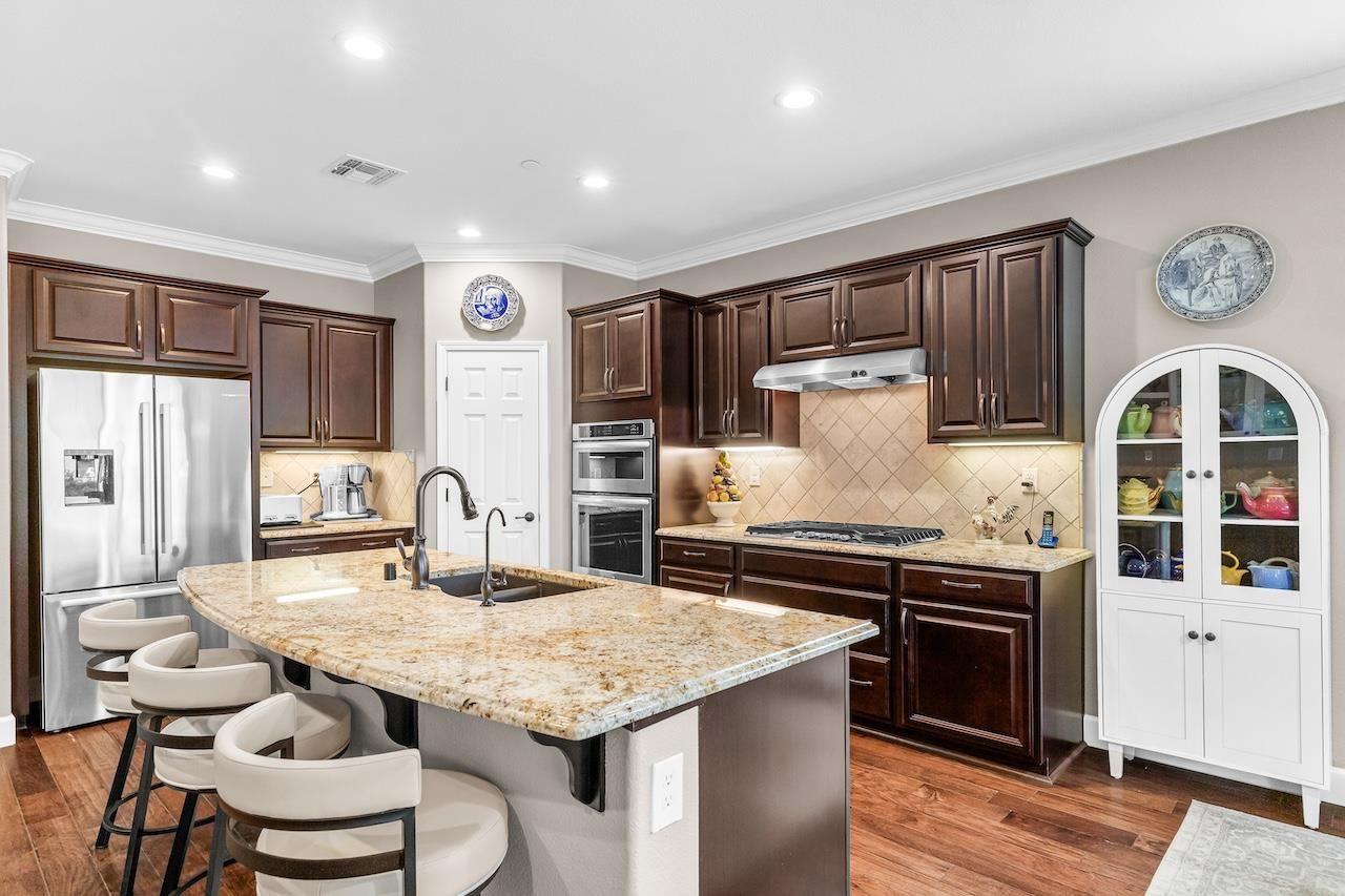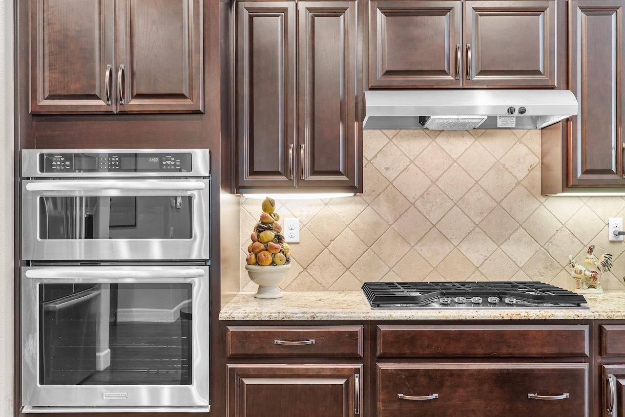 - Built-In Electric Oven, Gas Cooktop, Dishwasher, Disposal, Microwave, Tankless Water Heater