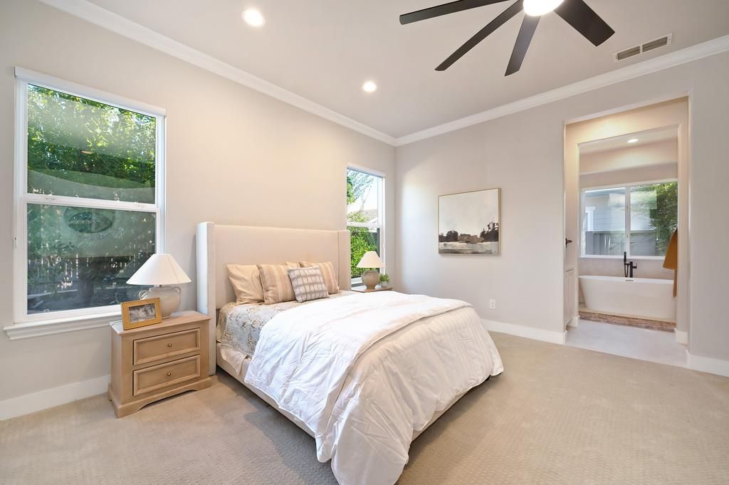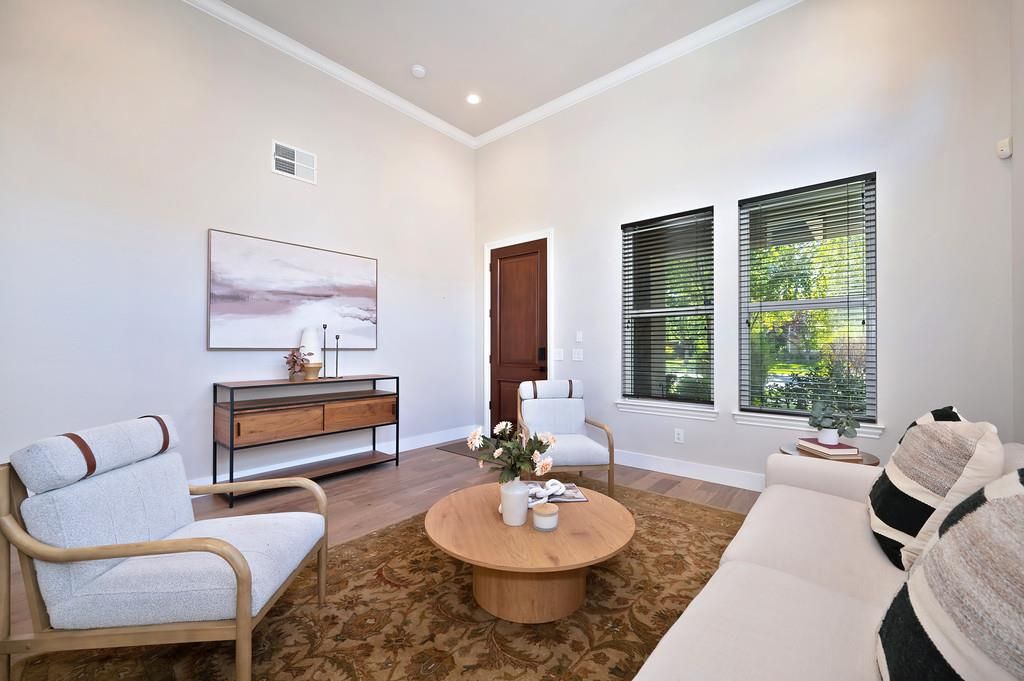 TURNKEY STUNNER IN SACRAMENTO'S PREMIER ACTIVE ADULT COMMUNITY! Welcome to Heritage Park, a beautifully landscaped gated community offering resort- style living for active adults. ~ This stunning 4-bedroom, 3-bath home features 10, 12, and 21 foot ceilings, creating a luxurious haven radiant with natural light! ~ Recent upgrades include fresh exterior and interior paint, European Oak hardwood on floors and stairs, new bedroom carpet, 4-inch baseboards, crown molding, and new solid-core interior doors with upgraded hardware. All bathrooms, including the primary suite, have been extensively remodeled. ~ The laundry room has been redesigned and the 3-car garage offers overhead storage and a smart garage door opener. ~ Additional highlights include new outlets and switches, updated ceiling fans and light fixtures, smart front door entry, built-in security safe and storage under stairs, board-and-batten feature wall in the living room, and leaf gutter guards for easy exterior maintenance. ~ Enjoy the Heritage Park lifestyle, renowned for its clubhouse, pools, fitness center, pickleball & tennis courts, walking trails, and vibrant community activities all designed for convenience, enjoyment and lively connection!
