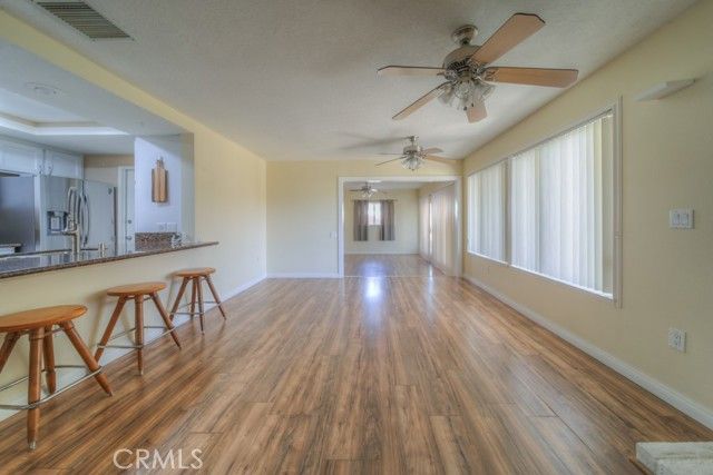 FANTASTIC 2 BED 2 BATH + BONUS ROOM LOCATED IN THE CORE OF SUN CITY. THIS IS AN ACTIVE 55+ MASTER PLANNED COMMUNITY OFFERING MANY AMENITIES. AS YOU ENTER YOU WILL NOTICE A LOW MAINTENANCE LANDSCAPED FRONT YARD WITH 45 FOOT PLUS DRIVEWAY LEADING TO THE HOME. UPON ENTRY THERE IS A NICE SIZE LIVING ROOM LEADING TO THE KITCHEN THAT HAS GRANITE COUNTERS, STAINLESS STEEL SINK AND RECESSED LIGHTING. THE WHOLE HOUSE HAS FRESH PAINT AND UPGRADED BASEBOARDS AND CEILING FANS THROUGHOUT. THE KITCHEN OVERLOOKS A LARGE FAMILY ROOM WITH FIREPLACE THAT ALSO LEADS TO AN EXPANSIVE BONUS ROOM WHICH HAS 2 SETS OF DOUBLE DOORS LEADING INTO THE BACKYARD. A SPACIOUS MASTER BEDROOM AND BATH WITH MIRRORED CLOSET DOORS, SECONDARY BEDROOM ACROSS THE HALL AND PRIVATE BATH. GOING OUT TO THE PRIVATE BACKYARD THERE IS A LARGE PATIO COVER WITH A SKYLIGHT AND BUILT IN LIGHTS AND LOTS OF CEILING FANS THROUGHOUT. ELECTRICAL PANEL WAS UPGRADED AND NEW. BLOCK WALL ON BOTH SIDES FOR ADDITION PRIVACY AND NO BACK NEIGHBORS. HOME HAS A 2 CAR GARAGE AND A 3.5 TON A/C WITH 8 INCH DUCT WORK. COME AND CHECK IT OUT, TIME TO ENJOY 55+ ALSO A VERY LOW TAX RATE AND LOW HOA FEE AND HUGE SOLAR SYSTEM PAID OFF AND INCLUDED WITH NEW ELECTRICAL PANEL.