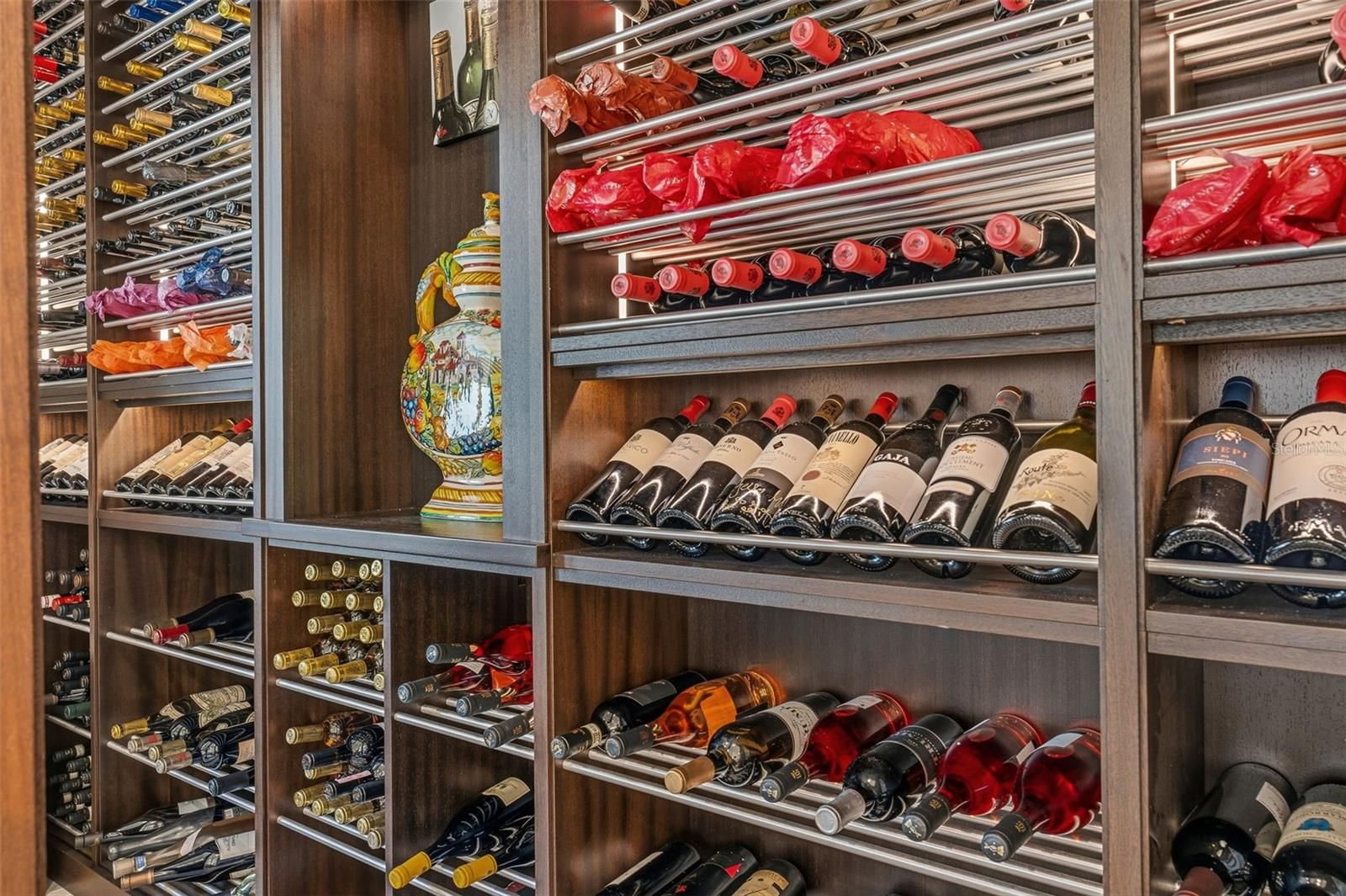 Welcome to 2722 River Creek Lane, located in the resort style community of Sunbridge by Del Webb, where this extraordinary one story residence sets a standard that simply does not compare. This is by far the largest and most extensively upgraded single story home in all of Sunbridge, offering an impressive 4,526 square feet of heated living space. Professionally redesigned with no detail overlooked, this home exemplifies true luxury living while also incorporating ADA accessible features, allowing for comfort, ease of movement, and long term livability all on one level. Ideally positioned approximately 100 yards from the clubhouse, residents enjoy immediate access to pickleball courts, resort style pool, restaurant, fitness center, and social amenities, while the rear of the home backs to scenic protected preserves that will never be built on, providing privacy and peaceful views. Every inch of this home is one of a kind and loaded with high end finishes. A 45 square foot refrigerated wine cellar provides the perfect space for a substantial wine collection. The chef’s kitchen is exceptional, featuring a Culligan reverse osmosis system, upgraded and hard to find countertops, custom cabinetry, a high end gas range, upgraded hood, refrigerator, oven, and microwave. Upgrades continue throughout the home with premium flooring, fully upgraded bathrooms, custom cabinetry in every closet and the pantry, upgraded blinds, custom light fixtures, custom windows, and crown molding throughout the living areas. High tech Klipsch surround sound systems with subwoofers are installed in the living room, family room, and primary bedroom, all with wireless receivers and subwoofers that convey. The expansive family room addition features sound resistant sliding doors, allowing the space to function as a private living area or open completely to create one massive entertaining space. This room is accented by beautiful mahogany ceiling woodwork, along with an electric fireplace and television that convey. The three car garage is a dream for car enthusiasts or hobbyists, professionally insulated and equipped with a high end Mitsubishi HVAC system and brand new epoxy floors. Additional features include a whole home water treatment system, refrigerator and freezer that convey, and an upgraded attic with added flooring for easy access storage. Step outside to a true backyard oasis, designed for beauty and low maintenance living. The outdoor space includes professional landscaping with artificial turf, a gorgeous pergola with sun shade, a private putting green, and a high end outdoor kitchen. The kitchen is equipped with a Schwank high performance grill capable of reaching 1,500 degrees in minutes for restaurant quality cooking, along with a standard gas grill, gas burner, sink, refrigerator, and granite countertops. A gas instant hot water system completes the home’s extensive list of premium features. While Sunbridge by Del Webb is a 55 plus community, it is important to note that up to 10 percent of the community is permitted to be under the age of 55, offering additional flexibility for eligible buyers. As an added value, the seller is offering an $800 credit to be applied toward a home warranty. No other home in Sunbridge compares in size, quality, or level of customization. This is a rare opportunity to own a truly exceptional luxury residence that combines elegance, accessibility, and resort style living in this remarkable home.