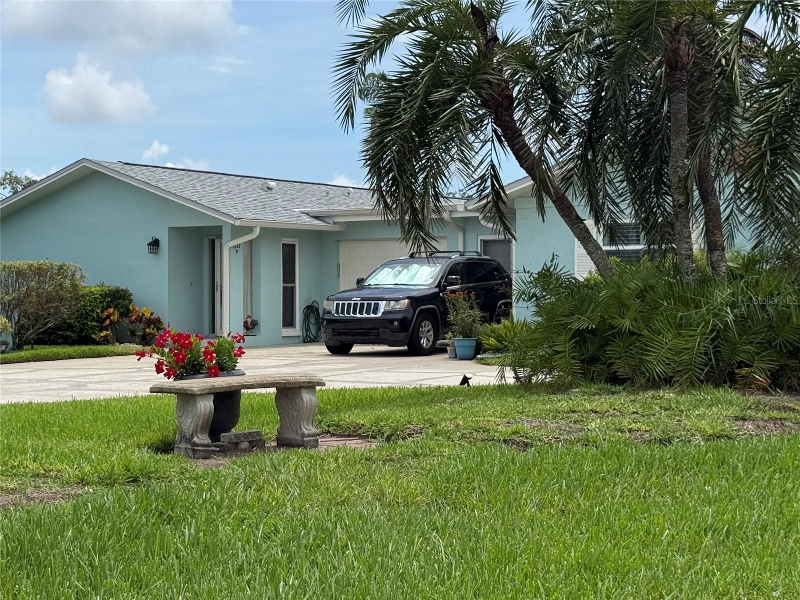Enjoy water views from every room!! Fully furnished 1BR/1.5BA condo for sale in the beautifully landscaped, maintenance-free 55+ golf community of Highland Lakes. Located just off US HWY 19 and next to the new Trader Joe’s, the condo is high and dry and not in a flood zone. This light and bright unit features hurricane-rated sliders and windows (2021), Shaw Versalock waterproof luxury vinyl plank flooring (tile in kitchen), Craftsman garage door, and a 1-car garage with laundry room, wash tub, and ample storage including two walk-in closets in the primary bedroom. Recent upgrades include commercial-grade water heater & softener (2021), washer/dryer (2022), refrigerator and dishwasher (2023). Shingle roof was replaced in 2020, flat roof replaced in 2023. Andover Village Community amenities include pool, clubhouse, shuffleboard courts, and plenty of scheduled social events. Purchase of additional recreation amenities including golf membership at Highland Lakes is available. Land lease included in HOA dues. Plenty of guest parking. Whether you're looking for a peaceful retreat or a full-time residence, this home offers maintenance-free comfort and an unbeatable location close to shopping, dining, medical facilities, and the Gulf beaches.
