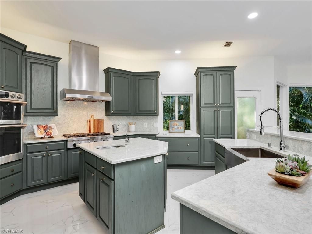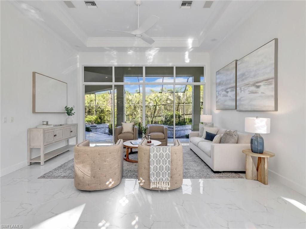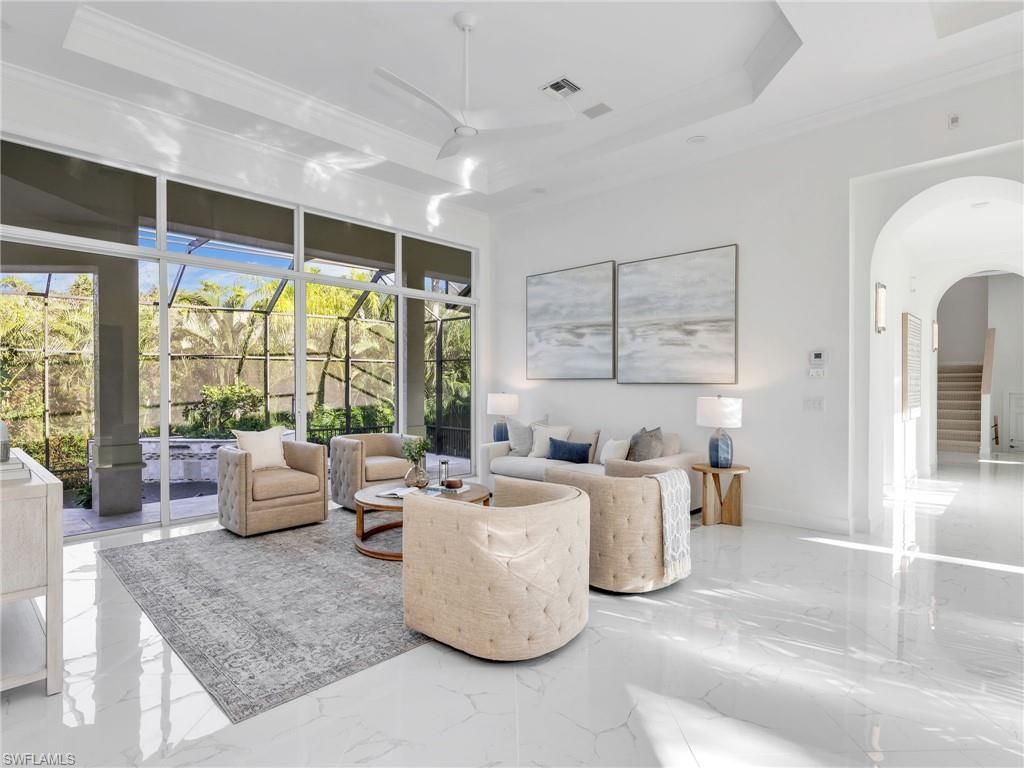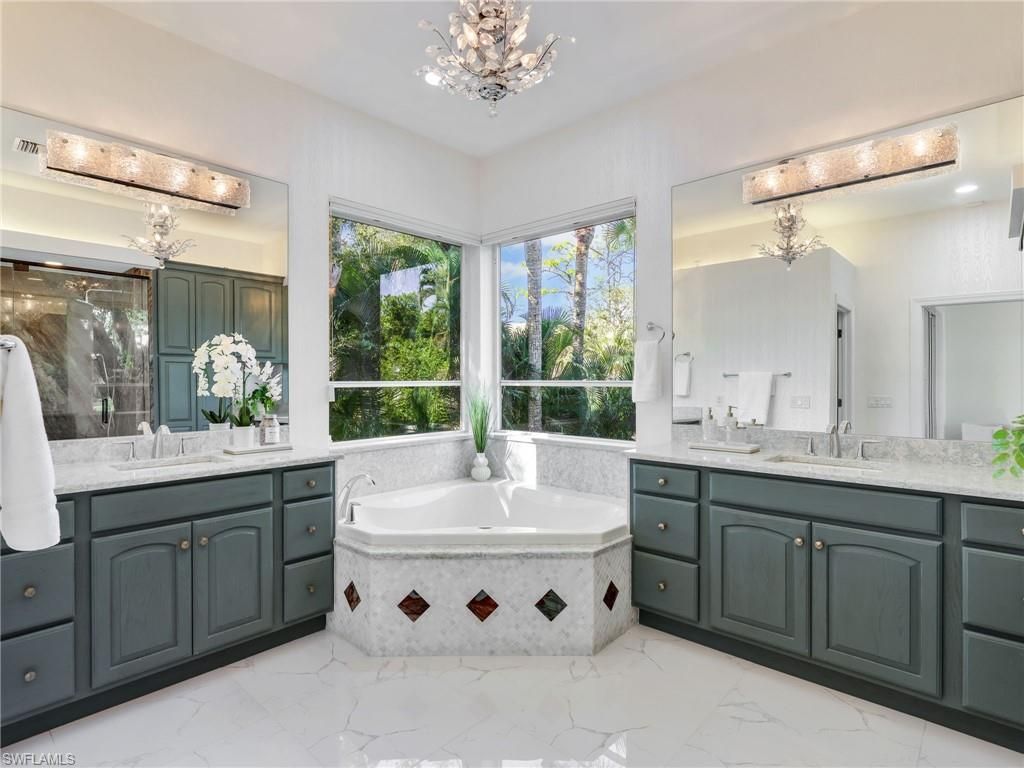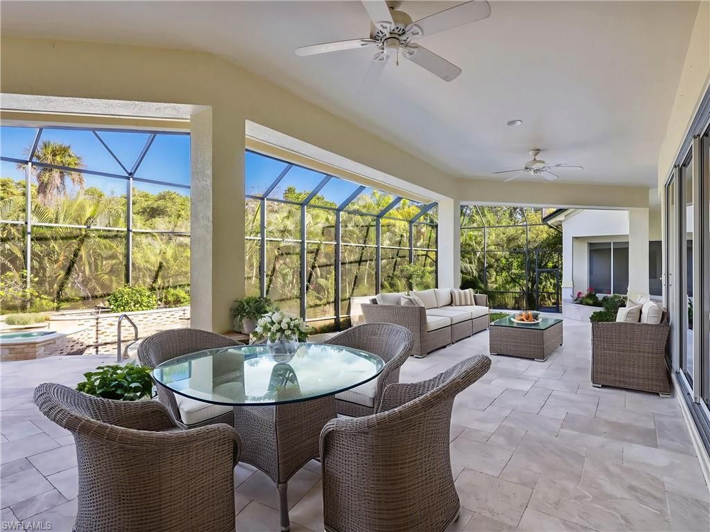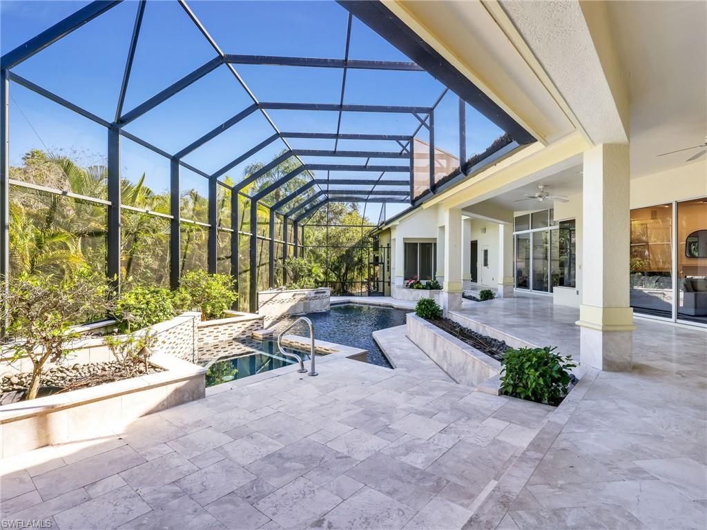 Welcome to Hidden Harbor, one of Bonita Bay’s most desirable enclaves, where luxury, nature, and lifestyle converge. This exclusive neighborhood of just 53 custom homes is situated along oak-lined streets, surrounded by lakes and preserves, offering unmatched privacy and tranquility. Residents enjoy a peaceful, park-like setting close to the Bonita Bay Marina, Backwater Jacks waterfront restaurant, and miles of walking and biking paths. Bonita Bay’s prime location places you minutes from Gulf beaches, Coconut Point Mall, fine dining, and RSW International Airport. Set on a rare one-acre preserve lot, this 4,551-sq-ft residence blends timeless elegance with modern comfort. A winding driveway leads to the .81-acre property with a spacious three-car garage and beautifully landscaped grounds. Inside, natural light fills open spaces designed for easy living and entertaining. The chef’s kitchen features a large island, double ovens, stainless steel appliances, a wine refrigerator, and abundant storage. Cooking is powered by propane gas, with an on-site tank that also supports a future generator. The home offers four bedrooms plus a den and four full baths. Upstairs, a bonus suite includes a living area, deck, bedroom, bath, beverage fridge, and plumbing for a compact kitchenette—perfect for guests. An air-conditioned storage room adds convenient climate-controlled space. The primary suite provides a private retreat with a spa-like bath, Jacuzzi tub, and walk-in shower and also has a private deck over looking a lake, great for romantic sunsets. The outdoor living area is a showpiece. The multi-level infinity pool features elegant sheer descent water features and luxurious marble decking. The exquisite lanai creates the perfect setting for relaxing or entertaining, surrounded by lush landscaping and preserve views. Renovated in 2016 and continually improved through 2025, updates include a new roof (2022), three HVAC systems (2020), three water heaters (2020–2024), updated pool equipment, marble-tile lanai, lighting, freshly painted interior, flooring, new upstairs carpeting, and a newly painted and sealed driveway for a crisp, clean look. Life in Bonita Bay offers something for everyone. Optional memberships at the Bonita Bay Club include access to five championship golf courses (three by Arthur Hills, two by Tom Fazio), a 20,000-sq-ft fitness and wellness center, tennis and pickleball complexes, a croquet lawn, spa, resort pools, and fine or casual dining. The private Beach Club on the Gulf offers shuttle service, lounges, umbrellas, and food service right on the sand. Boating enthusiasts can enjoy optional boat storage and dockage within the full-service marina with easy Gulf access. The community also offers parks, bocce courts, kayak launches, and abundant wildlife viewing. Experience the best of Bonita Bay living—elegance, privacy, and resort amenities all in one exceptional Hidden Harbor home.