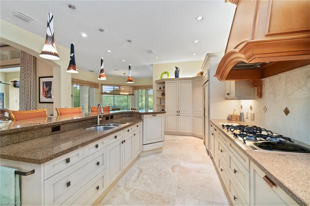 This extraordinary custom-built residence is one of a kind, offering an unmatched blend of craftsmanship, functionality and thoughtful design. Built and meticulously maintained by its original owners, the property showcases distinctive architectural details and high-end finishes throughout. In addition to the 4,022 square feet of main living area, there is an additional 1,086 square feet of air-conditioned non-conforming space, providing flexibility for a variety of uses. Outdoor living is equally impressive, set against lush, private preserve views on a generous 0.51-acre lot. The pool area was updated in 2024 with a new pump, updated lighting and fiber optic enhancements, along with a shallow sun shelf. A convenient pool bath includes a sauna, towel warmer and additional storage. The pool enclosure was repainted and rescreened in 2019, creating a pristine outdoor setting. Upon entry, striking design elements stand out, including large solid wood doors with custom iron handles, Mexican Shellstone tile, custom iron railings with an integrated safety gate and hand-painted murals throughout, no wallpaper, only original artwork. Lighted steps, picture lighting and a private elevator elevate style and convenience. The living area showcases expansive ceilings, intricate crown molding and a custom tile accent wall as a focal point. The kitchen is appointed with granite countertops, a gas stove with adjacent deep fryer, double ovens, two dishwashers, a wine cooler and two refrigerated vegetable drawers. A built-in refrigerator blends seamlessly with the cabinetry. The great room includes upgraded power shades. Designed for everyday living and entertaining, the property includes a 450-bottle wine cellar, whole-house water softener and a filtered water line at the kitchen bar. System updates include newer air-conditioning units, updated water heaters and a 2019 roof. A 500-gallon underground propane tank and central vacuum system enhance efficiency and functionality. The oversized, slanted four-car garage offers excellent drainage, abundant storage and upgraded doors, including a battery backup system on one door. With its combination of artistic detail, structural integrity and modern upgrades, this property delivers a distinctive living experience. Residents of Bonita Bay enjoy access to a private Gulf-front beach park, miles of recreational and biking trails, a full-service marina, optional golf memberships and a vibrant community centered around wellness, dining and social connection.