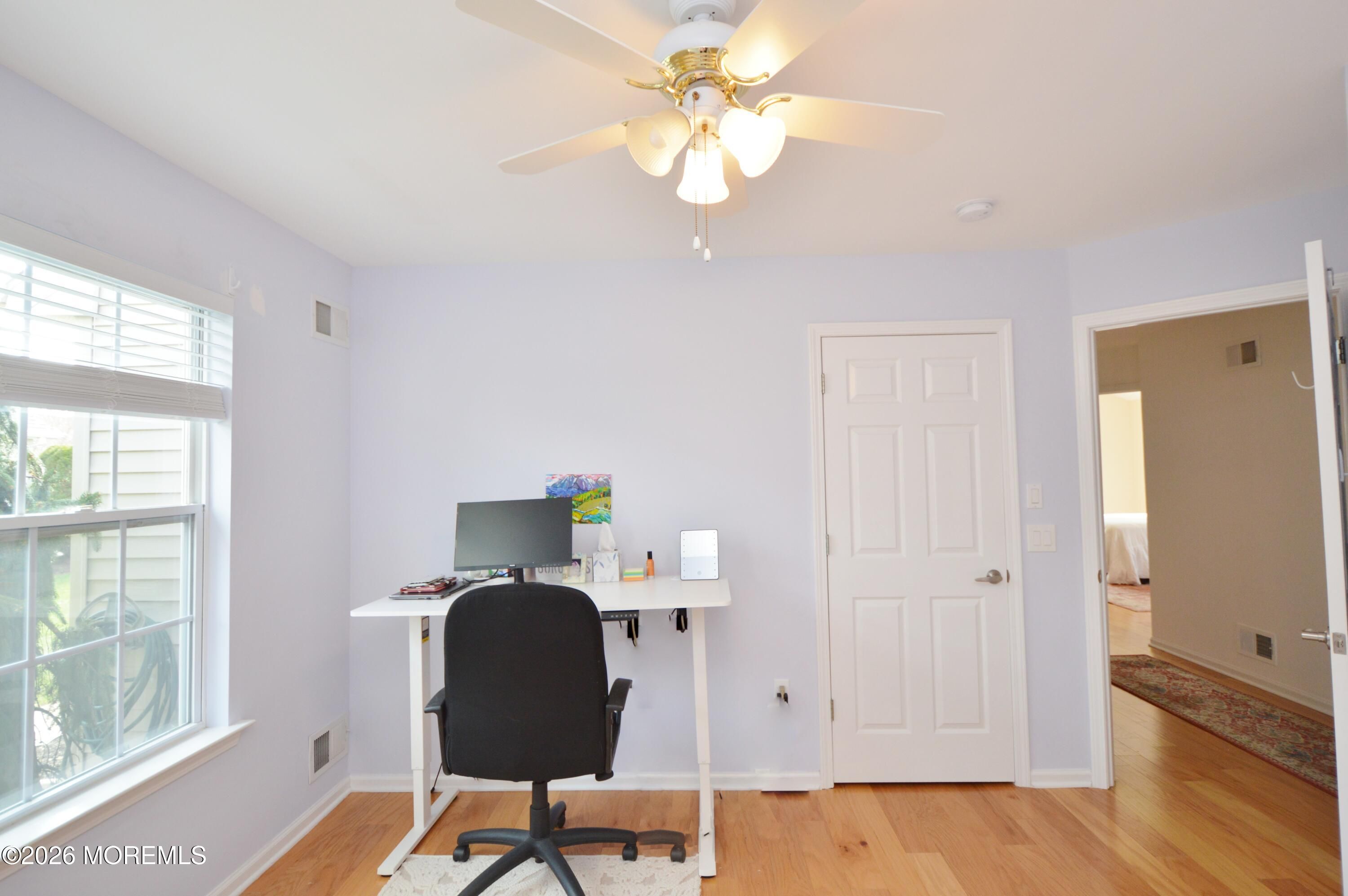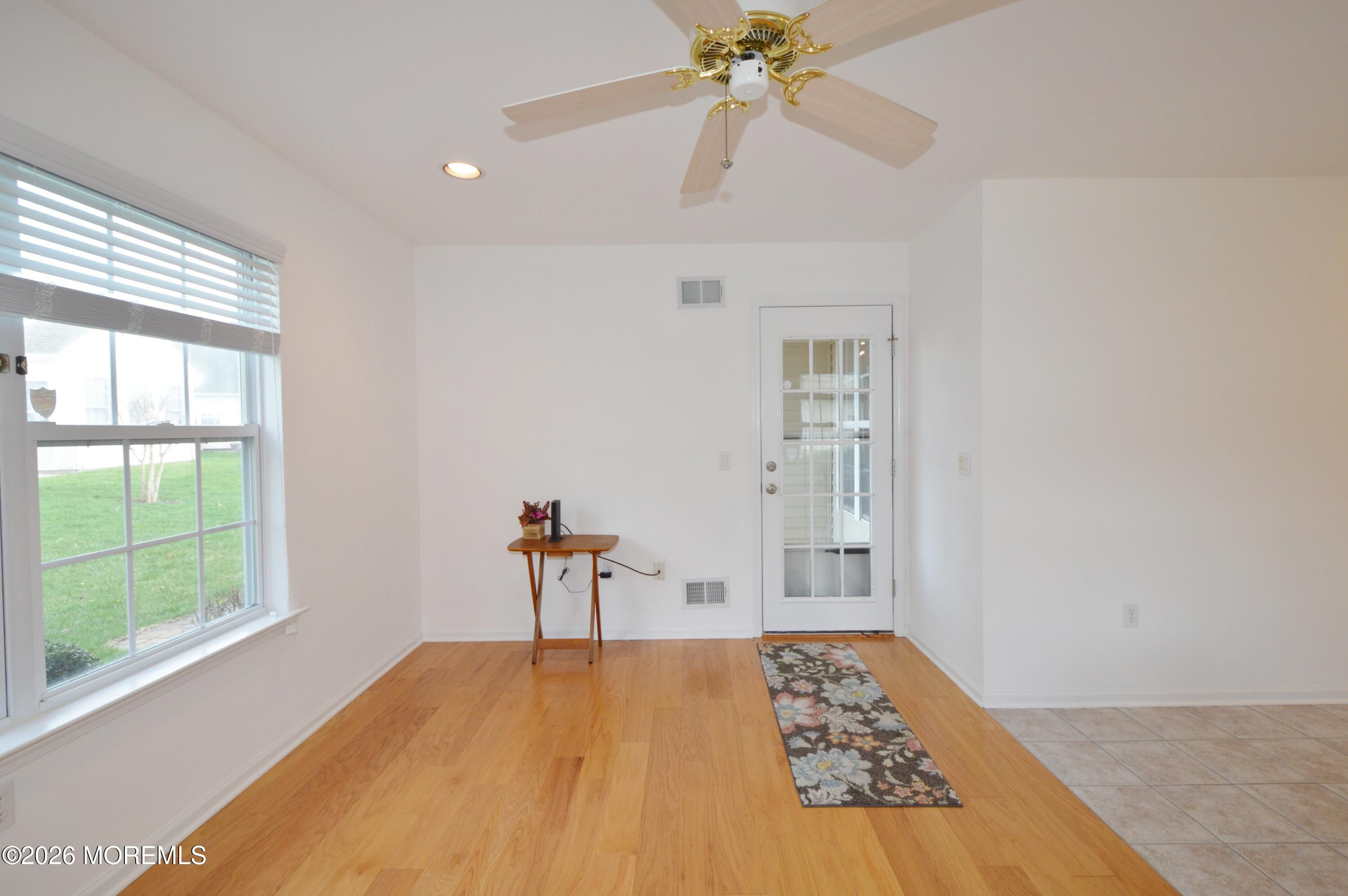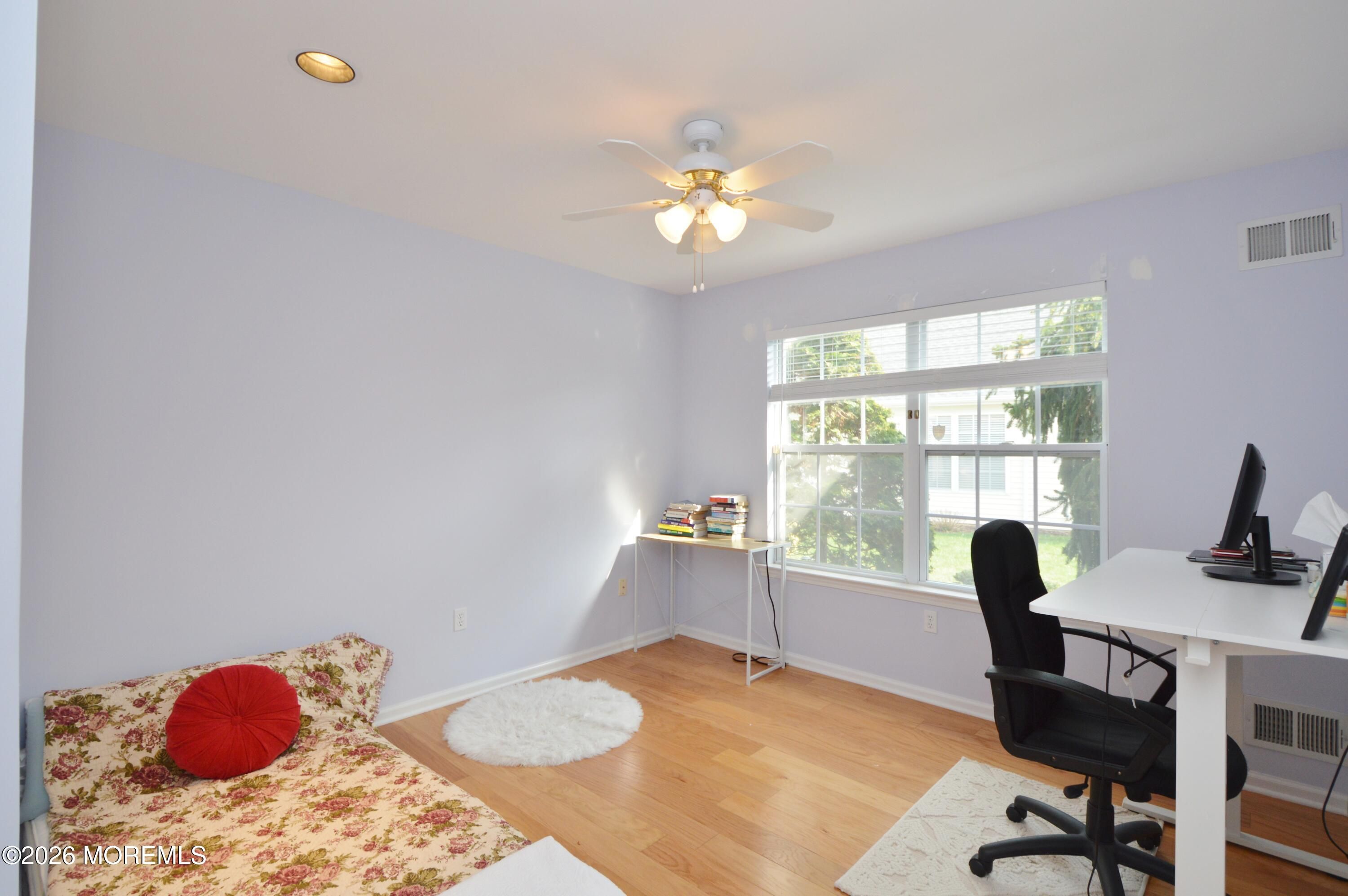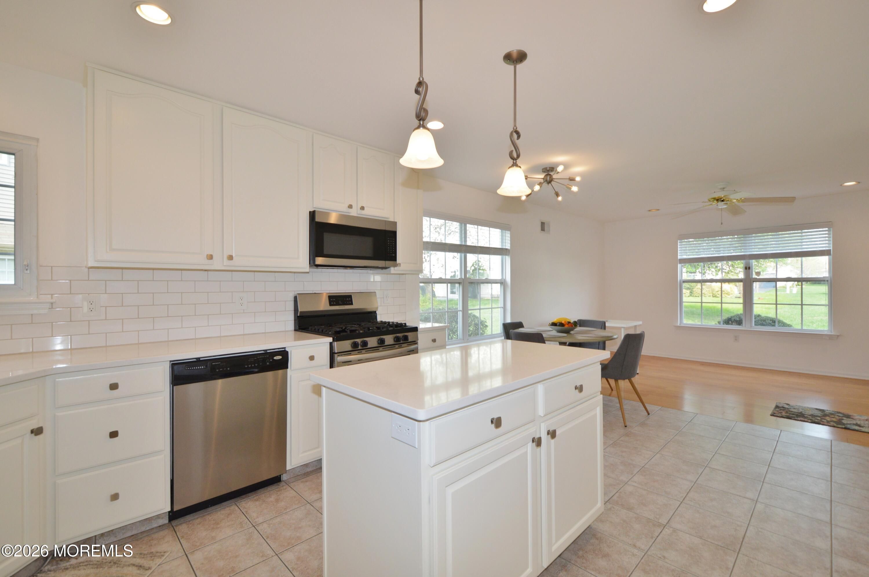 Here's Your Opportunity to LIVE ON THE SUNNY SIDE OF THE STREET AND ON A CUL-DE-SAC ~ Nothing to do but UNPACK and ENJOY YOUR NEW HOME ~ This Lovely Devon Model has Beautiful Hardwood Floors in Most Rooms ~ There is a WELL FOR THE LAWN IRRIGATION WHICH IS A HUGE MONEY SAVER and High/Low Vents for Efficiency ~ The Living Room/Dining Room Combo offers an OPEN FLOOR PLAN ~ The Living Room has Cathedral Ceilings, Recessed Lights and a Palladian Window ~ Dining Room has a Tray Ceiling ~ Beautiful Eat In Kitchen has Painted Cabinets, Quartz Countertops, Tile Backsplash, a ''Crank Out Window'' over the sink, Recessed Lights, Stainless Steel French Door Refrigerator, 5 Burner Stove, Newer Microwave, Center Island with Pendant Lights and a breakfast nook ~ The Adjacent Family Room has a Ceiling Fan Recessed Lights and a door to the REAR OVERSIZED BRICK PATIO ~ Primary Suite with Cathedral Ceilings, Recessed Lights, Ceiling Fan, Palladian Window, Two Walk In Closets and an Ensuite Bath with Twin Sinks, a Garden Soaking Tub and a Stall Shower ~ The Guest Bedroom has Recessed Lights and a Ceiling Fan ~ Guest Bath with a Tub ~ Laundry Room with a BONUS UTILITY SINK and the Direct Entry TWO CAR GARAGE has PULL DOWN STAIRS FOR ADDITIONAL ATTIC STORAGE ~ Lake Ridge is a Gated Active Adult Community which offers LOW HOA FEES, LOW TAXES, a heated indoor pool which is open all year, an outdoor pool, a fitness center, tennis and pickleball courts, mat yoga and chair yoga, bowling, bridge, bocce, dance, mahjongg, card rooms, billiards room, social room, library, community bus for shopping, many social clubs, multiday travel club, so much more and something for everyone. TRULY A MUST SEE HOME ~ COME JOIN US AND HAVE FUN! Don't miss out!