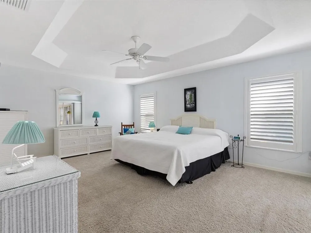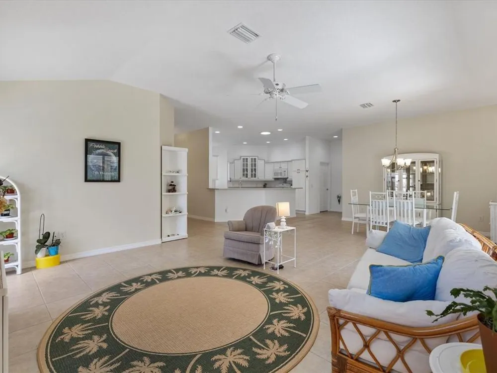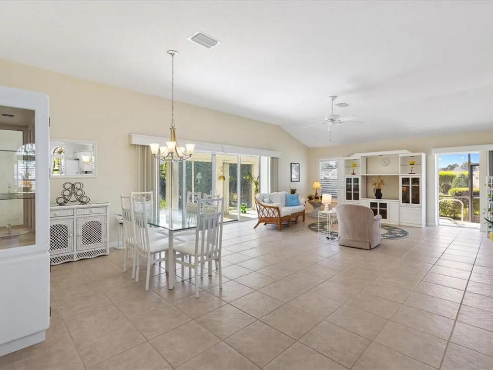 - Ceiling Fan(s), Eat-in Kitchen, Kitchen/Family Room Combo, Living/Dining Room, Open Floorplan, Main Level Primary, Solid Surface Counters, Split Bedrooms, Thermostat, Tray Ceiling(s), Vaulted Ceiling(s), Walk-In Closet(s)