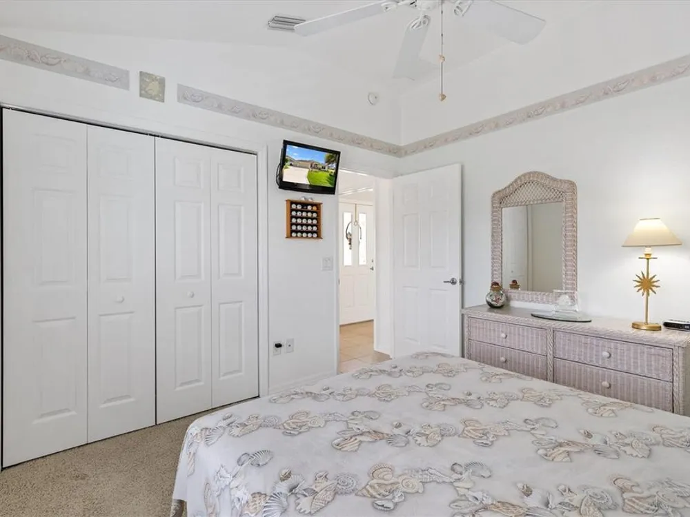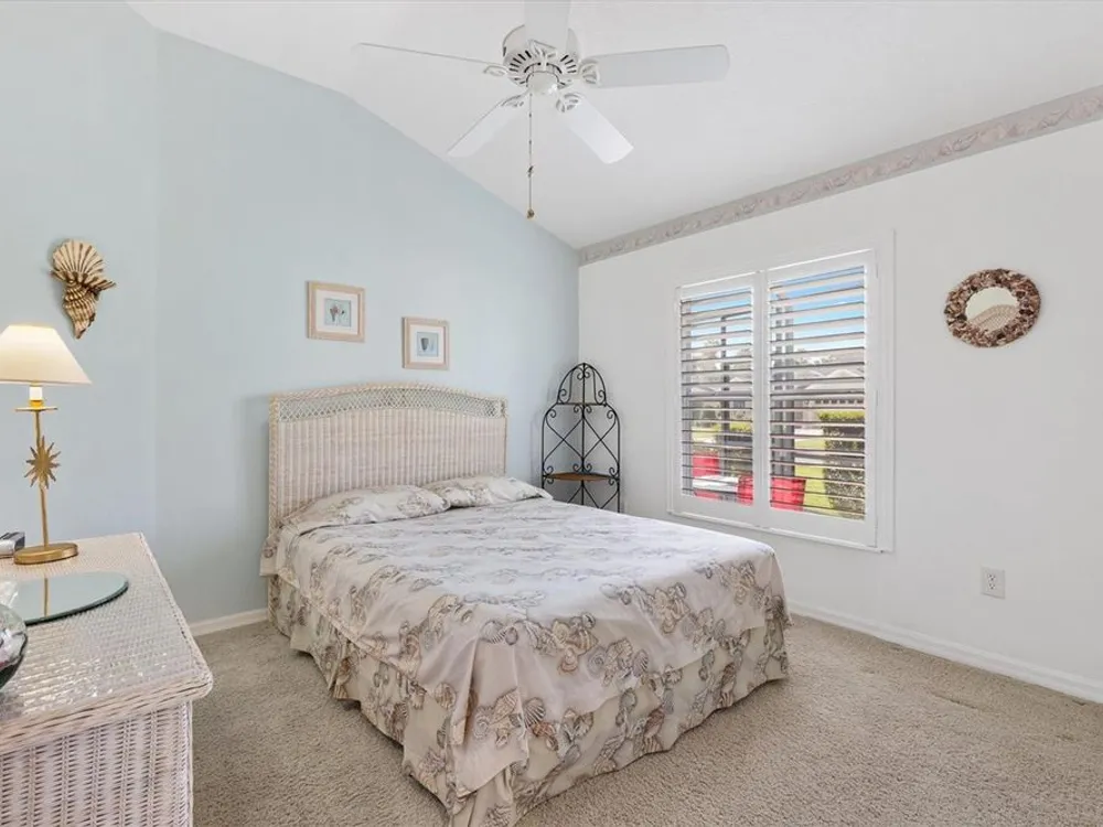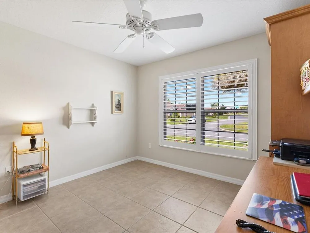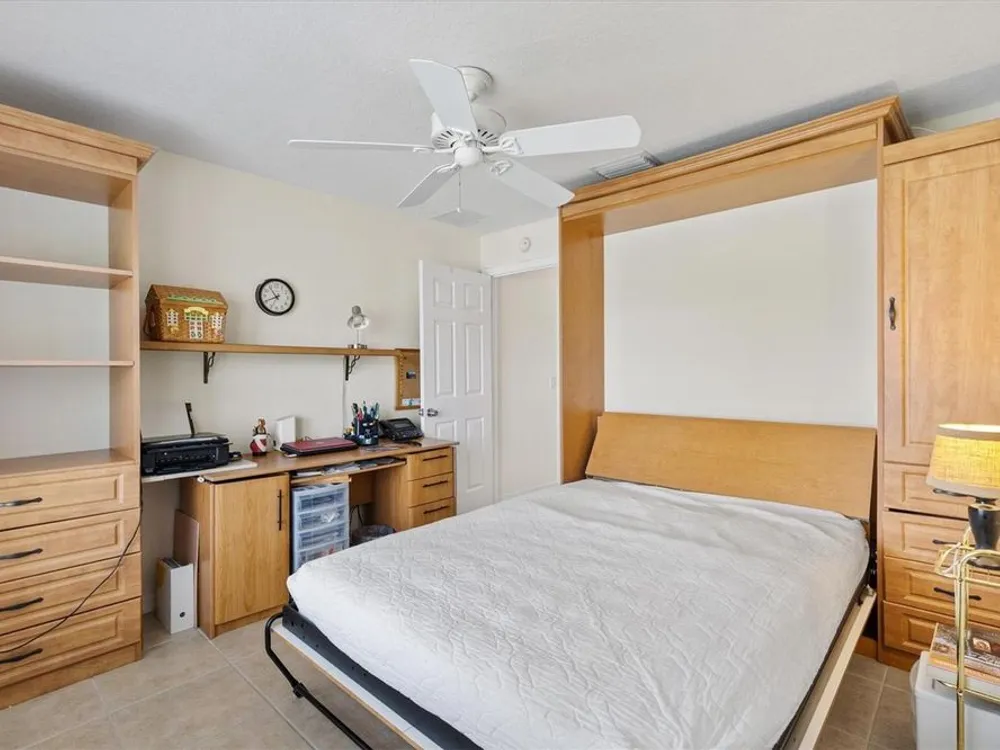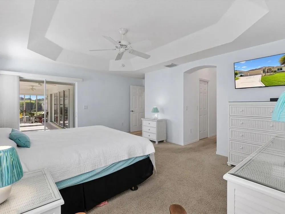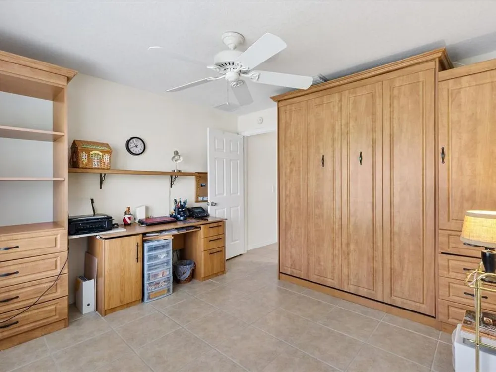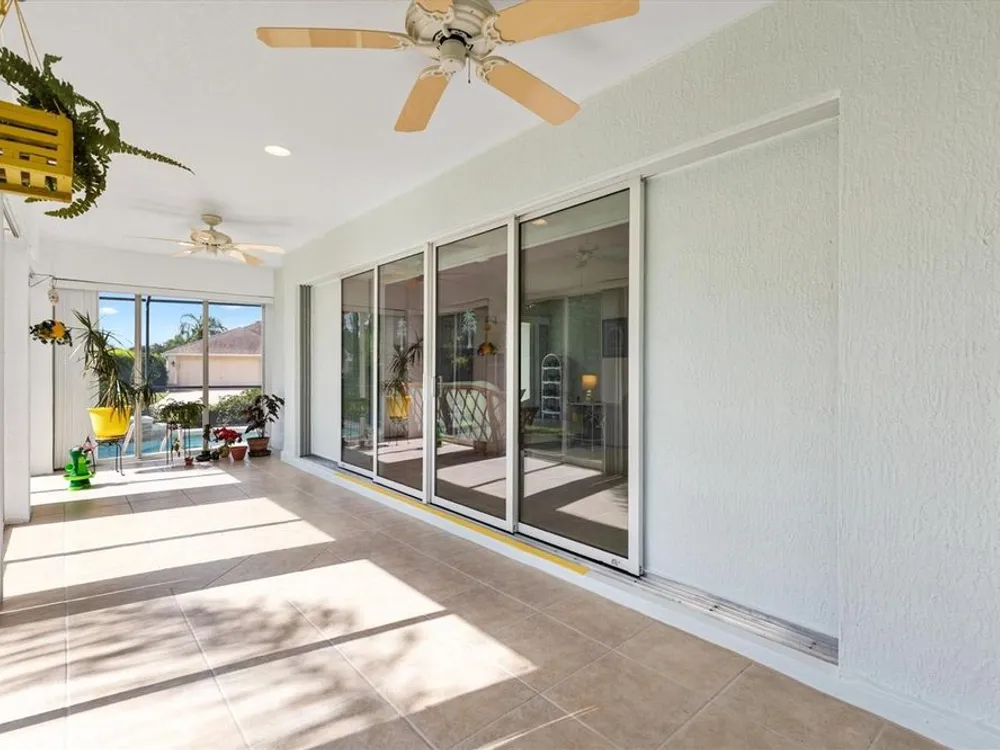 POOL & GOLF CART GARAGE ON CORNER LOT in the Village of Hemingway, this well kept 3 Bedroom 2 Bath Gardenia Pool Home with a golf cart garage is waiting for you to call home. Offered (WITH GOLF CART) partially furnished, it features plantation shutters, four solar tubes for abundant natural light, and thoughtful upgrades throughout. The kitchen is designed for both function and beauty, with light staggered cabinets, a glass-front display feature, pullout shelving in the lower cabinets, and Corian countertops. Enjoy casual meals in the breakfast nook, or entertain in the dining room, which is free of the column typical of the Gardenia model. The spacious Primary Suite boasts a tray ceiling, two walk-in closets, and a luxurious en-suite with a Roman shower and split vanities. The front bedroom includes a wall bed and built-in desk, making it ideal for extra guests and a home office. A guest bathroom separates the second and third bedrooms to complete the split floorplan guest suite and added privacy. The Living Room features a sliding door that lead to your private saltwater pool with screen enclosure. Double sliders open to enter the east-facing lanai in the rear of the home. Additional highlights include a 2024 roof, brand-new HVAC (July 2025), and proximity to Havana Country Club with championship golf and a popular restaurant. This home offers a sought-after blend of indoor and outdoor living in one of The Villages’ most convenient locations. Enjoy The Villages, FL, lifestyle with abundant amenities for you to attend golfing, shopping, dining, and enjoy many entertainment choices, club meetings, medical services, and more, all accessible by a golf cart.