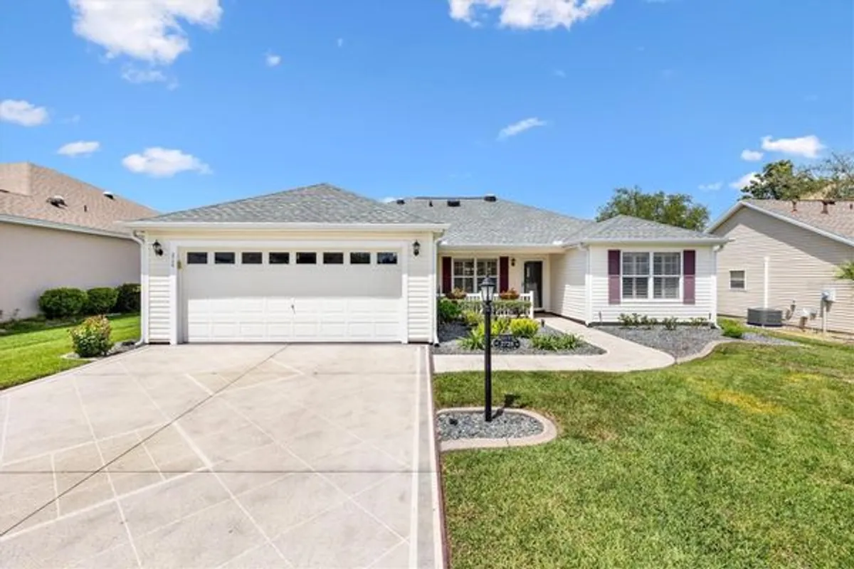 3/2 Bougainvillea Designer Home in the Village of Belvedere, perfectly positioned for both convenience and lifestyle. Pimplico Recreation Center and the Bonnybrook pool are less than a mile away. Close to Lake Sumter Landing, Spanish Springs Town Square, Laurel Manor Regional Recreation Center, and Belvedere Recreation Center. Just minutes from shopping and dining along County Road 466, you’ll enjoy easy access to everything you need. Surrounded by beautifully maintained executive golf courses, this location offers the perfect blend of recreation, relaxation, and the true Florida lifestyle. Roof 2024, HVAC 2014, HWH 2004. NO BOND! From the inviting covered front porch to the thoughtfully designed interior, this home offers an open and split floor plan enhanced by plantation shutters, ceiling fans, luxury Vinyl Plank flooring and abundant natural light. Solar tubes in the living room, kitchen, laundry room, master bath, and guest bath brighten the home beautifully throughout the day. The spacious kitchen is perfect for both everyday living and entertaining, featuring a center island with breakfast bar, stainless steel appliances, a 4-burner gas stove with griddle, and convenient pull-out shelving for easy organization. The expanded Florida Room—currently used as a craft room—offers incredible flexibility, complete with pull-down shades and direct access to the outdoor patio, creating a perfect indoor-outdoor flow. A phantom screen door adds comfort and versatility. The primary suite provides a relaxing retreat with a walk-in closet and an ensuite bath featuring a walk-in shower with bench and vanity with dedicated makeup desk. Guest bedrooms are comfortably carpeted and share a full bath with a glass-enclosed shower/tub combination. Additional highlights include a water softener, central vacuum, interior laundry room with a pantry closet and built-in shelving for extra storage and convenience. This well-appointed home blends thoughtful upgrades with practical living spaces, all in a great location close to activities, shopping, dining and all The Villages has to provide. Make your appointment to see it today!