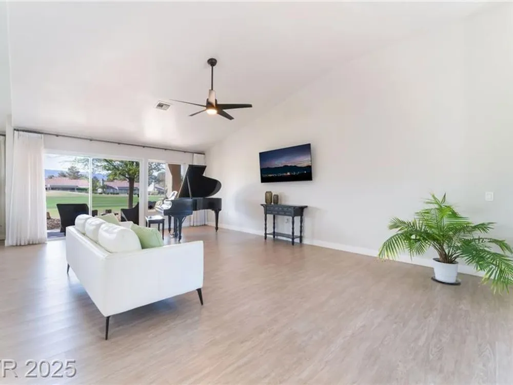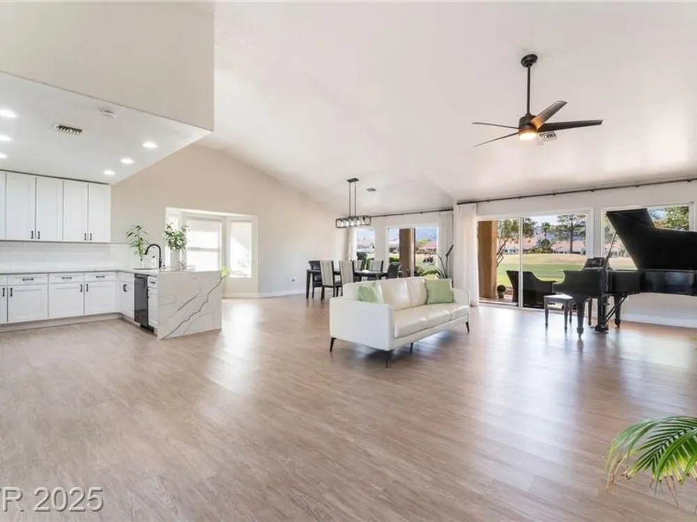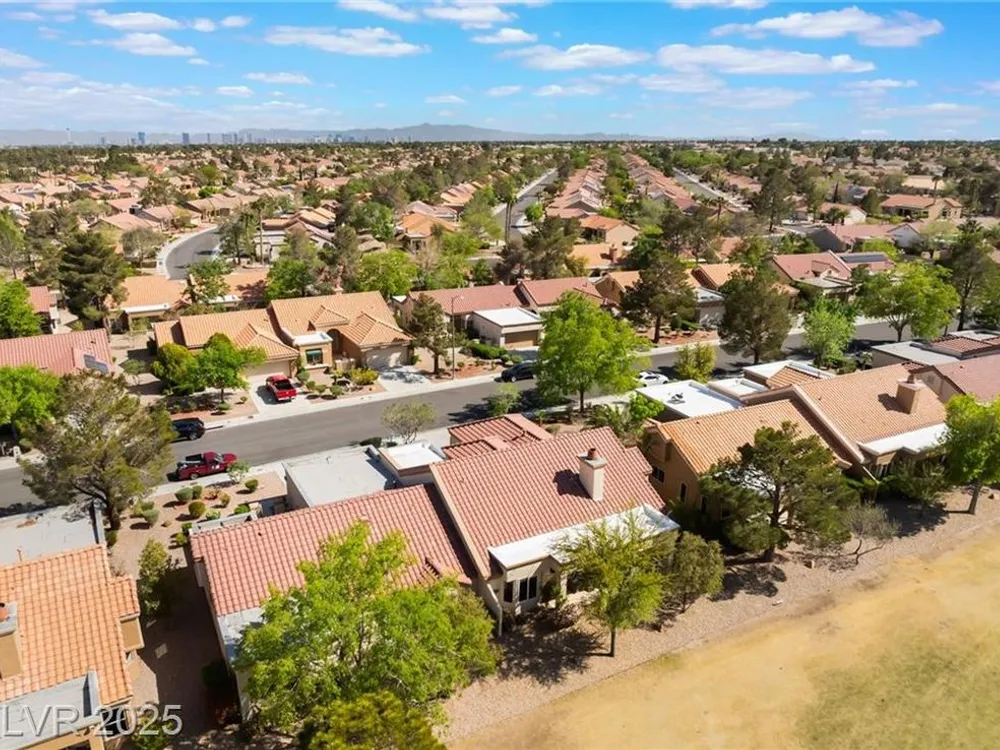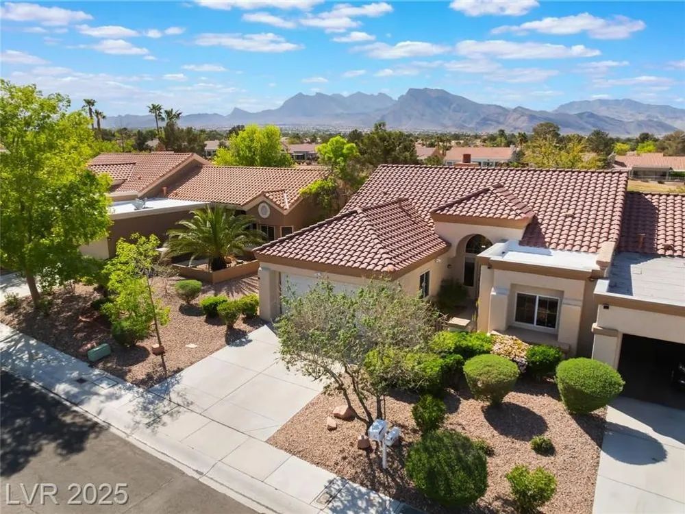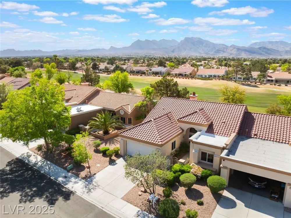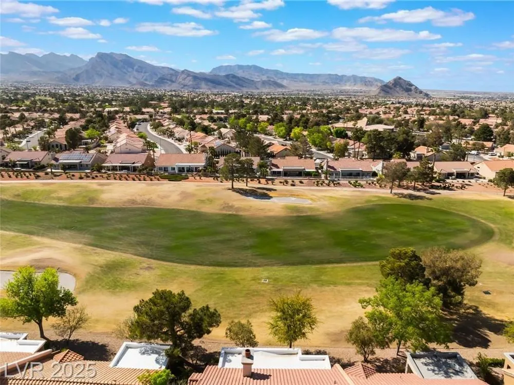 Enjoy the perfect blend of relaxation and recreation in this charming 2-bed, 2-bath townhome in Sun City Summerlin. Set right on the golf course, you'll love watching golfers and sunsets from your peaceful patio with stunning mountain views. The great room offers an open, airy feel—perfect for entertaining or unwinding. Neutral paint tones throughout create a warm, inviting space ready for your personal touch. Whether you enjoy the community's world-class amenities—golf, swimming, fitness, social clubs—or simply relaxing with a glass of wine as the sun goes down, this home offers the lifestyle you've been looking for in one of Las Vegas' most vibrant 55+ communities.