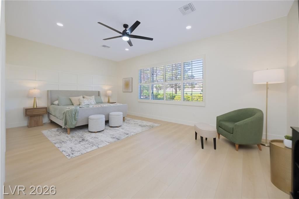 Welcome to this beautifully remodeled single-story home by Affiniti Homes, LLC in the heart of Sun City Summerlin, one of Las Vegas’s premier 55+ communities. Step inside to discover a bright, open floor plan filled with natural light and modern finishes. The kitchen features sleek quartz countertops, brand new cabinetry, and a spacious island that’s perfect for entertaining. The primary suite offers a peaceful retreat with an updated beautiful bathroom and generous closet space. The second and third bedrooms are ideal for guests or a home office. New Laminate flooring, new lighting, and designer touches throughout, this home feels and looks Brand New. Enjoy relaxing mornings and quiet evenings in the backyard designed for low maintenance outdoor living. Located on the golf course and just minutes from fitness centers, pools, dining, and endless social clubs — this is more than a home, it’s a lifestyle. Come see why everyone loves living in Sun City Summerlin!