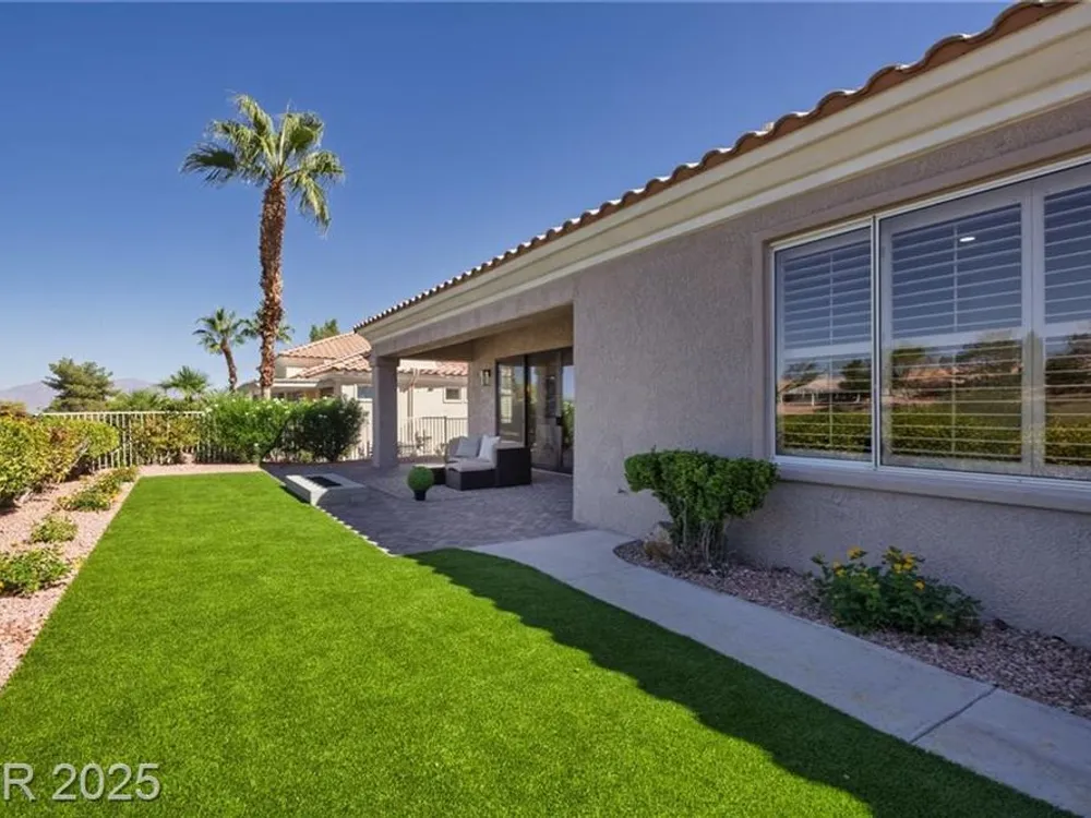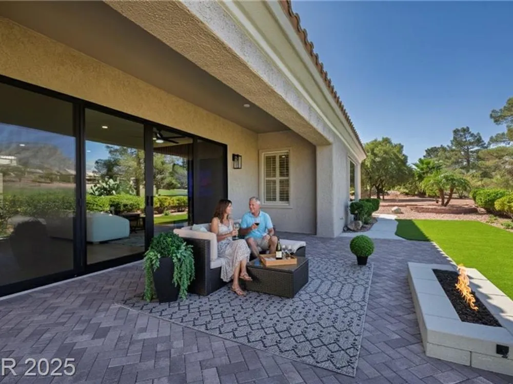 Golf-Front Luxury in Sun City Summerlin – Designer Upgrades + Mountain Views! Experience the pinnacle of active 55+ living, located on the 5th hole of Highland Falls Golf Course. Discover this stunning fully renovated 3-bedroom, 2-bath home presented to you by Affiniti Homes LLC. This home spans 2,102 sq ft and features designer finishes, updated kitchen with shaker cabinets, quartz counters, water proof laminate flooring throughout. Enjoy outdoor living with a paver patio and a fire-pit all with serene mountain and golf course views. Steps from community amenities including clubhouses, community centers with fitness, pools, tennis, and social clubs. This turnkey home is perfect for an active 55+ lifestyle. Ideal for any buyer seeking a luxurious, low-maintenance retreat. Don’t miss this rare opportunity to secure your dream home in a highly sought-after community. New A/C system 2024, New Water Heater 9/2025 and New Water Softener 9/2025.