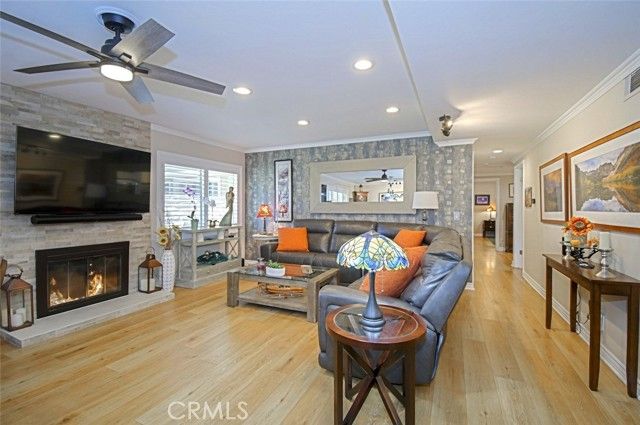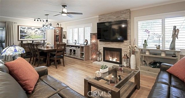 If you are looking for an upgraded and turnkey, move-in ready, single-story home, this is it! Located in a quiet location in the highly desirable age 55+ community of San Juan Hills West adjacent to San Juan Hills Golf Course. Pride of ownership shows throughout this spacious 3 bedroom, 2 bath end unit with upgrades galore! Features included a stacked stone fireplace, plantation shutters, crown molding, luxury laminate wood flooring, recessed lighting, accent track lighting, ceiling fans, air conditioning, and solar tube skylights. The remodeled kitchen boasts custom cabinets, a pantry, stunning granite counters, a large stainless-steel sink, a breakfast bar with pendant lights, and stainless-steel appliances. You'll enjoy relaxing and entertaining in the large covered and tiled patio that offers 2 skylights, built-in cabinetry, a convenient laundry closet with washer and dryer hook-ups and additional storage. The primary suite features both a walk-in closet and a mirrored wardrobe closet, an updated bathroom with a large custom tiled shower, a dual sink vanity with a quartz countertop, and a private patio with a spa! The 2nd bedroom offers a pull-down ladder for access to attic storage, and the 3rd bedroom has a sliding door to a patio overlooking a tranquil greenbelt. The remodeled guest bathroom features a custom tiled shower with 2 showerheads, and an upgraded vanity. This home has been meticulously updated with windows, fixtures, dimmers, energy efficient LED lighting, tankless water heater, re-piped with PEX, and the electrical panel and breakers have been replaced. The front yard has an inviting tiled walkway entry and beautiful landscaping including Meyer lemon, lime and orange trees. The 2-car garage is a short walk from the front entry and has an epoxy floor, a storage cabinet and shelves, and an overhead storage rack. San Juan Hills West features a sparkling swimming pool, a putting green, meandering walking paths, greenbelts and manicured landscaping. Ideal location adjacent to San Juan Hills Public Golf Course, near Windmill Park, hiking, biking and horse trails. Enjoy the San Juan Capistrano lifestyle with its fantastic restaurants, Mission San Juan Capistrano (known as "Jewel of the Missions"), the historic Los Rios District, and River Street Marketplace. Just minutes from Doheny State Beach and Dana Point Harbor. This move-in ready home offers exceptional value and affordability. This one won't last. See it for yourself!