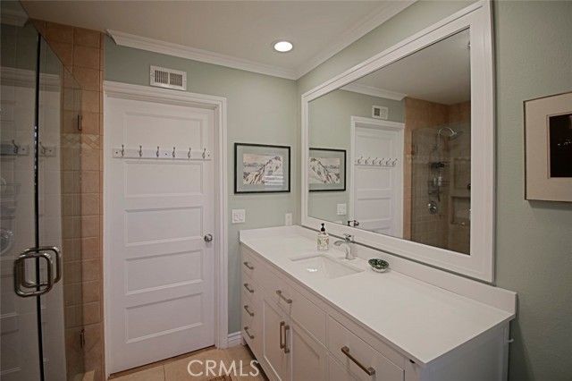 - Ceiling Fan(s), Crown Molding, Granite Counters, Open Floorplan, Pantry, Pull Down Attic Stairs, Quartz Countertops, Recessed Lighting, Storage, Track Lighting, All Bedrooms on Lower Level, Attic, Den, Entrance Foyer, Laundry Facility, Living Room, Main Level Primary, Primary Bathroom, Primary Suite, Home Office, Walk-In Closet(s)