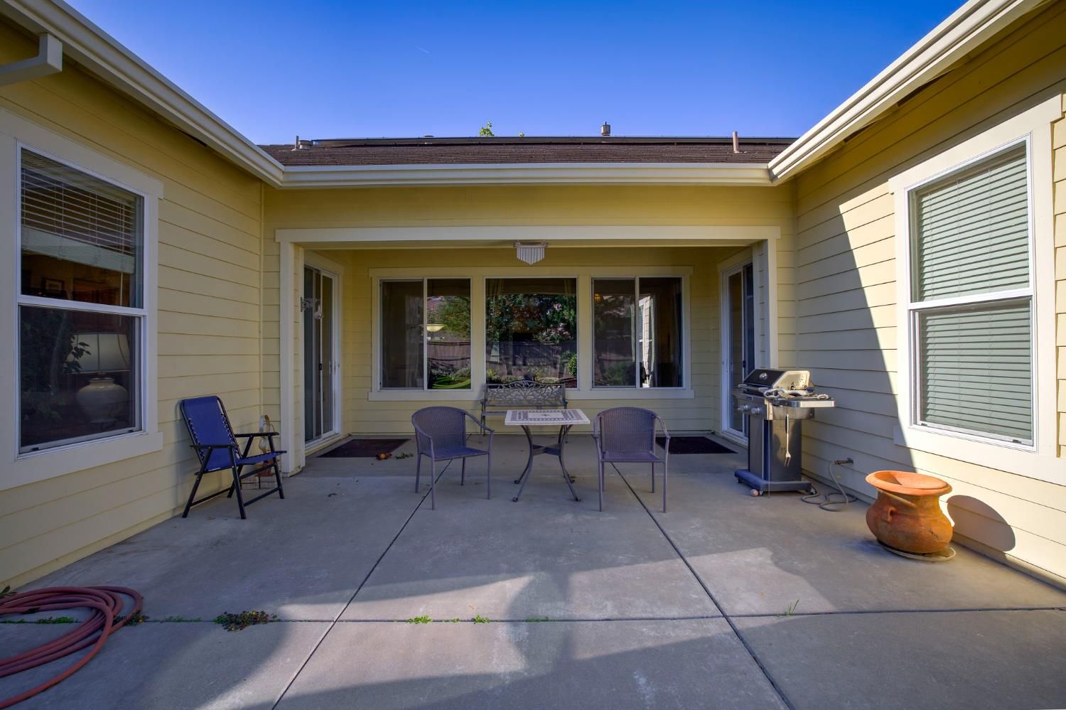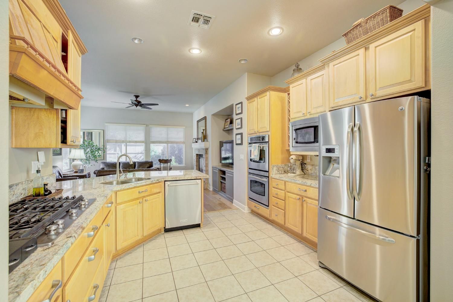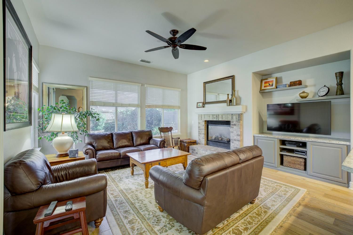 The residence at 2726 Heritage Park Ln, Sacramento, CA, presents an attractive property in great condition, ready to welcome you home. Imagine cozy evenings spent in the living room, the fireplace casting a warm glow across the open floor plan, creating an inviting atmosphere for relaxation and connection. The kitchen stands as a culinary haven, featuring stone countertops that provide ample space for meal preparation, while the double oven stands ready to handle feasts both large and small, and the custom range hood makes a stylish statement. The kitchen bar and kitchen peninsula offer additional seating and counter space, perfect for casual dining or entertaining guests. The bedroom offers a private retreat with its ensuite bathroom, providing convenience and comfort, while the crown molding adds a touch of elegance. The bathroom features a double vanity, offering plenty of space for morning routines. This residence also includes the convenience of a laundry room, making household chores a breeze, while the fenced backyard and patio offer a private outdoor space for relaxation and recreation. This Sacramento residence offers a blend of comfort and style, making it a place you'll be delighted to call your own. New HVAC, engineered flooring, solar owned.