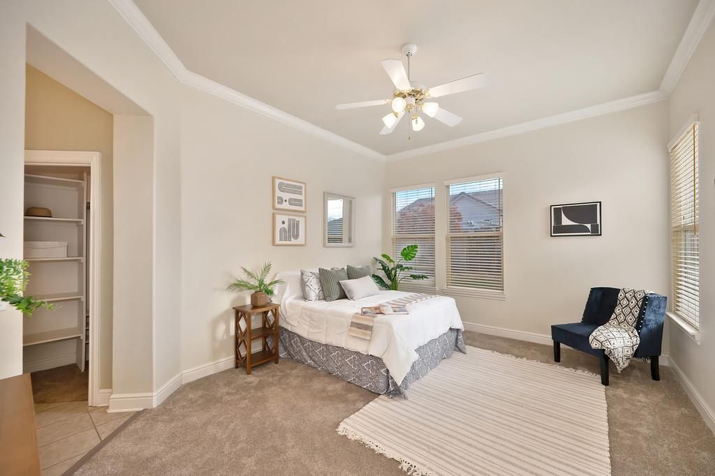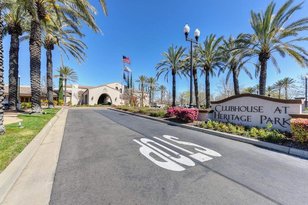 Elegant turnkey 2 bed/2 bath in 2005 sqft light filled home w/ a dedicated office/3rd bdrm (Cannes Model) in Sacramento's premiere active 55+ gated community of Heritage Park. The front patio and foyer opens to a large formal living room w/ dining area and gorgeous views of a private backyard oasis. The remodeled gourmet kitchen has granite counters, breakfast bar, stainless steel appliances and dining area w/ pantry for abundant storage. The open concept living area offers a spacious family room w/ gas fireplace, and patio access. The main bdrm w/ en-suite bath is a private retreat w/ dual sinks and walk-in closet. Updates include wide plank flooring in the living areas, crown molding, paint, carpet and owned solar! Enjoy a professionally landscaped low maintenance yard w/ artificial turf, raised planting beds, fruit trees, storage shed and covered patio for relaxing and al-fresco dining. The laundry room and 2.5 car garage w/ extra large workshop space provide ample storage. Amenities include a 25,000 sqft clubhouse w/ indoor/outdoor pool, pub restaurant, ballroom, library, fitness center, aerobics room and 5 one-acre parks. Enjoy activities like gardening, biking, walking, water volleyball, bocce ball, tennis, pickleball and over 75 active clubs. Welcome to resort living.