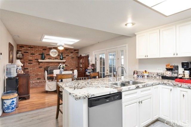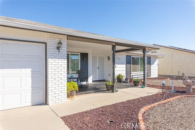 Step into resort-style living in this charming 55+ Menifee community home! Boasting a welcoming two-door front entry with a porch, this single-story residence features 3 spacious bedrooms and 2 bathrooms, all set on a huge lot perfect for enjoying the outdoors. The interior showcases a seamless blend of LVP and wood flooring throughout, with ceiling fans in every room and abundant natural light that highlights the bright, airy spaces. The kitchen is a chef’s delight, offering granite countertops, all-new cabinetry with ample storage, stainless steel appliances, and convenient bar seating ideal for entertaining or casual dining. Gather around the real wood-burning fireplace in the family room, or step into the fully finished sunroom (not included in square footage) for a relaxing retreat that opens onto the backyard oasis. Modern comfort is ensured with a newer AC and furnace. Both the front and backyard have been thoughtfully designed for low-maintenance, drought-tolerant landscaping, complemented by a shed and covered patio for convenience and outdoor enjoyment. Residents of the Sun City Civic Association (SCCA) enjoy unparalleled amenities and a vibrant social scene. From indoor tournament shuffleboard and a fully equipped fitness center to horseshoe pits, two sparkling swimming pools, a spa, lawn bowling, and a variety of social clubs and activities, there’s something for everyone to enjoy. Whether you’re looking to stay active, socialize, or simply relax in a beautiful community setting, this home offers the perfect lifestyle. Don’t miss this rare opportunity to live in a highly sought-after Menifee 55+ community, combining comfort, style, and an array of amenities to make every day feel like a vacation. Schedule your private tour today and experience the charm, convenience, and luxury this move-in ready home has to offer.