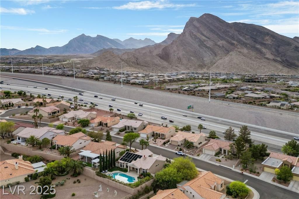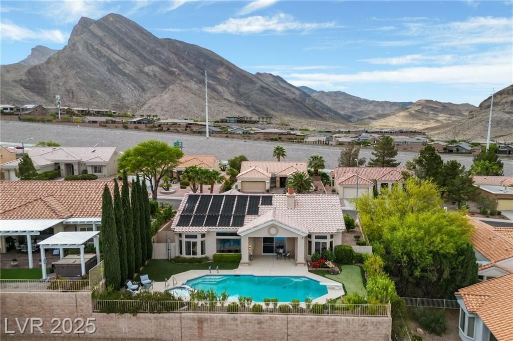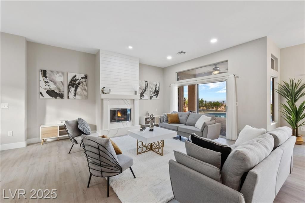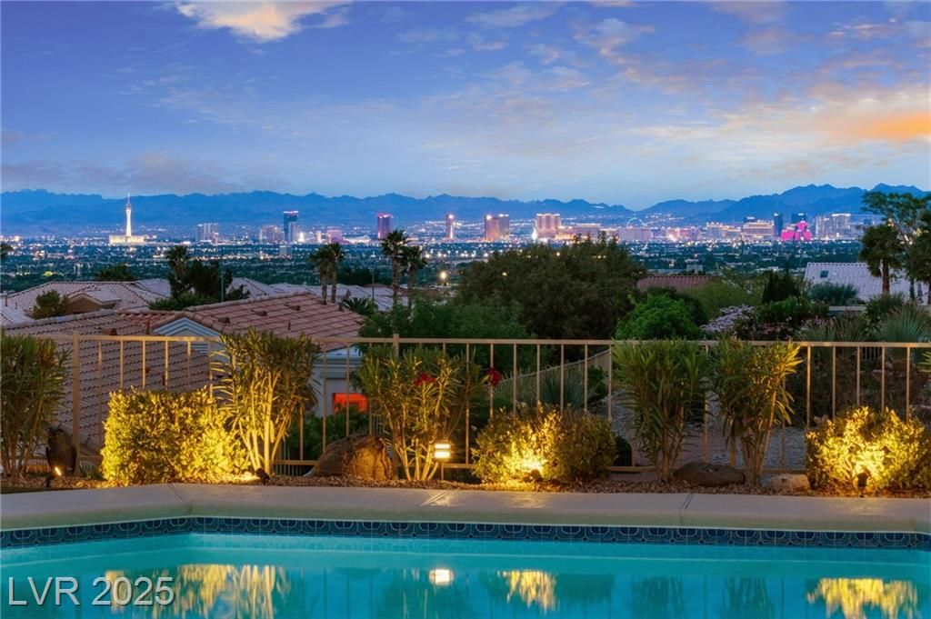 Stunning 1 story home located in the vibrant Sun City Summerlin 55+ community that sits high above with a sweeping 180-degree view of the valley & Strip. The property boasts a solar heated pool & shower, putting green and cover patio, perfect for enjoying a swim while taking in the unobstructed breathtaking Strip view. The home has been upgraded with modern features & finishes, ensuring a comfortable & stylish living experience. Step inside to find an open concept floor plan bathed with ambient natural light, cozy fireplace & luxury flooring that highlights the home's timeless appeal. This home features a designer's kitchen, quartz countertops, white shaker cabinets, stainless steel appliances, updated bathrooms and plenty of storage spaces. It especially showcases large windows that seamlessly blend indoor & outdoor living. This residence is ideal for those seeking a serene & active environment that combines conveniences, elegance & sustainability. **OWNER FINANCE @ 4.5%**