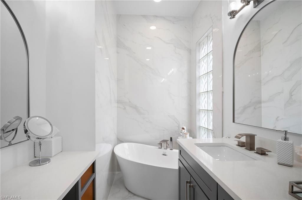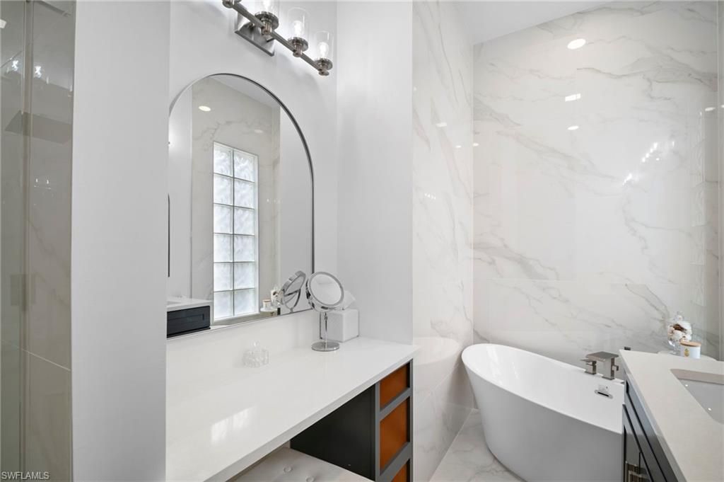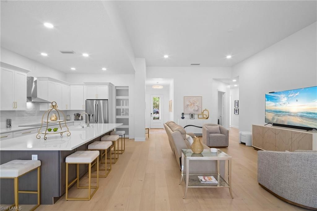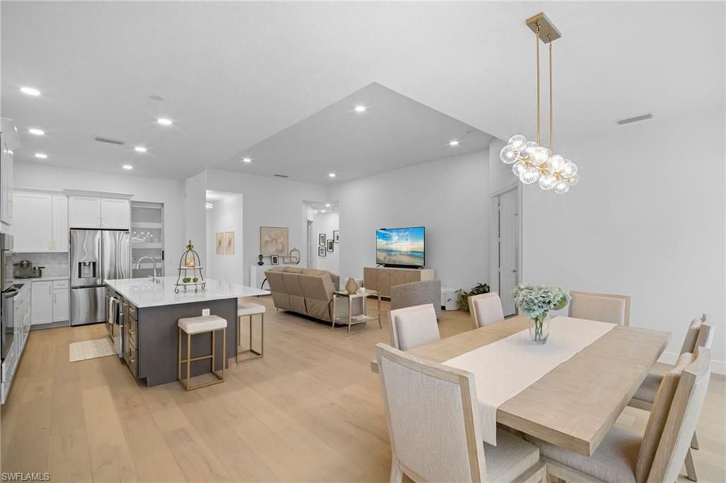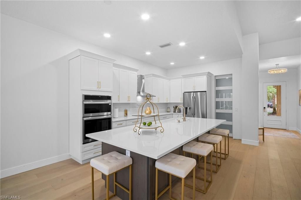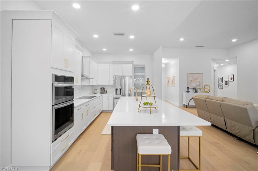Experience the Reimagined Oakmont: A Masterpiece of Coastal Modern LuxuryStep into an Oakmont model unlike any other in Island Walk. This residence has been meticulously transformed, blending sophisticated design with effortless coastal living. From the moment you enter, the all-new engineered hardwood floors and designer lighting guide you into a home where no detail was spared.The heart of this home is the chef-inspired kitchen, featuring a 10-foot quartz island, sleek induction cooktop, and a massive granite composite sink. Whether hosting a dinner party with the double ovens or organizing in the unbelievable walk-in pantry, this space is as functional as it is stunning.The primary suite is a true sanctuary, boasting a completely redesigned bath with a private water closet and a freestanding soaking tub for a spa-like experience. Even the "work" spaces are elevated—the laundry room is a designer’s dream with premium stacked appliances and integrated storage.Outside, your private lanai retreat awaits, offering a serene escape just minutes from the world-class amenities of the Island Walk Town Center. From resort pools and pickleball to the on-site restaurant and salon, this isn't just a home—it's the lifestyle you’ve been waiting for. AC replaced 2023