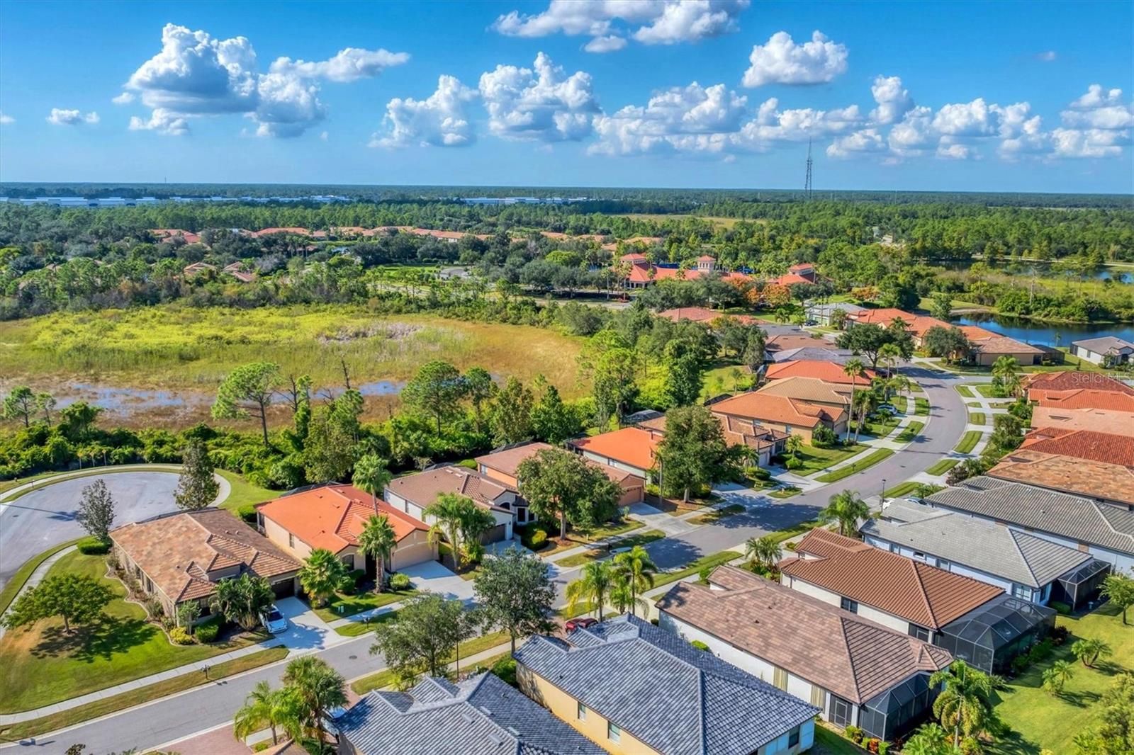 If you are a discriminating buyer looking for an absolute "10", look no further. Pride in ownership shines throughout this better-than-new 2-bedroom plus den home in Cypress Falls at The Woodlands, North Port’s premier Del Webb 55+ communities. A BRAND NEW ROOF (2025) and a NEW AC in 2021 adds peace of mind from day one. Step inside to a bright, open layout that feels instantly welcoming. The recently updated kitchen boasts new rich wood cabinetry, new granite countertops, new stainless steel appliances, a cozy breakfast nook, and a raised bar that frames the space while adding casual seating. Just beyond, the dining and living rooms open up as the heart of the home—spacious yet inviting, perfect for casual dinners, relaxed evenings, or hosting holidays with those who matter most. To the left of the entry, a hallway leads to the laundry room and a full guest bath. A versatile den nearby makes an ideal office, library, or hobby room, and can easily be converted to a 3rd bedroom should you have the need. The second bedroom sits close at hand for visiting family or guests. The primary suite is privately positioned toward the rear of the home, offering quiet separation with a walk-in closet and an en suite bathroom featuring dual vanities and a spacious walk-in shower. At the back of the home, sliding glass doors from the living room open to a large, extended, screened lanai—partially covered for shade and set against open green views with no rear neighbors. It’s an easy place to start the day with coffee or wind down in the evening breeze. Recently painted inside and out, there is nothing for you to do other than enjoy! Life at Cypress Falls feels resort-like every day. Residents enjoy two spectacular pools—a resort-style pool with a heated spa plus a separate resistance pool that can be used for low-impact exercise or a gentle lazy-river float—along with tennis, pickleball, bocce, and horseshoe courts. Inside the clubhouse, you’ll find a café, fitness center, library, billiards room, arts & crafts studio, and a social hall for gatherings and events. A full-time Lifestyle Director partners with residents to curate a full calendar—think fitness classes, club meetups, dances, day trips, workshops, and more—so there’s always something worth showing up for. With maintenance-free living, cable and internet included, and every amenity within reach, this home offers the perfect gateway to an active, welcoming community where life feels vibrant, easy, and full of possibility.