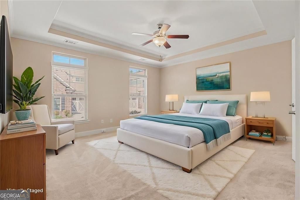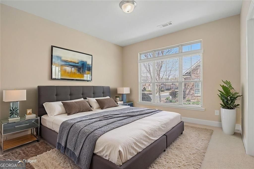 Welcome to Wellstone. A friendly Active Adult Community-located in the center of many conveniences: Shopping, Restaurants and a highly rated Medical Community including Northside Forsyth Hospital and Medical Campus. This cottage style Somerset floor plan home is unique as it is the only unit of this style with a Sunroom/library! The primary ensuite and a guest bedroom and bath are located on the main and a second guest room and bath upstairs. Convenient Storage access a walk-in storage room off the upstairs guest room closet. Entire interior has been freshly painted and is move-in ready! The Community has one of the largest clubhouses in this area. The expansive main floor features a full kitchen for entertaining, (lots of community activities) game tables for card playing, and a large outdoor pool, hot tub and large pool deck. Take an elevator up to the second floor and you will be amazed at the large work out facility, billiard room and library! There is also a Community Garden near the Community Mail Kiosk. A must-see!