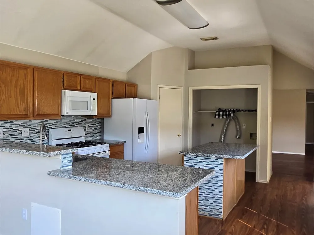 - Dishwasher, Free-Standing Range, Disposal, Gas Oven, Gas Range, Microwave, Oven, Refrigerator