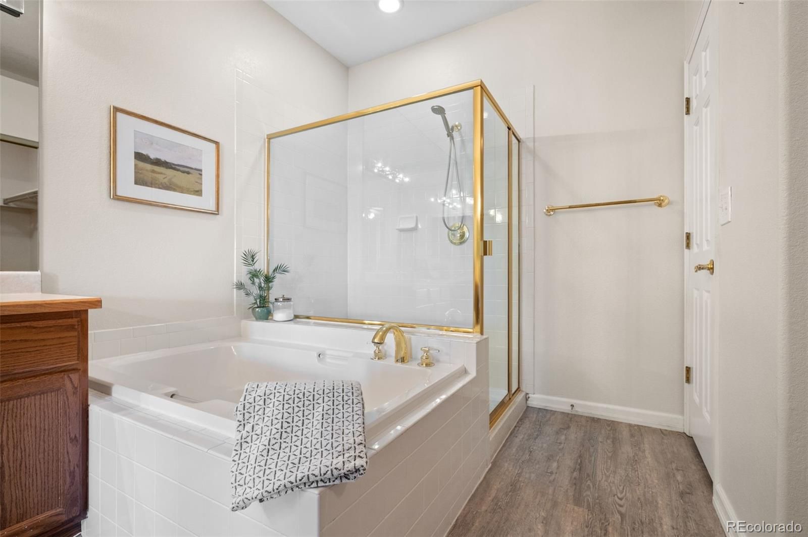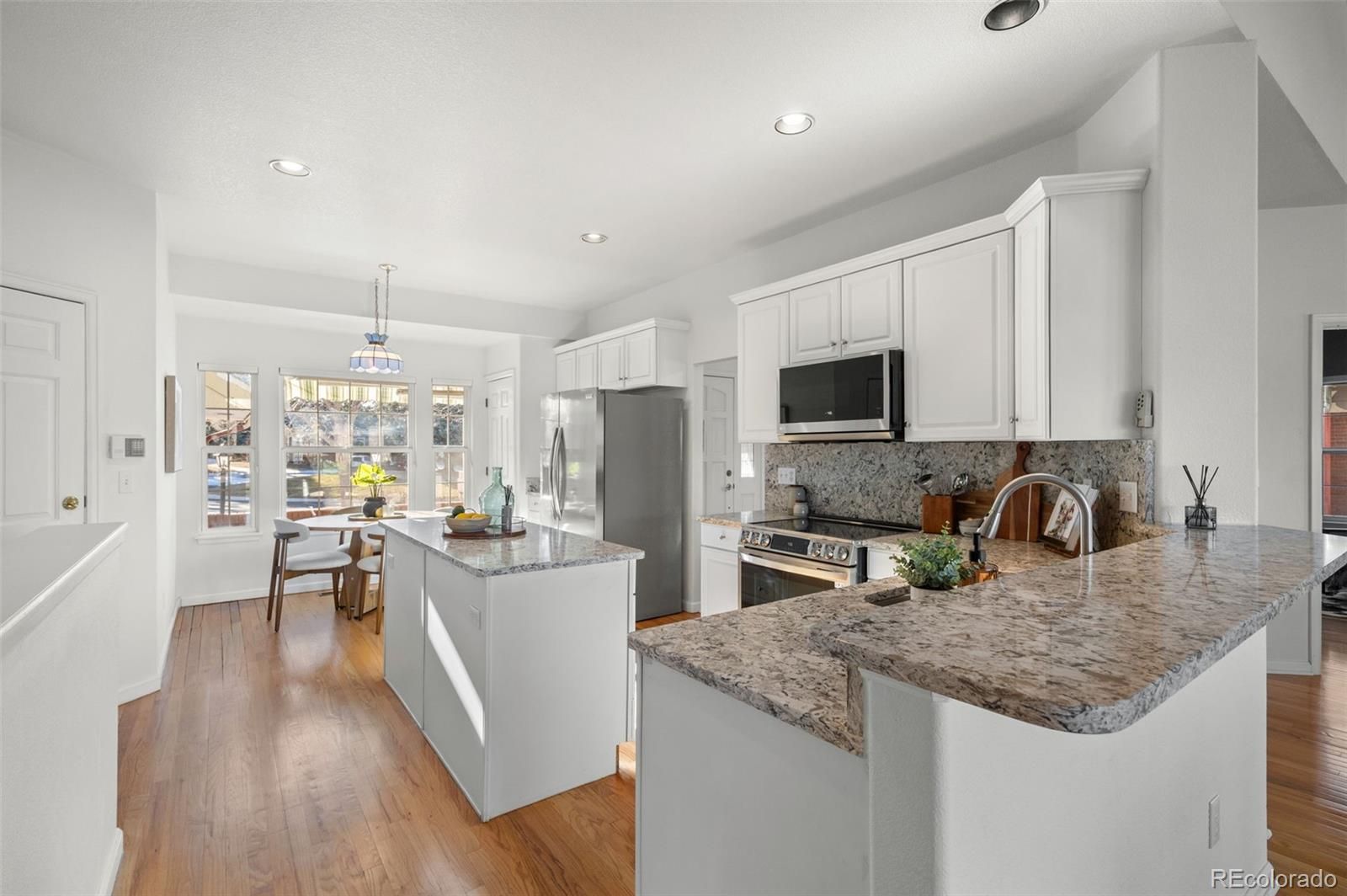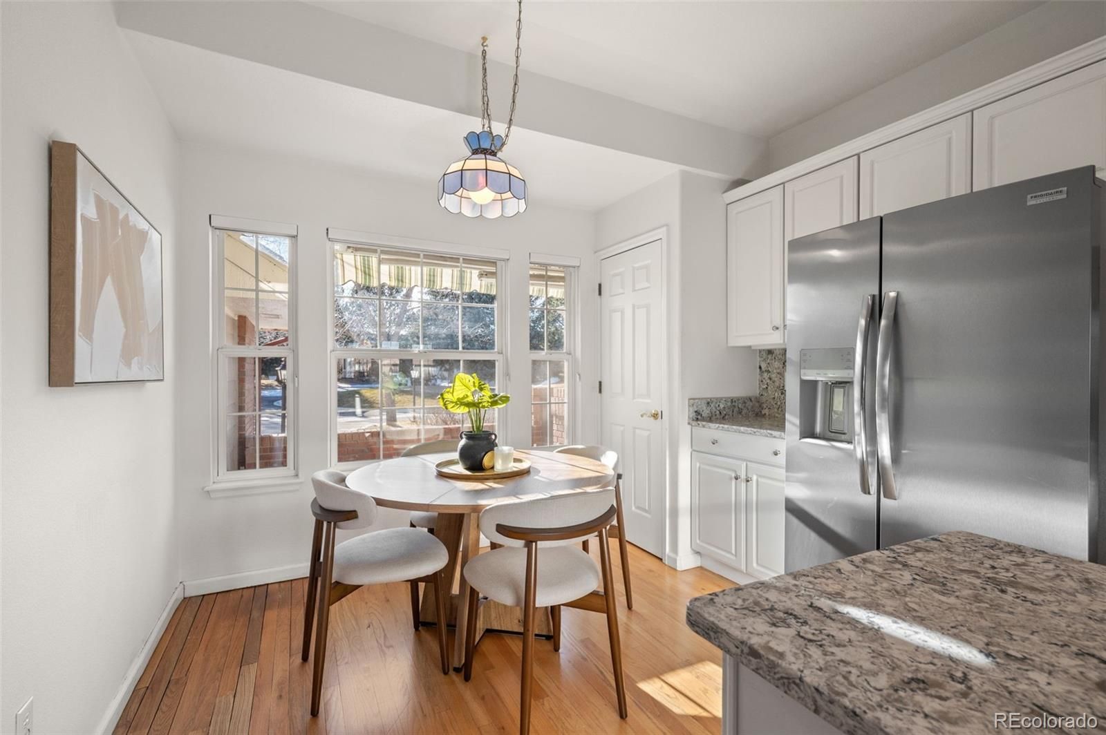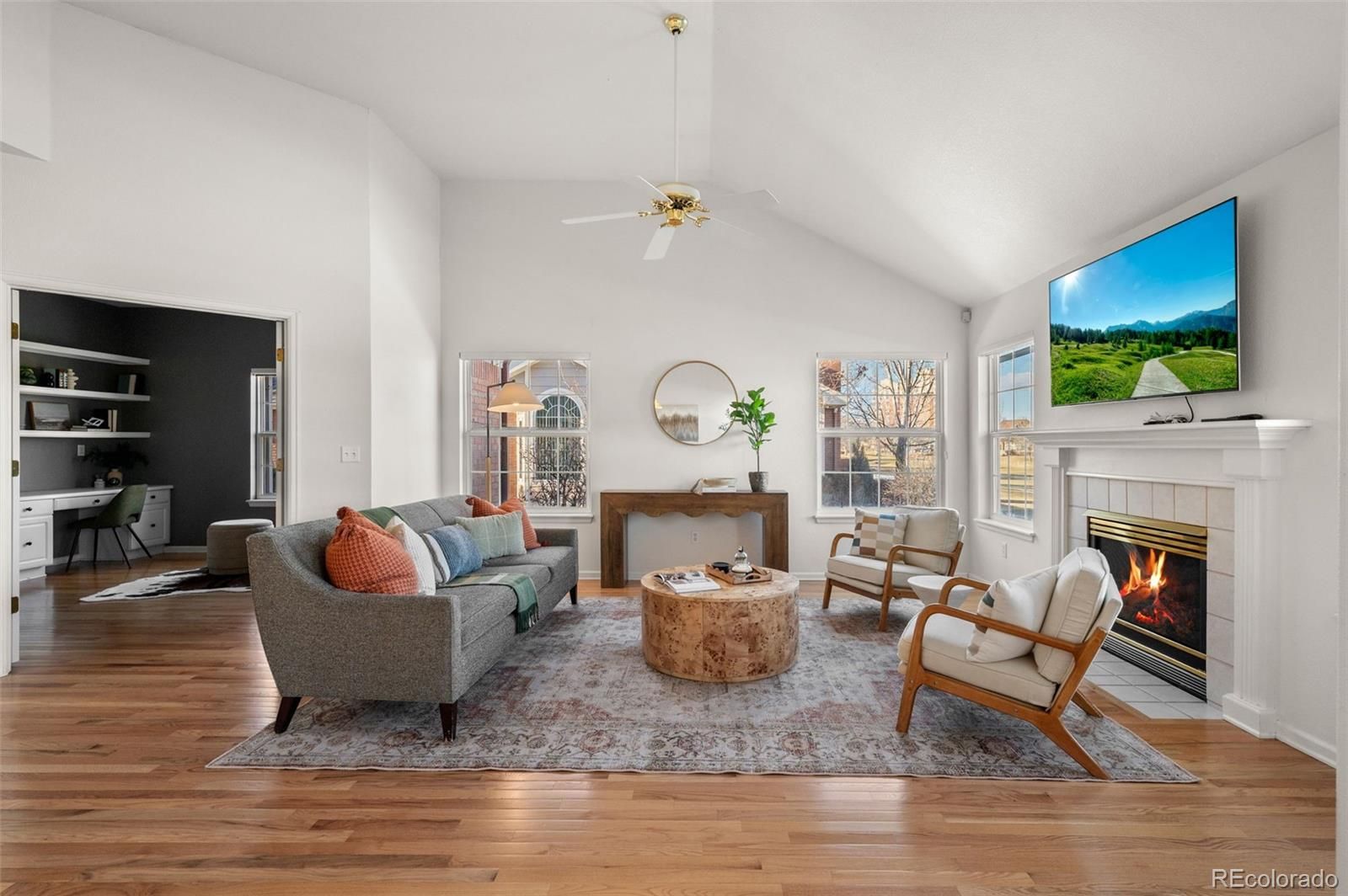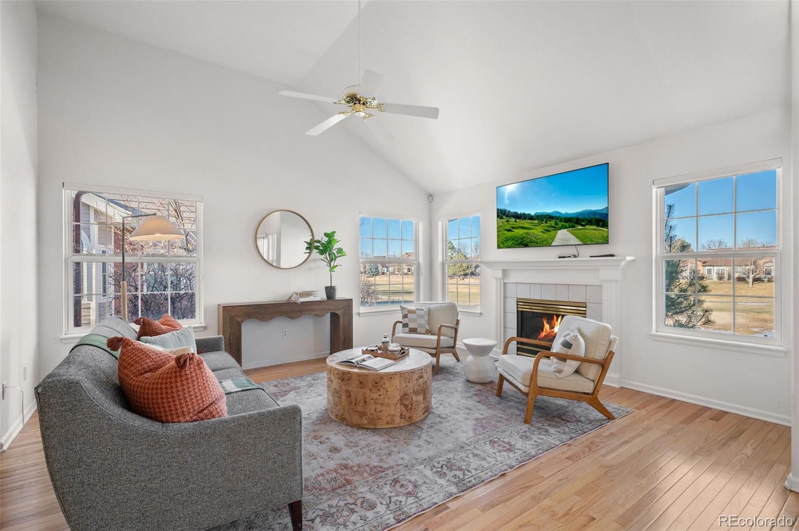 Beautiful ranch-style home in Littleton's highly sought after Riverwalk Community! This charming home backs directly onto the Littleton Golf Course, perfect for the golf and outdoor enthusiasts. Walk inside to discover beautiful hardwood floors, vaulted ceilings, and an abundance of natural light that fills the open-concept living space. On chilly Colorado days, cozy up next to the gas fireplace and enjoy the peaceful ambiance. The kitchen is a chef’s dream, featuring granite countertops, a brand-new smart induction stove, new Frigidaire refrigerator, and new microwave, and dishwasher. With an open layout and a dining area that overlooks the golf course, this home is ideal for entertaining family and friends. The spacious primary suite offers a walk-in closet and a luxurious five-piece en-suite bathroom complete with a jacuzzi tub. A dedicated home office features french doors, built-in shelving, and a functional desk space—perfect for remote work or creative pursuits. The second bedroom includes newer carpeting and a private full bath, making it an ideal guest retreat. Downstairs, the finished basement provides a flexible space that can be customized to suit your needs—whether it’s a second living area, craft room, or potential expansion into the unfinished portion. Enjoy LOW-maintenance living in a community that features a stunning clubhouse with a spa, outdoor pool, sauna, and hot tub. Never have to worry about maintaining a yard, or shoveling your snow. All of this, and just a short walk or bike ride to downtown Littleton, the Platte River Trail, and a wide variety of restaurants and shops. Come see this one of a kind home for yourself.