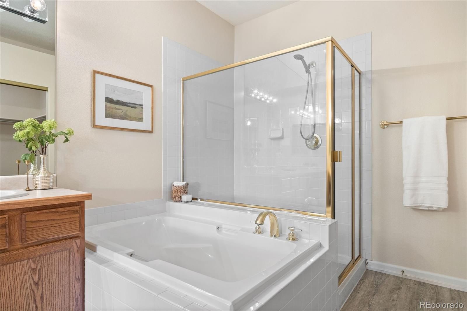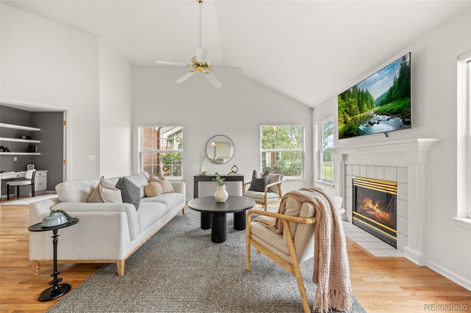 BACK ON MARKET through no fault of the home or sellers!! Beautiful ranch-style home in Littleton's highly sought after Riverwalk Community! This charming home backs directly onto the Littleton Golf Course, perfect for the golf and outdoor enthusiasts. Walk inside to discover beautiful hardwood floors, vaulted ceilings, and an abundance of natural light that fills the open-concept living space. On chilly Colorado days, cozy up next to the gas fireplace and enjoy the peaceful ambiance. The kitchen is a chef’s dream, featuring granite countertops, a brand-new smart induction stove, new Frigidaire refrigerator, and new microwave, and dishwasher. With an open layout and a dining area that overlooks the golf course, this home is ideal for entertaining family and friends. The spacious primary suite offers a walk-in closet and a luxurious five-piece en-suite bathroom complete with a jacuzzi tub. A dedicated home office features french doors, built-in shelving, and a functional desk space—perfect for remote work or creative pursuits. The second bedroom includes newer carpeting and a private full bath, making it an ideal guest retreat. Downstairs, the finished basement provides a flexible space that can be customized to suit your needs—whether it’s a second living area, craft room, or potential expansion into the unfinished portion. Enjoy LOW-maintenance living in a community that features a stunning clubhouse with a spa, outdoor pool, sauna, and hot tub. All of this, and just a short walk or bike ride to downtown Littleton, the Platte River Trail, and a wide variety of restaurants and shops. Come see this one of a kind home for yourself.