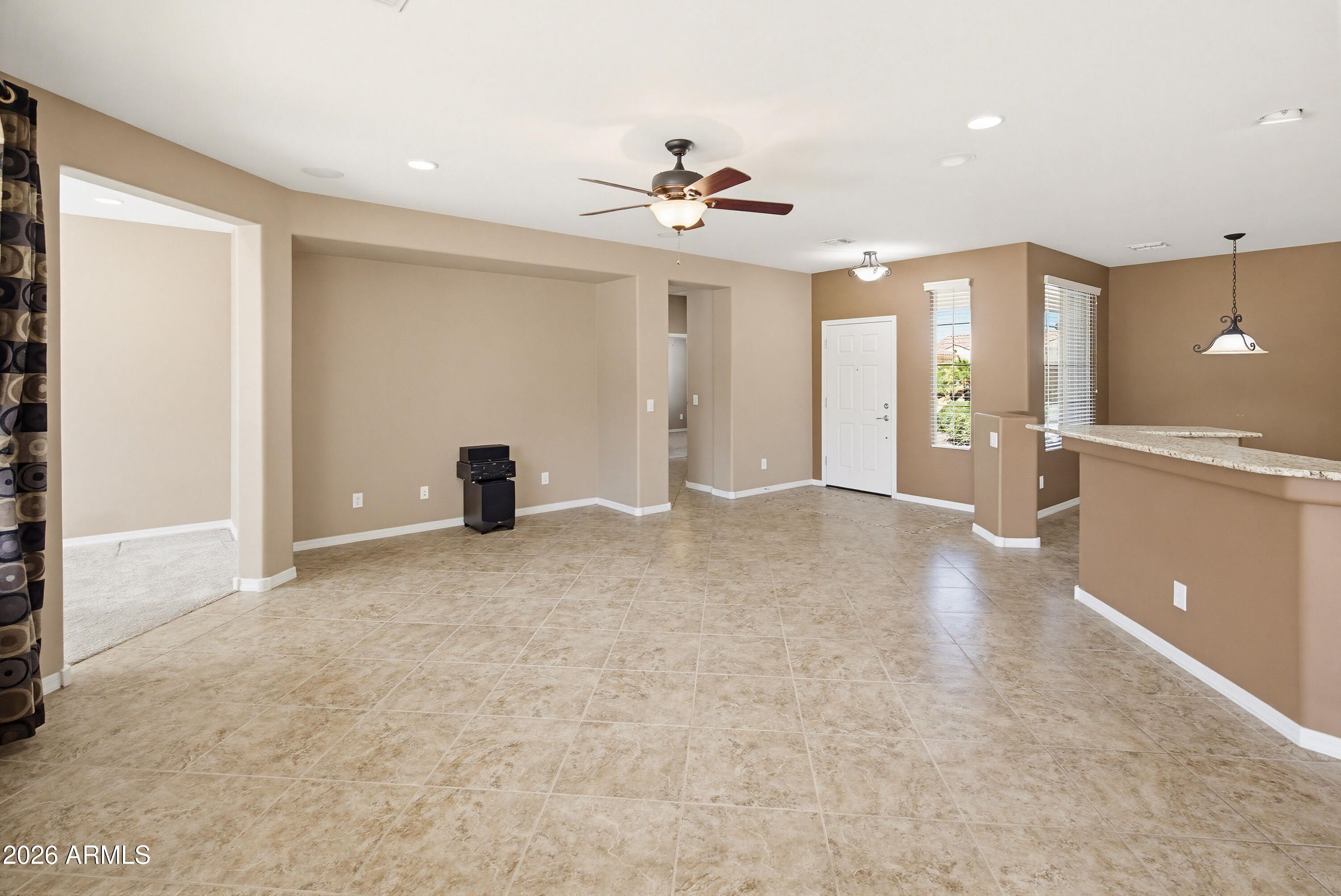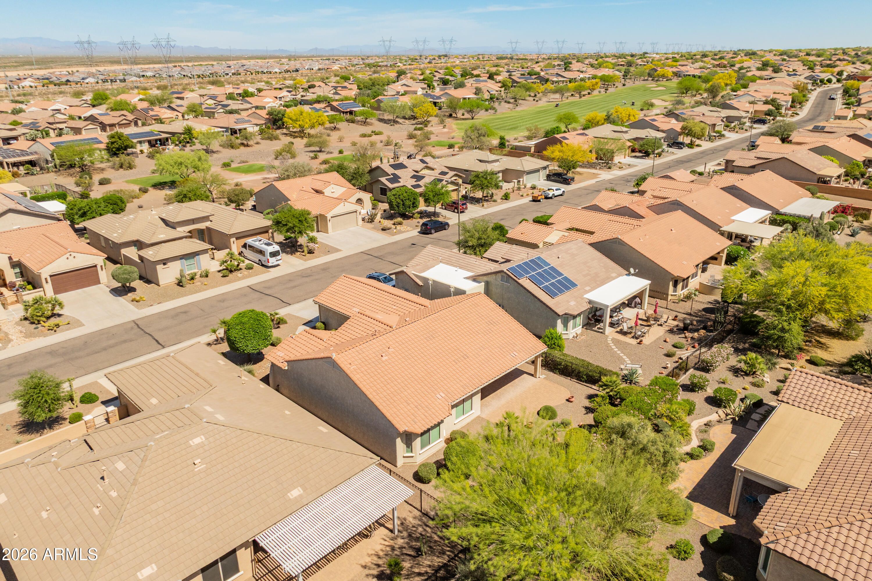 Pristine Jamboree floor plan in the heart of Sun City Festival! This beautifully maintained 2-bedroom, 2-bath home offers the perfect blend of comfort, style & location. You'll appreciate the additional den/office & charming dining nook, along with newly upgraded bathrooms, newer HVAC system & spacious 4' extended garage with extra room for storage, golf cart parking or hobbies. The open layout is warm & inviting, ideal for everyday living or seasonal enjoyment. Step outside to the extended paver back patio, a perfect spot to relax, entertain & enjoy Arizona's beautiful weather, complete with mature, professionally designed landscape & desirable north/south exposure. All this just moments from the Sage Center, golf, dining, recreation & everything this vibrant community has to offer.