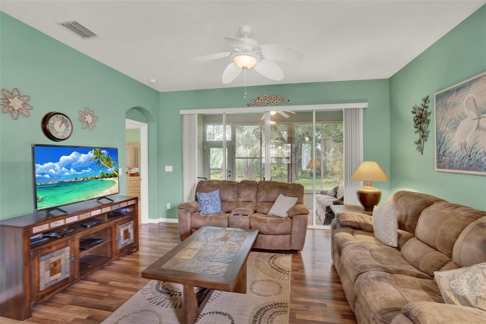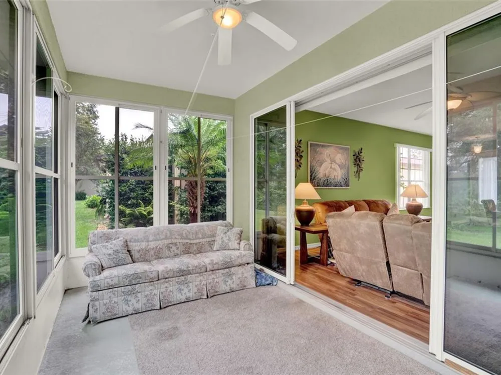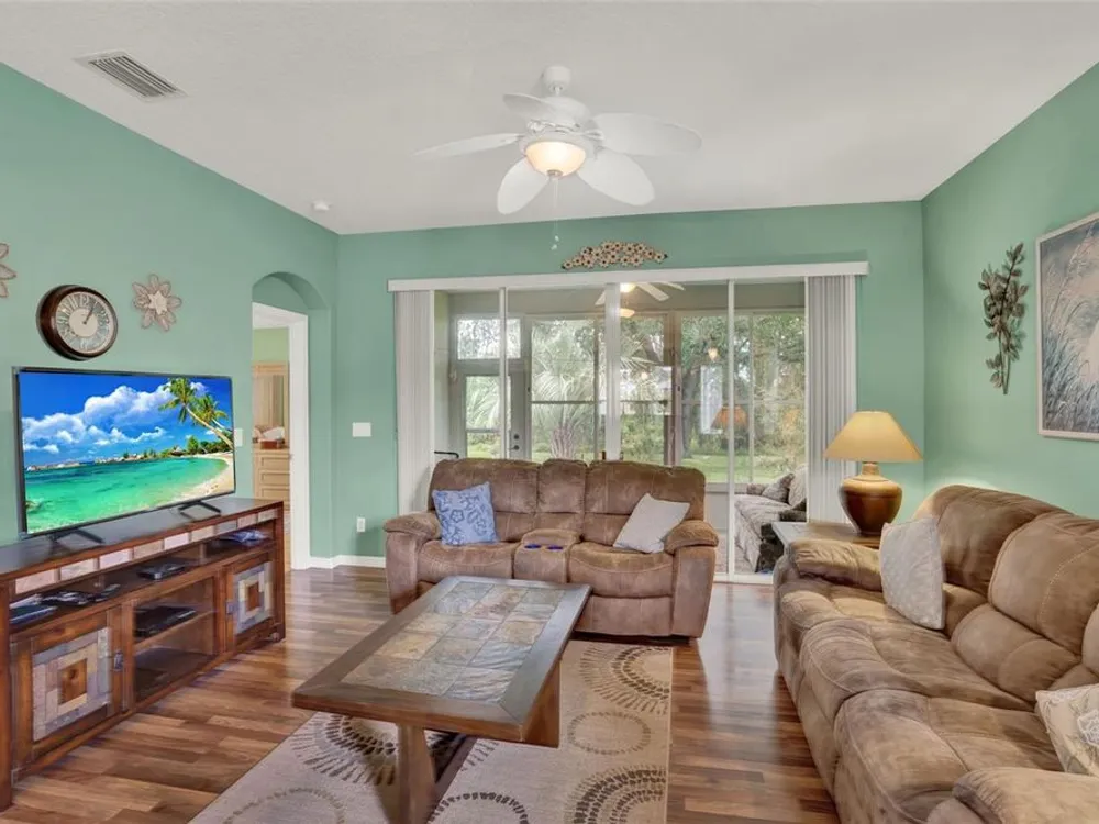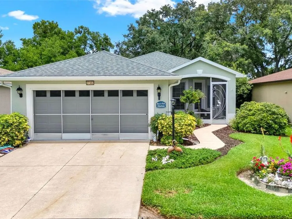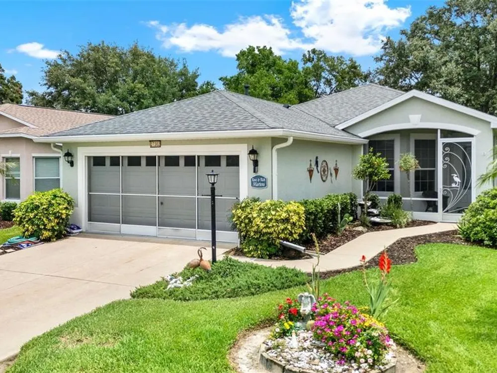 Welcome to this meticulously maintained Balmoral model home in the highly sought-after 55+ community of Legacy of Leesburg. This charming 3 bedroom and 2 bathroom residence offers a spacious open-concept layout with well-appointed living spaces and abundant natural light Roof and AC New 2019. Enjoy your morning coffee on the enclosed lanai, offering a peaceful wooded view with no rear neighbors and your private retreat to start the day. This thoughtfully designed home features a seamless combination living and dining room that opens directly to a fully enclosed lanai which is perfect for relaxing or entertaining. The adjacent eat-in kitchen is both stylish and functional, showcasing granite countertops, a spacious closet pantry, and easy access to the laundry room and garage. The spacious master suite offers a peaceful retreat with a large walk-in closet and private sliding glass doors leading to the lanai. The master bathroom includes a dual-sink vanity with a dedicated make-up counter, a walk-in shower, and a linen closet for added storage. One of the guest bedrooms is equipped with a convenient Murphy bed, allowing the space to easily transform into a home office or multipurpose room. The Legacy of Leesburg community is known for its resort-style amenities, including a heated pool, clubhouse, fitness center, tennis courts, pickleball courts, billiards room, groomed walking trails, and softball field. Whether you want to relax or stay active, this vibrant community offers a perfect blend of leisure and recreation. This exceptional home presents the ideal opportunity for a carefree, active lifestyle in one of Leesburg's most desirable neighborhoods. The HOA fee includes Cable, internet, grass cutting, and use or storage area for RVs & Boats. Don't miss your chance to make it yours!