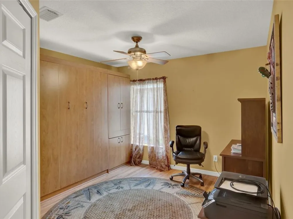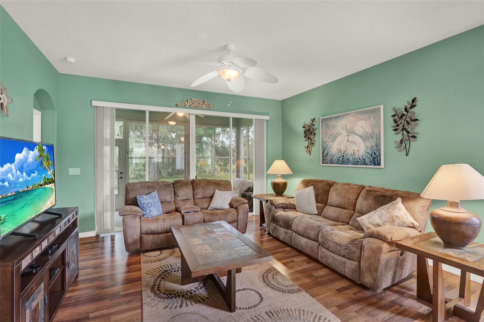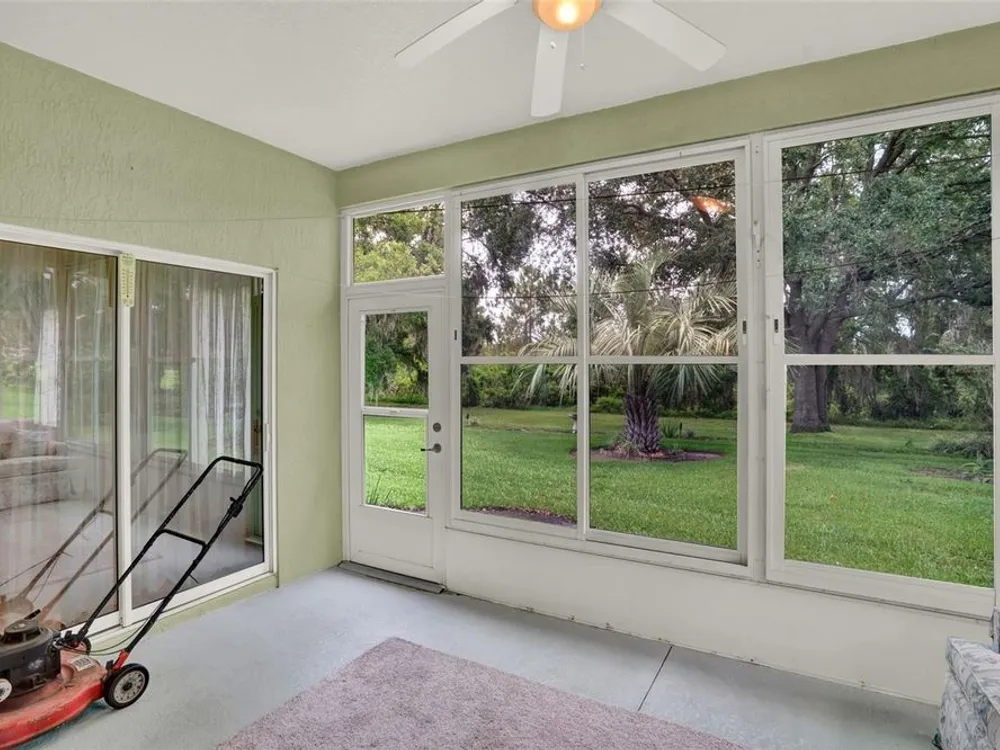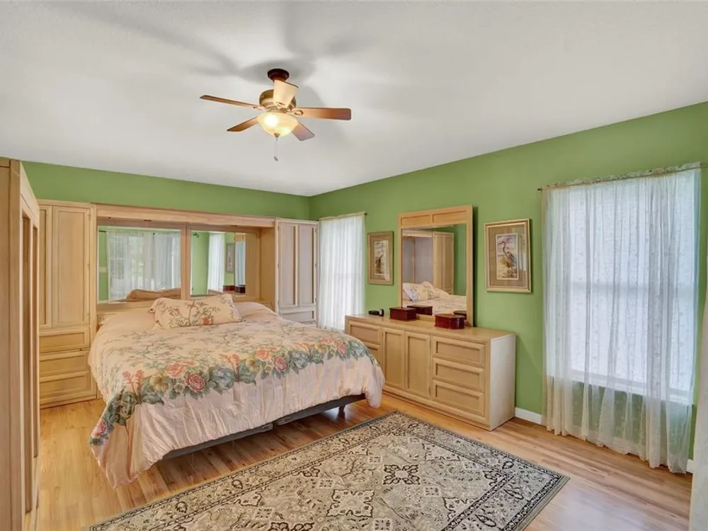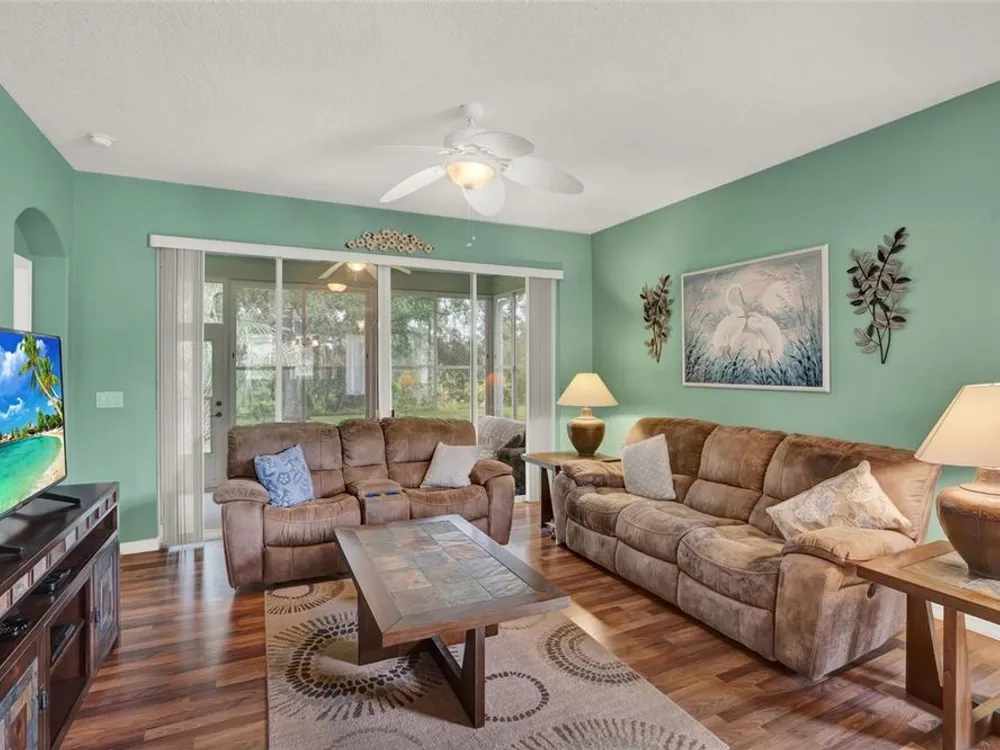 Welcome to this meticulously maintained Balmoral model home in the highly sought-after 55+ community of Legacy of Leesburg. This charming 3 bedroom and 2 bathroom residence offers a spacious open-concept layout with well-appointed living spaces and abundant natural light Roof and AC New 2019. Enjoy your morning coffee on the enclosed lanai, offering a peaceful wooded view with no rear neighbors and your private retreat to start the day. This thoughtfully designed home features a seamless combination living and dining room that opens directly to a fully enclosed lanai which is perfect for relaxing or entertaining. The adjacent eat-in kitchen is both stylish and functional, showcasing granite countertops, a spacious closet pantry, and easy access to the laundry room and garage. The spacious master suite offers a peaceful retreat with a large walk-in closet and private sliding glass doors leading to the lanai. The master bathroom includes a dual-sink vanity with a dedicated make-up counter, a walk-in shower, and a linen closet for added storage. One of the guest bedrooms is equipped with a convenient Murphy bed, allowing the space to easily transform into a home office or multipurpose room. The Legacy of Leesburg community is known for its resort-style amenities, including a heated pool, clubhouse, fitness center, tennis courts, pickleball courts, billiards room, groomed walking trails, and softball field. Whether you want to relax or stay active, this vibrant community offers a perfect blend of leisure and recreation. This exceptional home presents the ideal opportunity for a carefree, active lifestyle in one of Leesburg's most desirable neighborhoods. The HOA fee includes Cable, internet, grass cutting, and use or storage area for RVs & Boats. Don't miss your chance to make it yours!