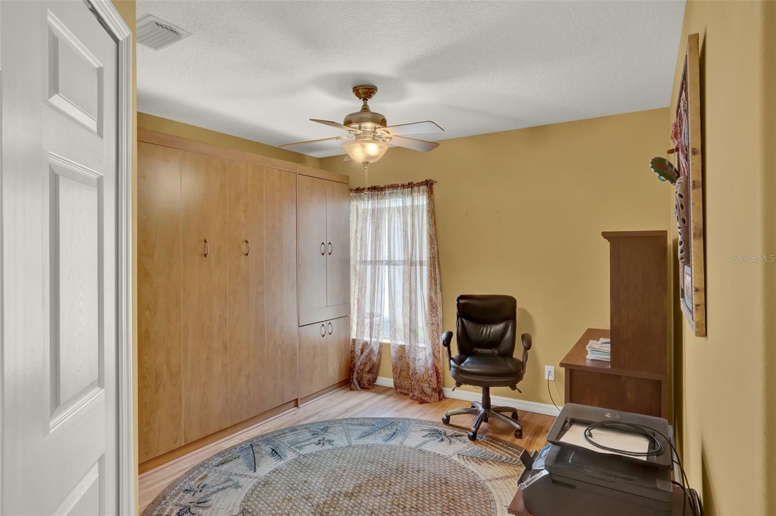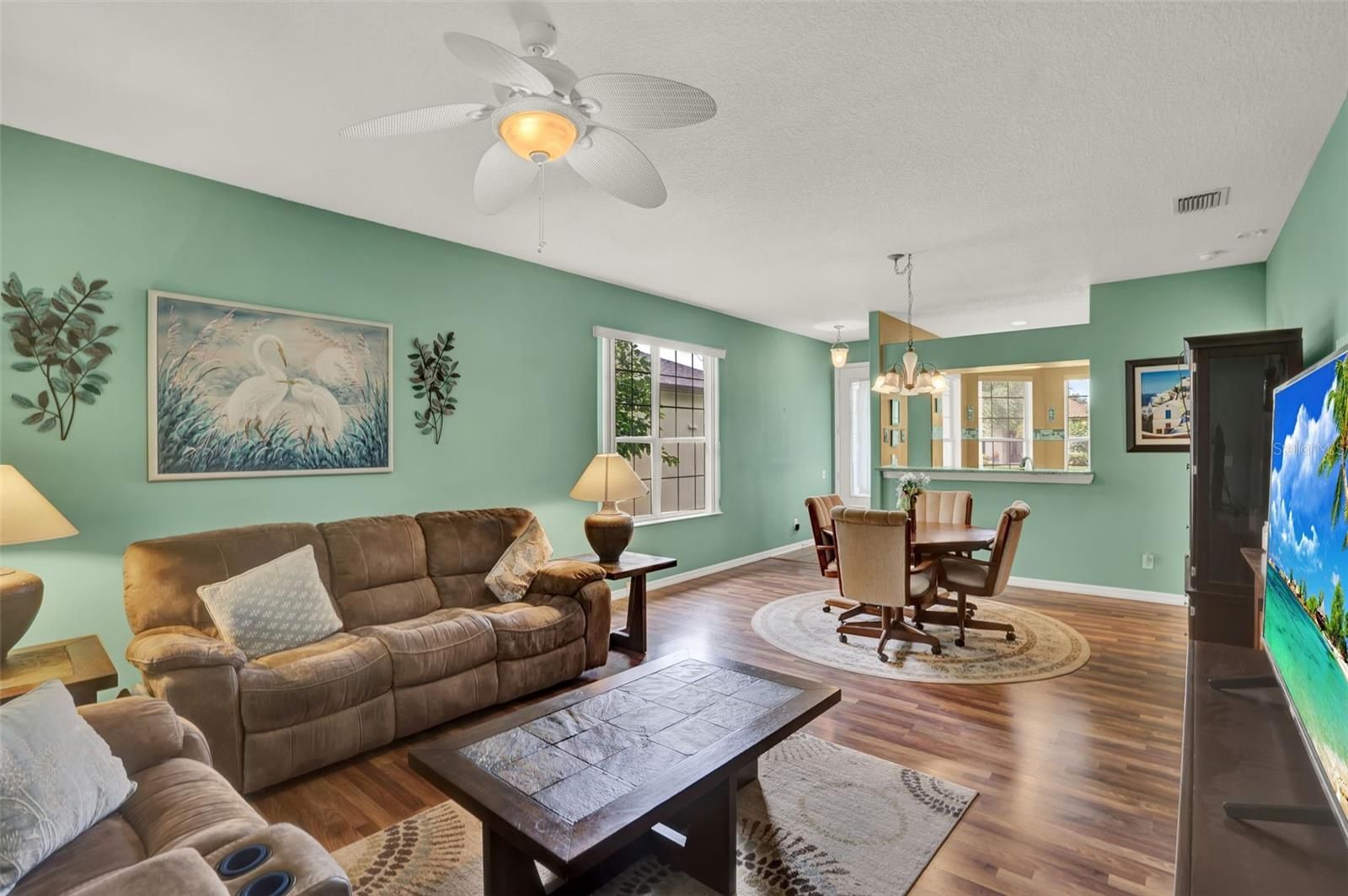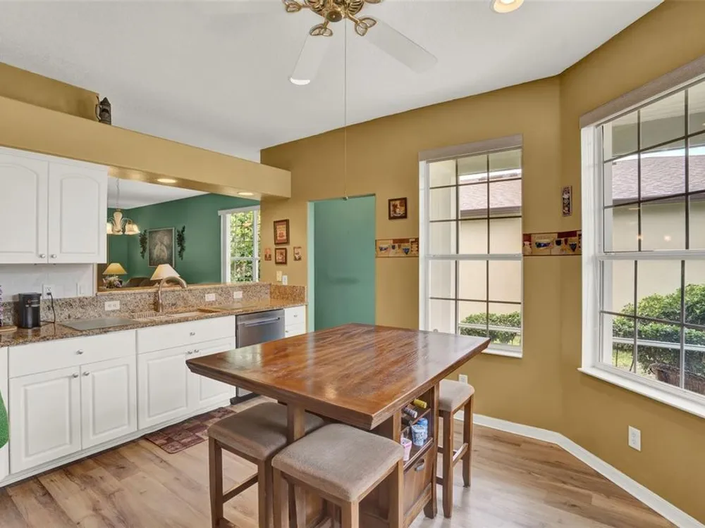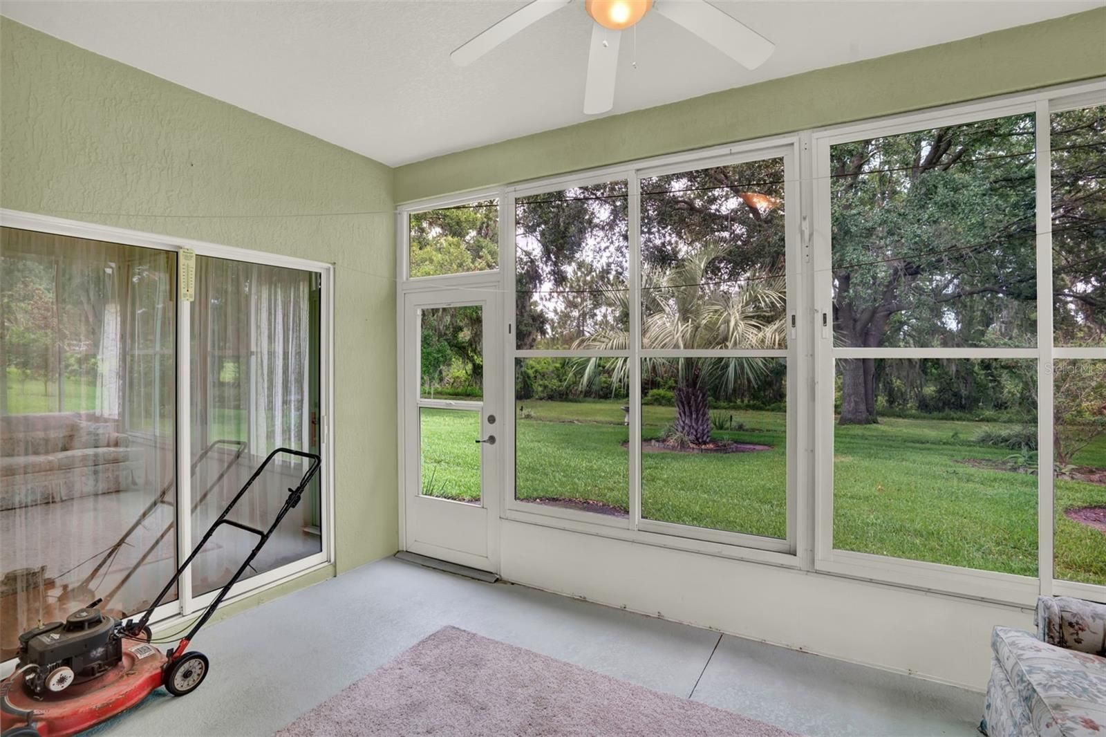 Welcome to this meticulously maintained Balmoral model home in the highly sought-after 55+ community of Legacy of Leesburg. This charming 3 bedroom and 2 bathroom residence offers a spacious open-concept layout with well-appointed living spaces and abundant natural light Roof and AC New 2019. Enjoy your morning coffee on the enclosed lanai, offering a peaceful wooded view with no rear neighbors and your private retreat to start the day. This thoughtfully designed home features a seamless combination living and dining room that opens directly to a fully enclosed lanai which is perfect for relaxing or entertaining. The adjacent eat-in kitchen is both stylish and functional, showcasing granite countertops, a spacious closet pantry, and easy access to the laundry room and garage. The spacious master suite offers a peaceful retreat with a large walk-in closet and private sliding glass doors leading to the lanai. The master bathroom includes a dual-sink vanity with a dedicated make-up counter, a walk-in shower, and a linen closet for added storage. One of the guest bedrooms is equipped with a convenient Murphy bed, allowing the space to easily transform into a home office or multipurpose room. The Legacy of Leesburg community is known for its resort-style amenities, including a heated pool, clubhouse, fitness center, tennis courts, pickleball courts, billiards room, groomed walking trails, and softball field. Whether you want to relax or stay active, this vibrant community offers a perfect blend of leisure and recreation. This exceptional home presents the ideal opportunity for a carefree, active lifestyle in one of Leesburg's most desirable neighborhoods. The HOA fee includes Cable, internet, grass cutting, and use or storage area for RVs & Boats. Don't miss your chance to make it yours!
