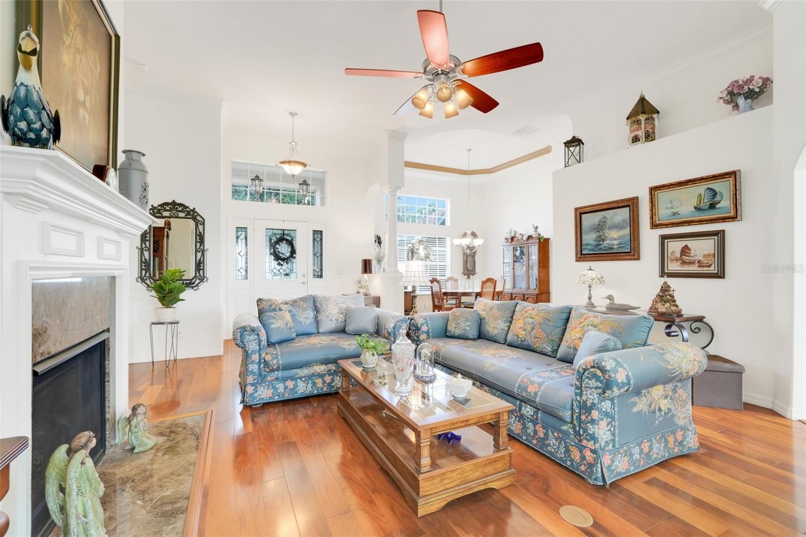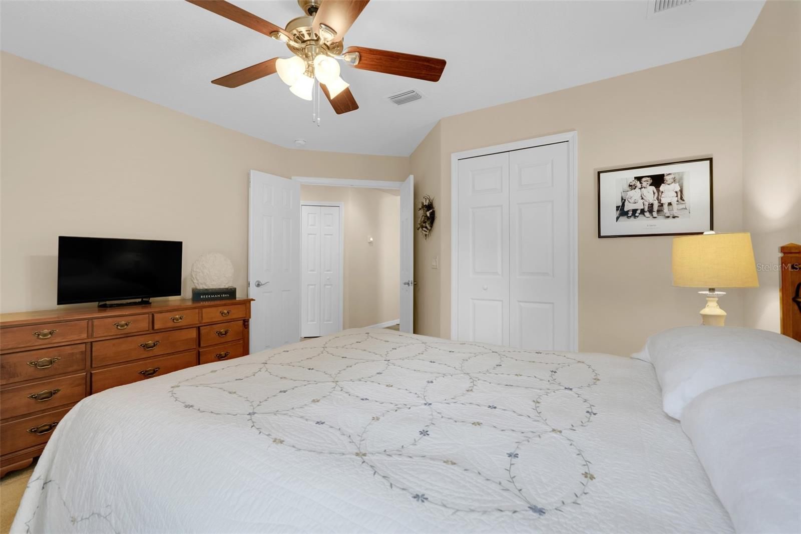 - Ceiling Fan(s), High Ceilings, Kitchen/Family Room Combo, Open Floorplan, Main Level Primary, Split Bedrooms, Stone Counters, Thermostat, Tray Ceiling(s), Walk-In Closet(s)
